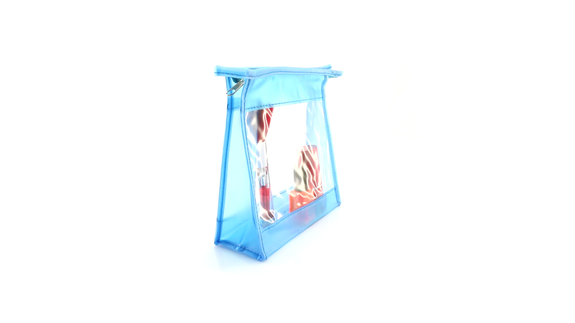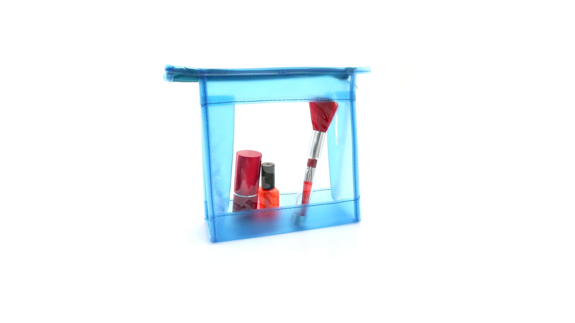 Vielseitig verwendbarer Kulturbeutel aus robustem, halbtransparentem PVC in lebendigen Farben. Mit transparentem Fenster und farblich passendem Reissverschluss.