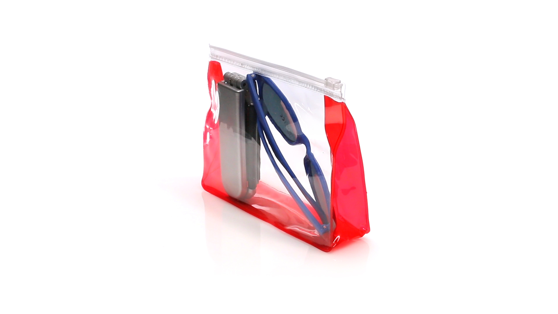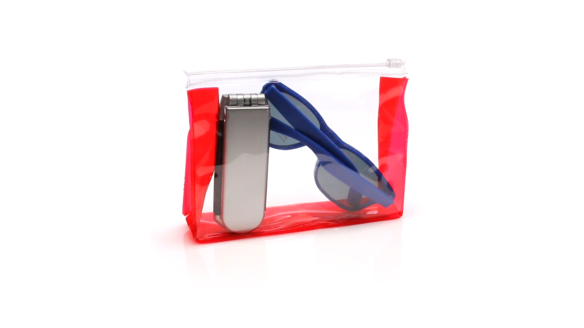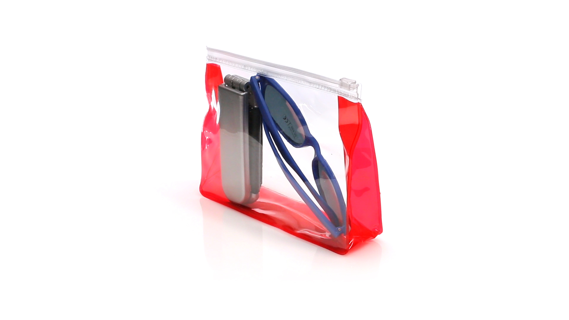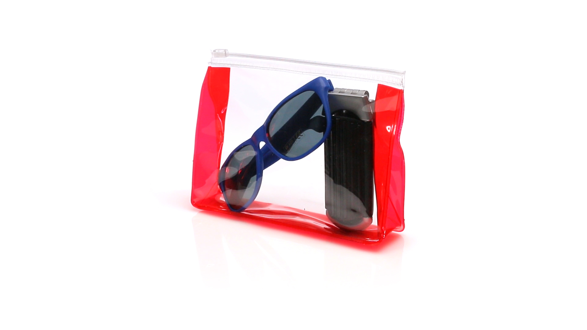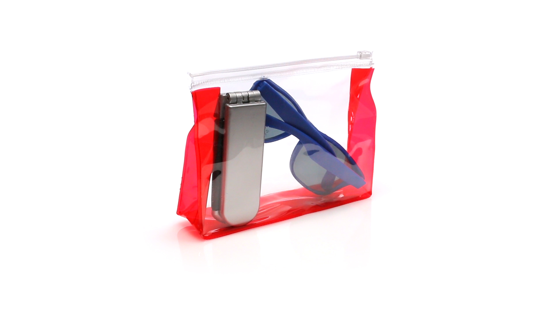 Dieser vielseitig verwendbare Kulturbeutel aus robustem transparentem PVC ist in verschiedenen Farben erhältlich und verfügt über einen farblich passenden Ziplock-Verschluss.