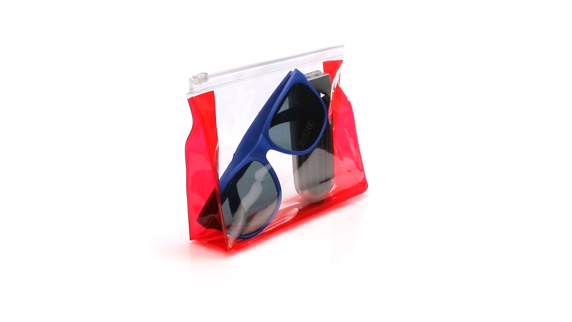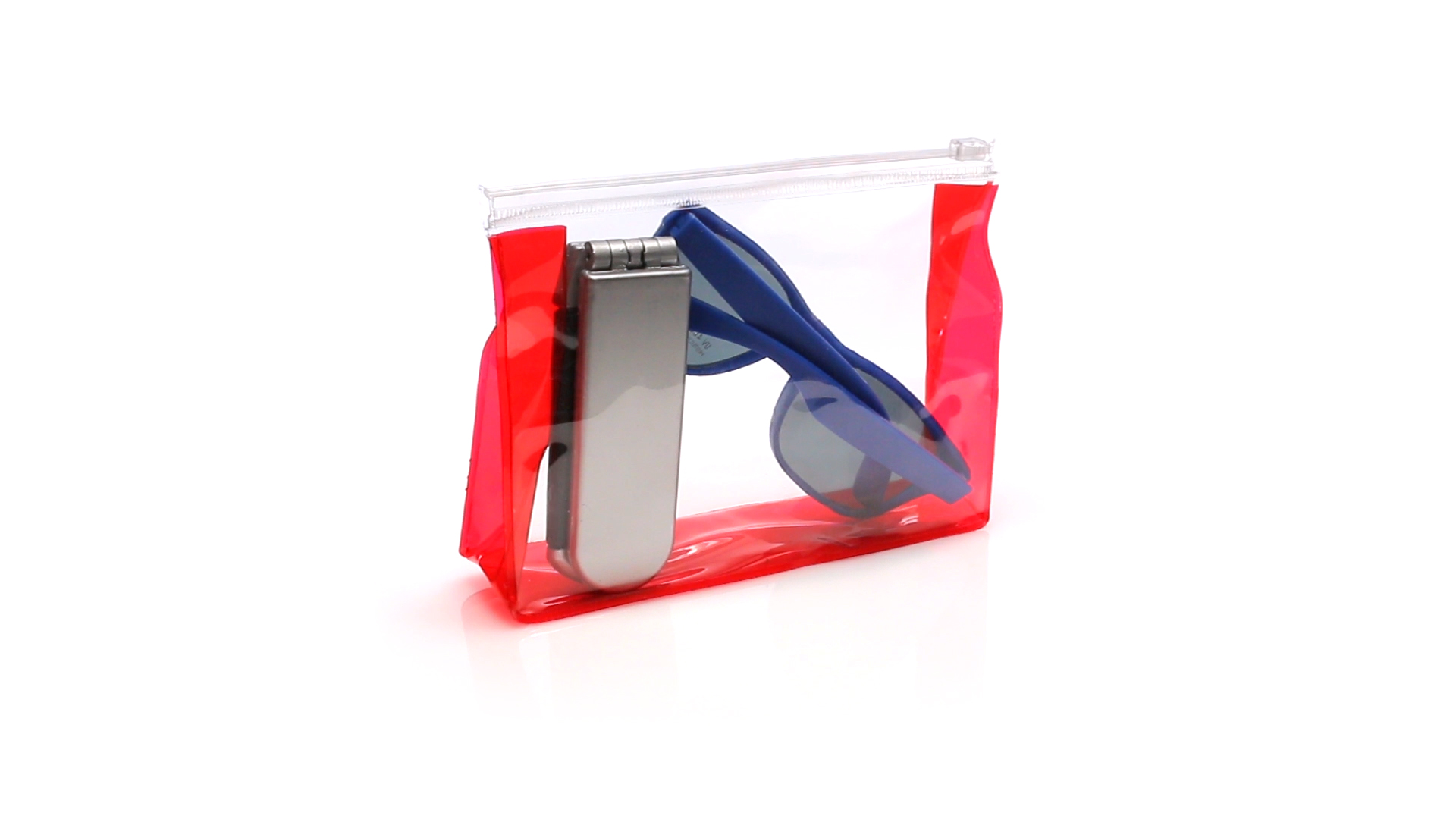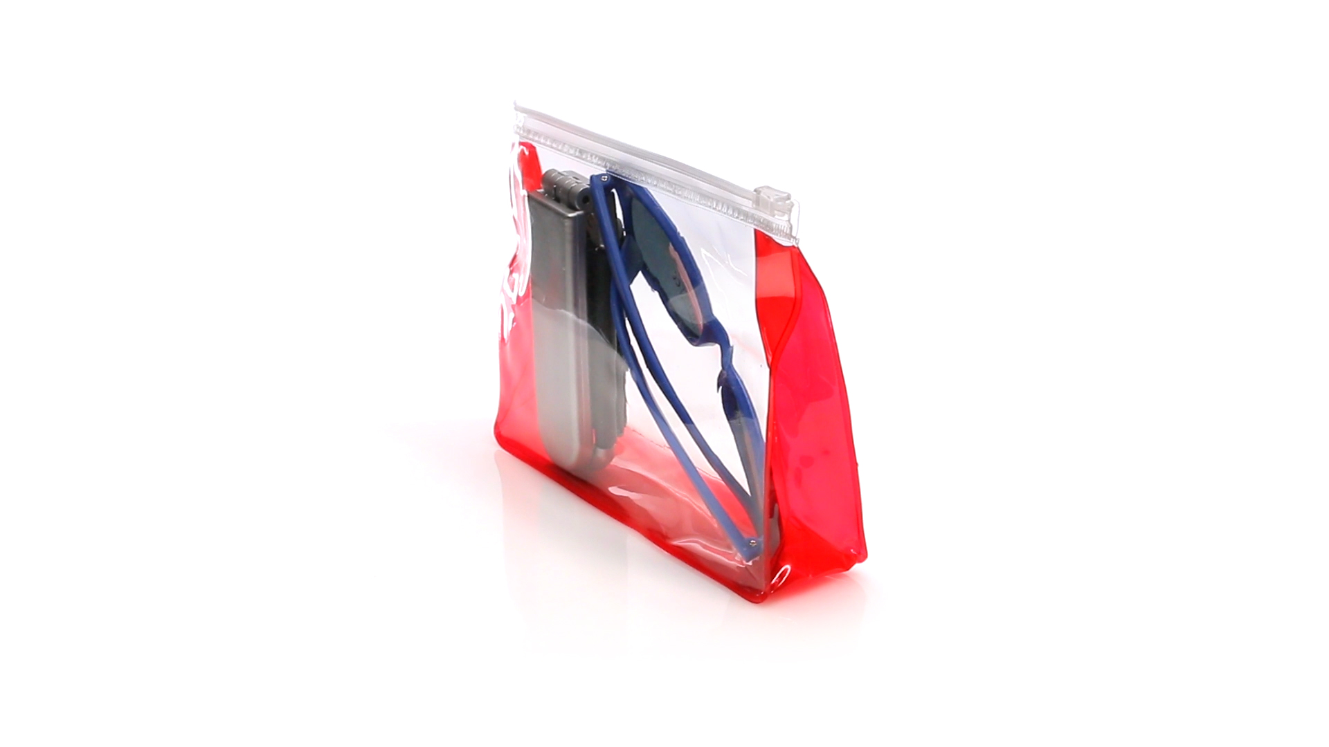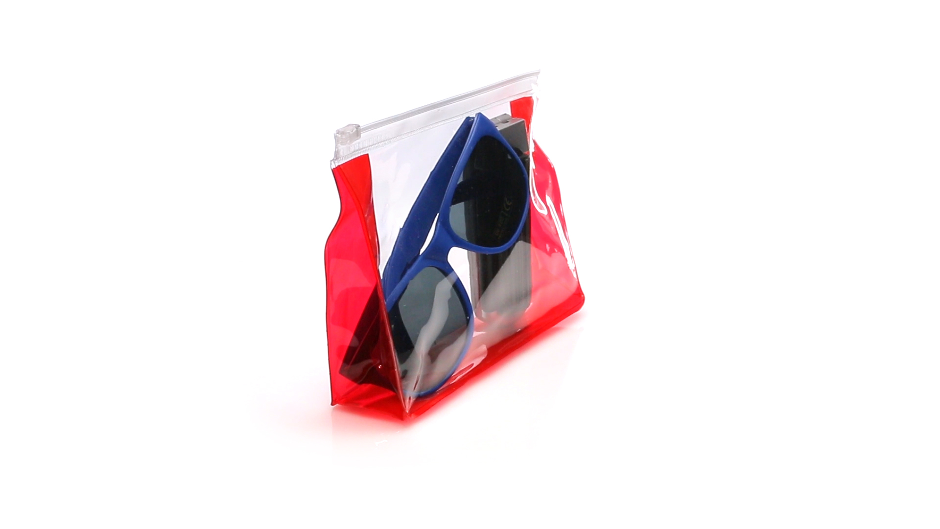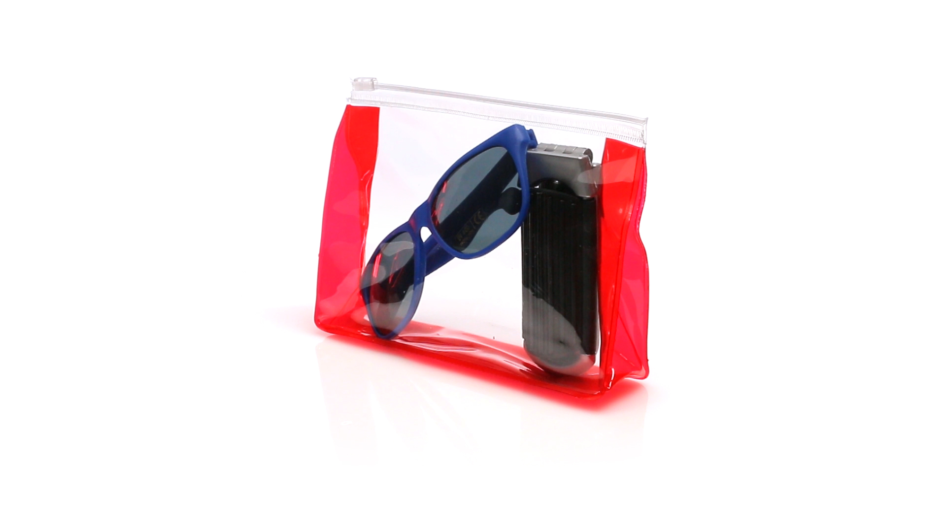 Dieser vielseitig verwendbare Kulturbeutel aus robustem transparentem PVC ist in verschiedenen Farben erhältlich und verfügt über einen farblich passenden Ziplock-Verschluss.