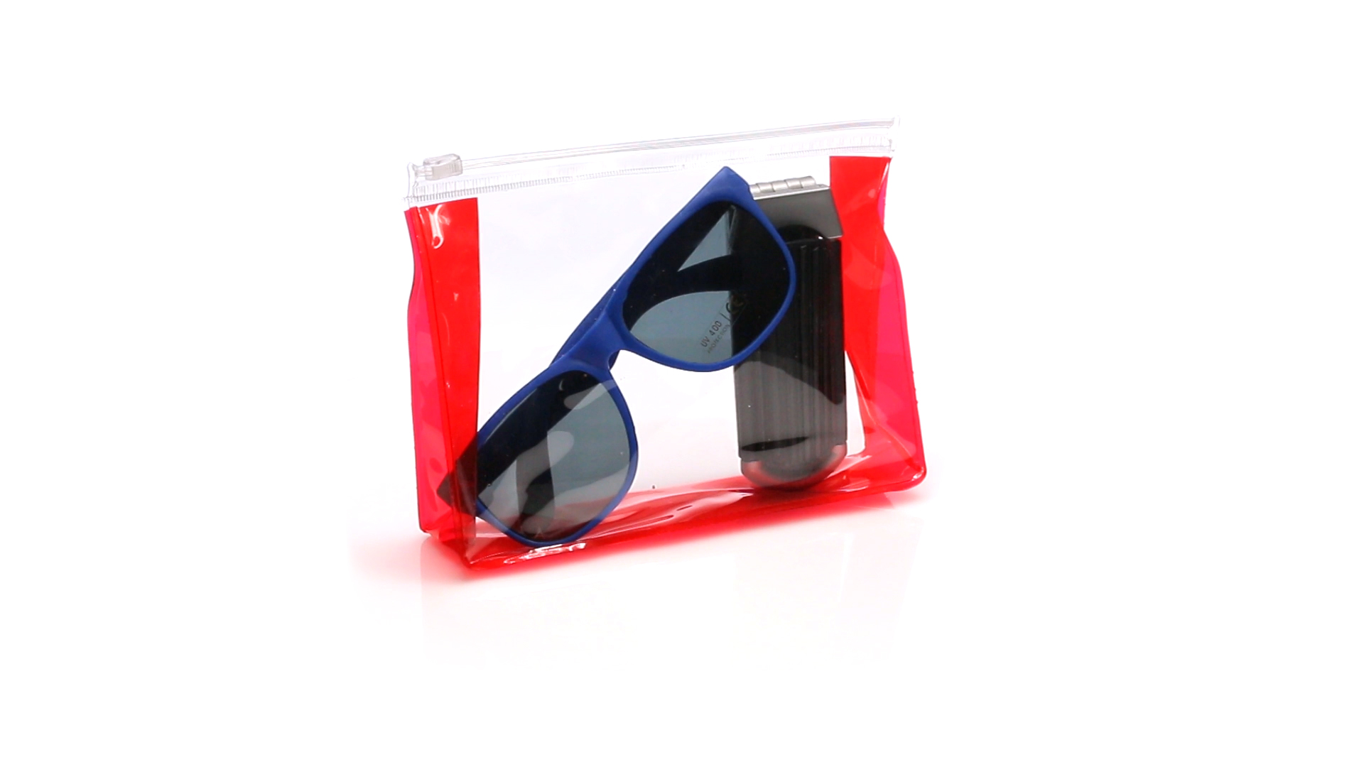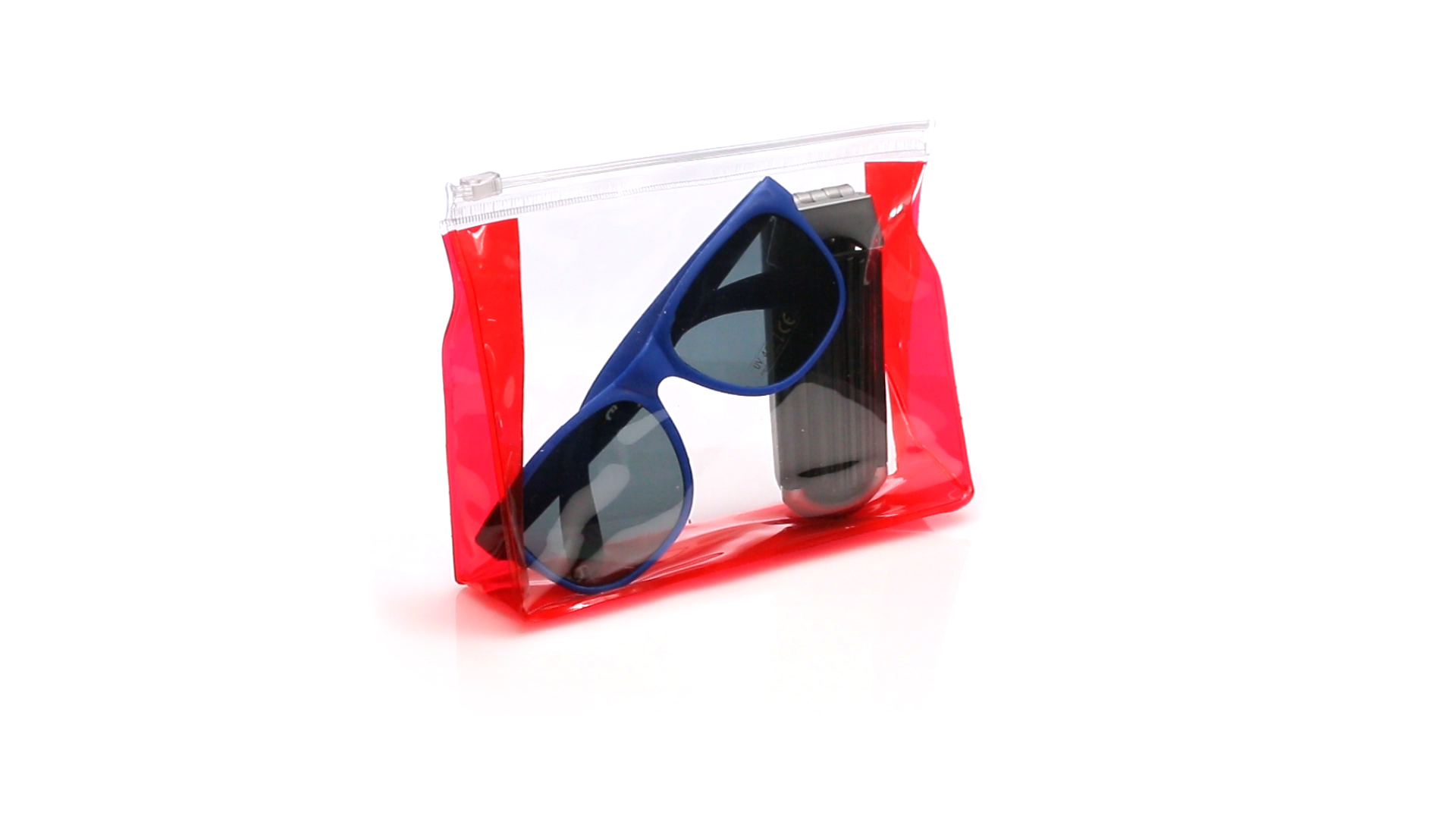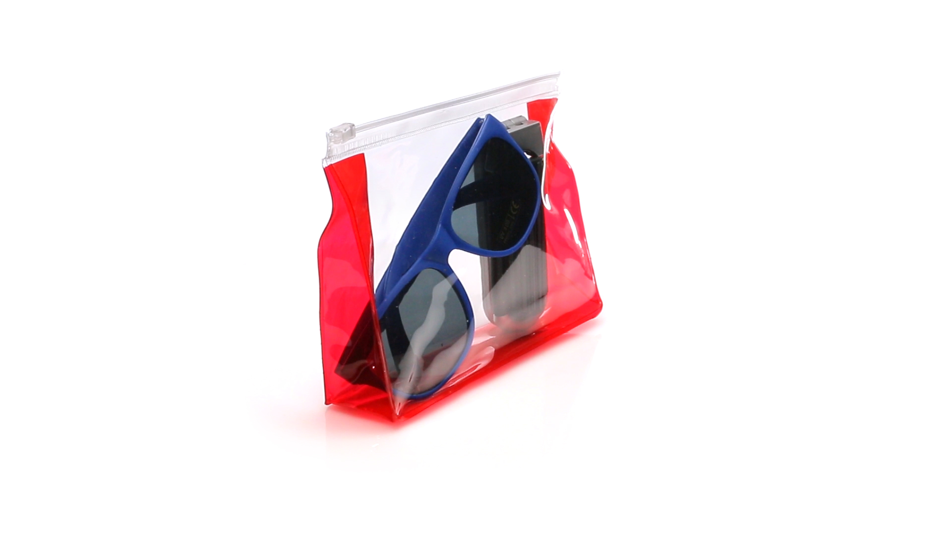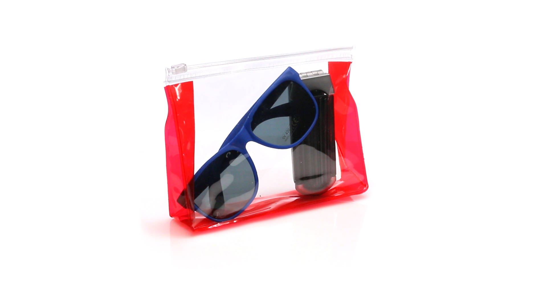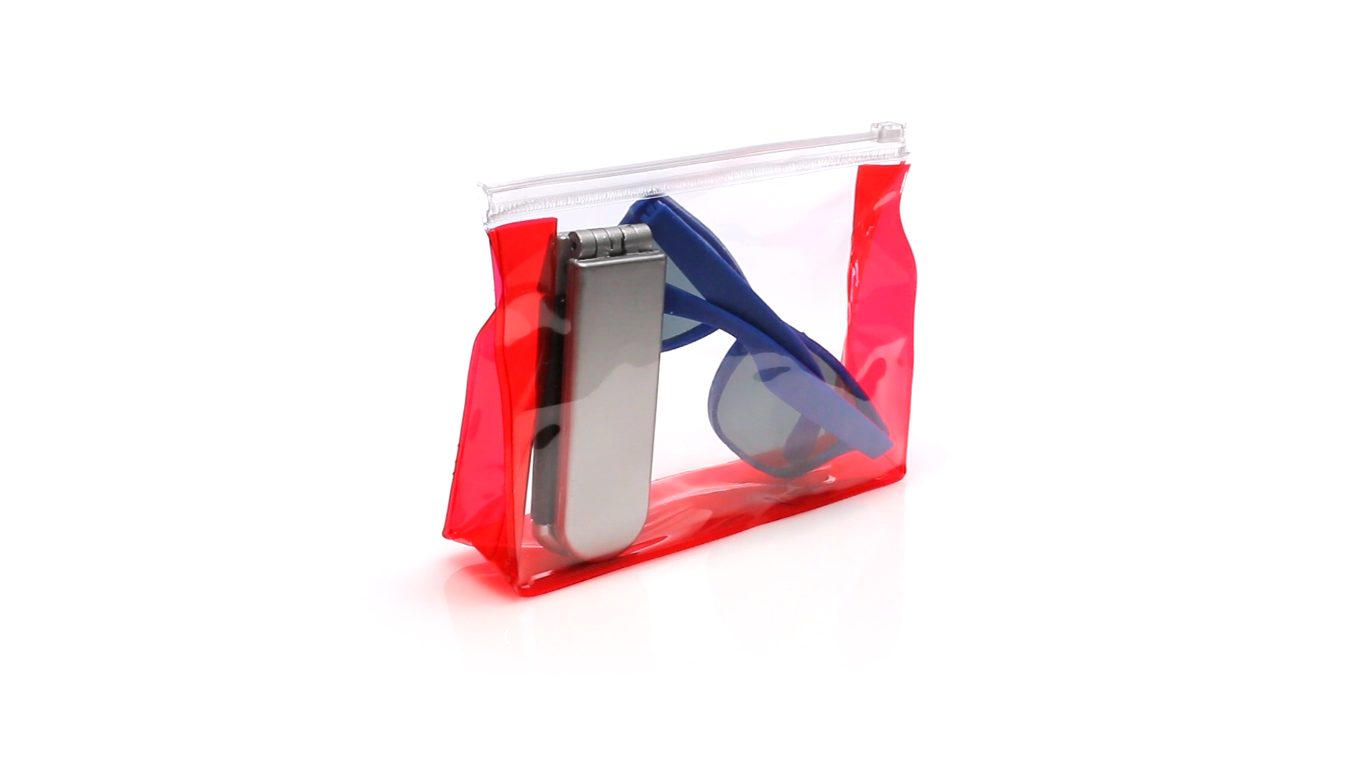 Dieser vielseitig verwendbare Kulturbeutel aus robustem transparentem PVC ist in verschiedenen Farben erhältlich und verfügt über einen farblich passenden Ziplock-Verschluss.