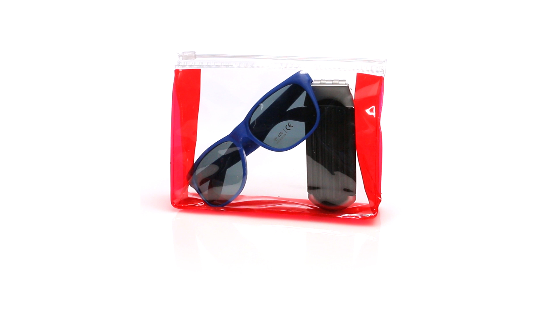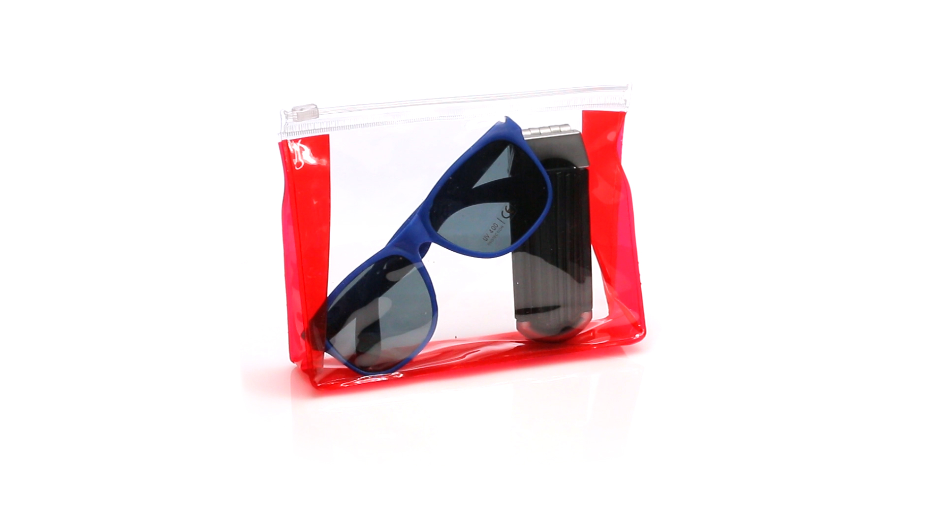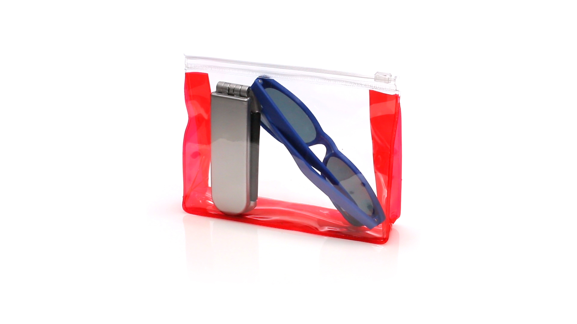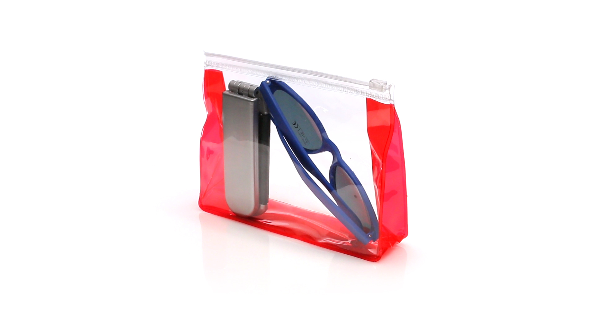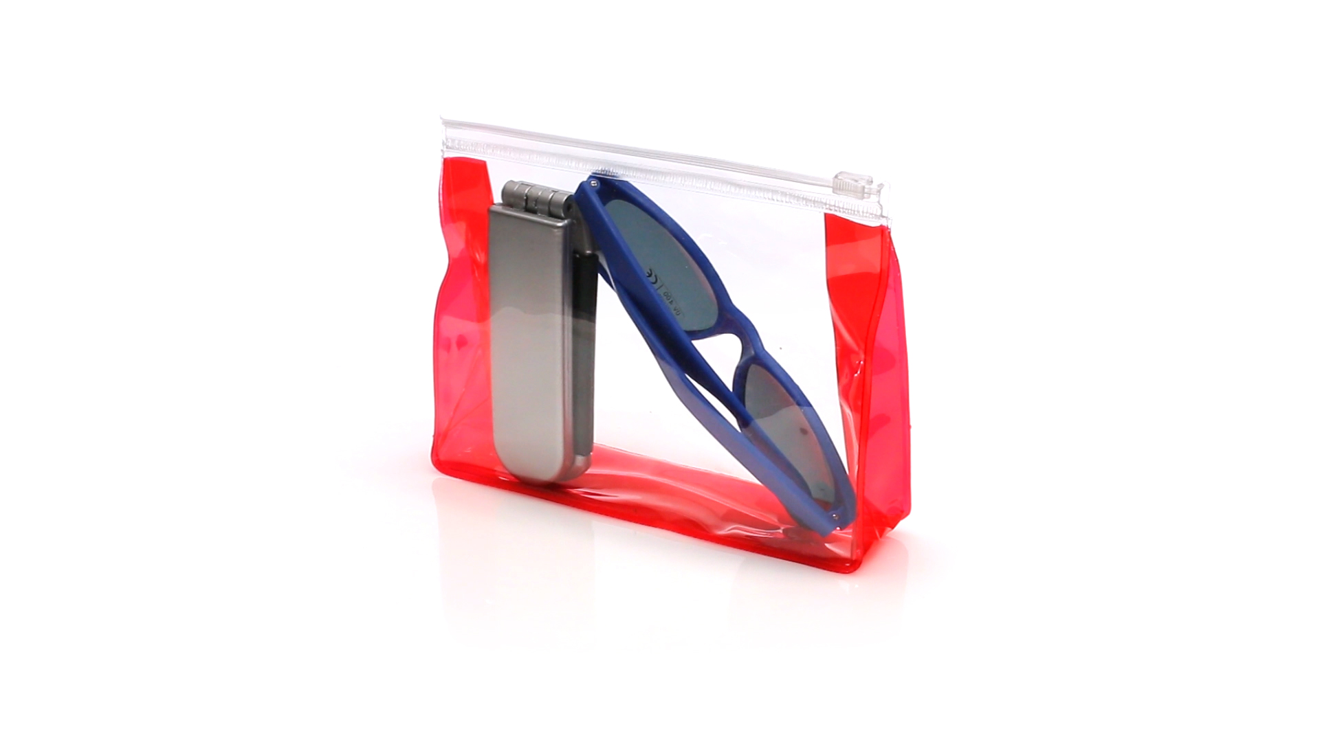 Dieser vielseitig verwendbare Kulturbeutel aus robustem transparentem PVC ist in verschiedenen Farben erhältlich und verfügt über einen farblich passenden Ziplock-Verschluss.