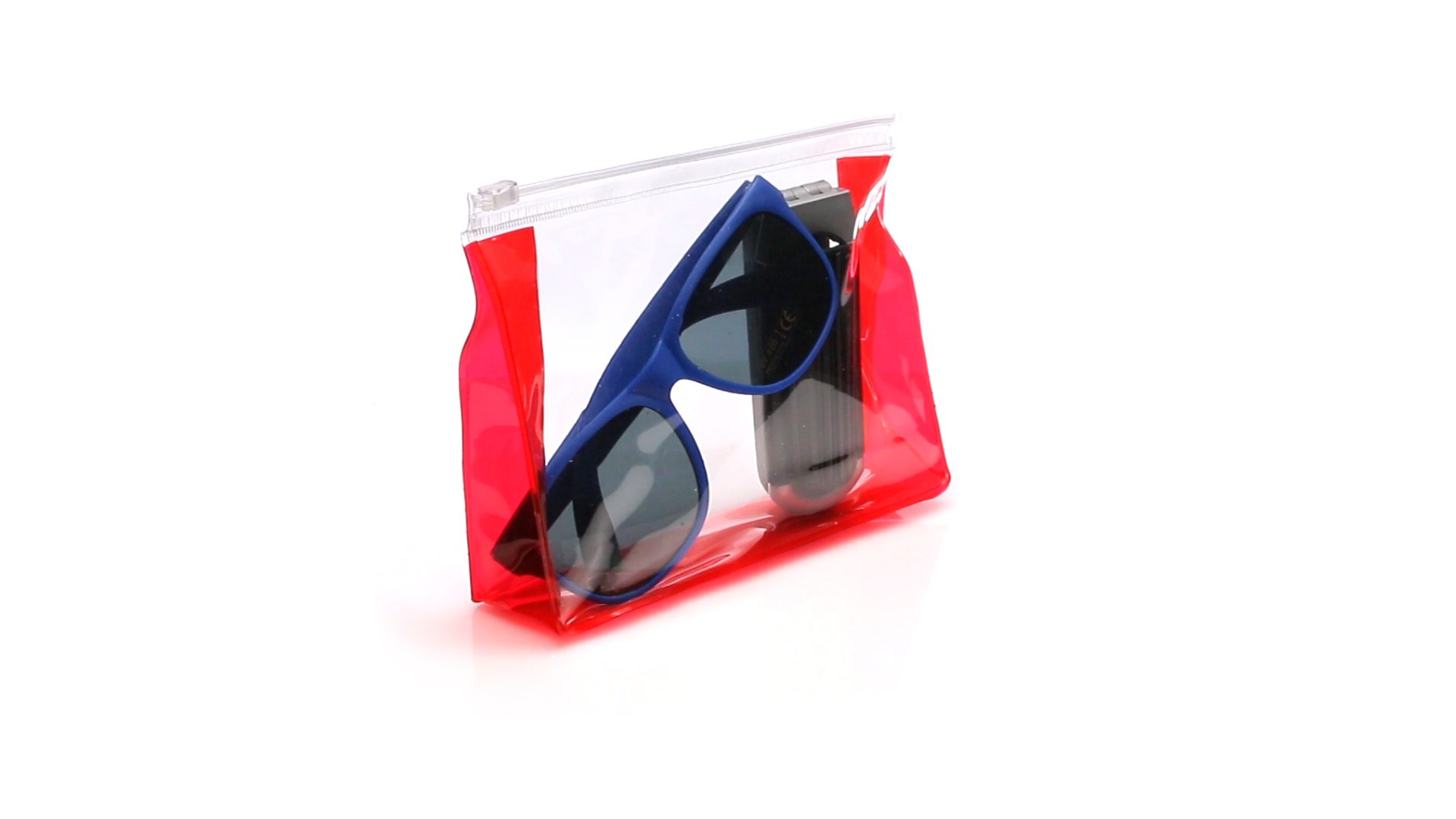 Vielseitig verwendbarer Kulturbeutel aus robustem, transparentem PVC in verschiedenen Farben. Mit farbigen Seitenteilen und luftdichtem Verschluss.
