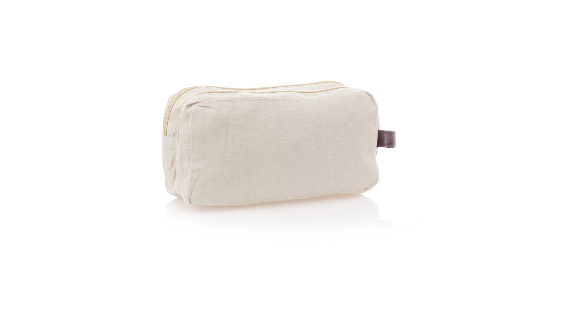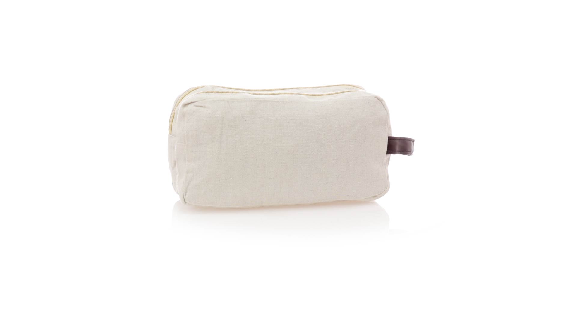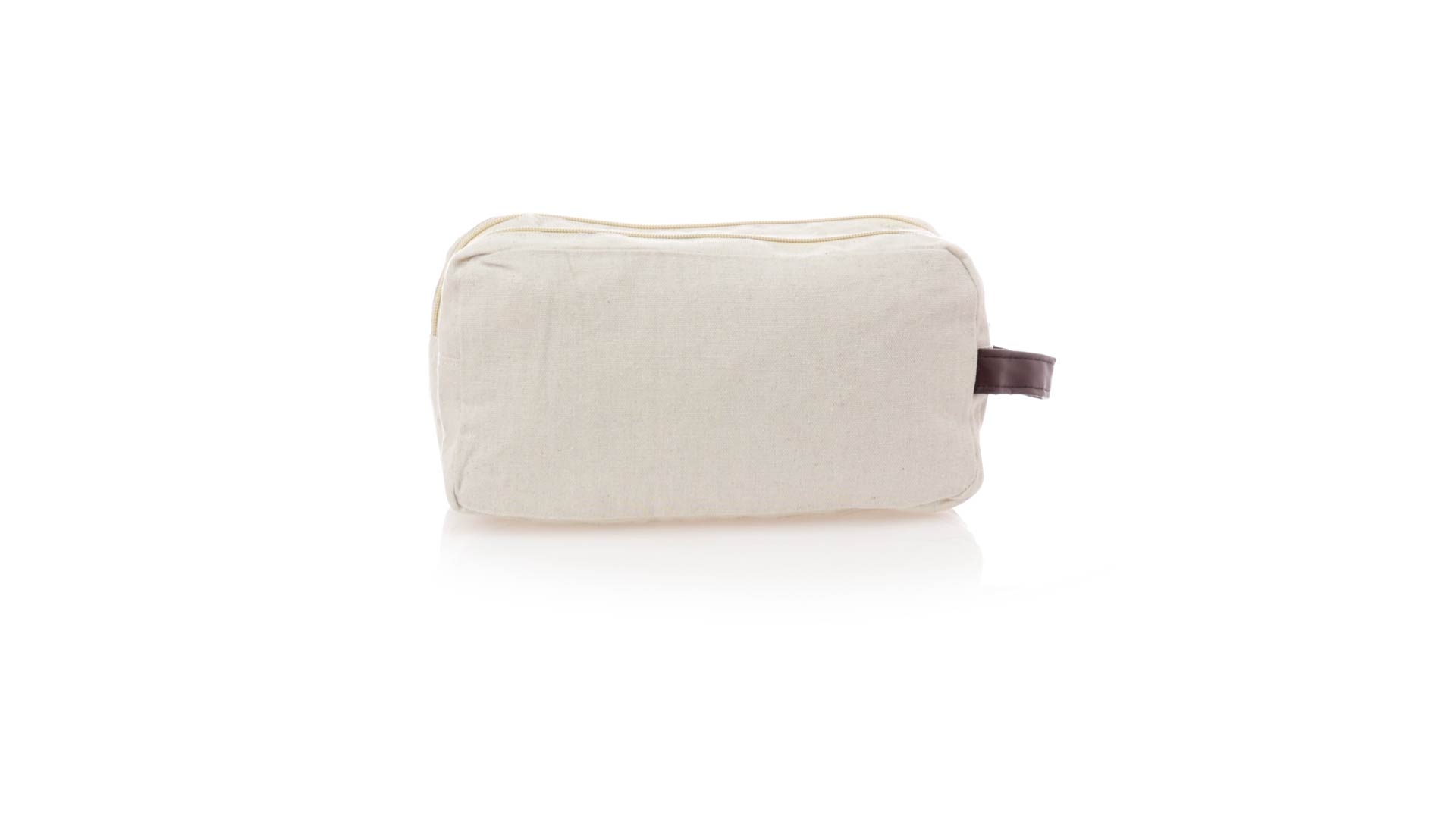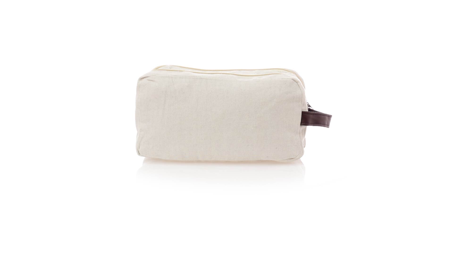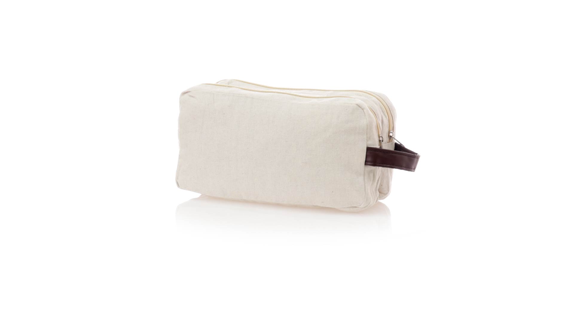 Kosmetiktasche mit zwei Fächern aus widerstandsfähigem Canvas. Mit Reissverschluss, Griffen und Zugvorrichtung aus braunem PU-Leder. Erhältlich in modischen Farben.