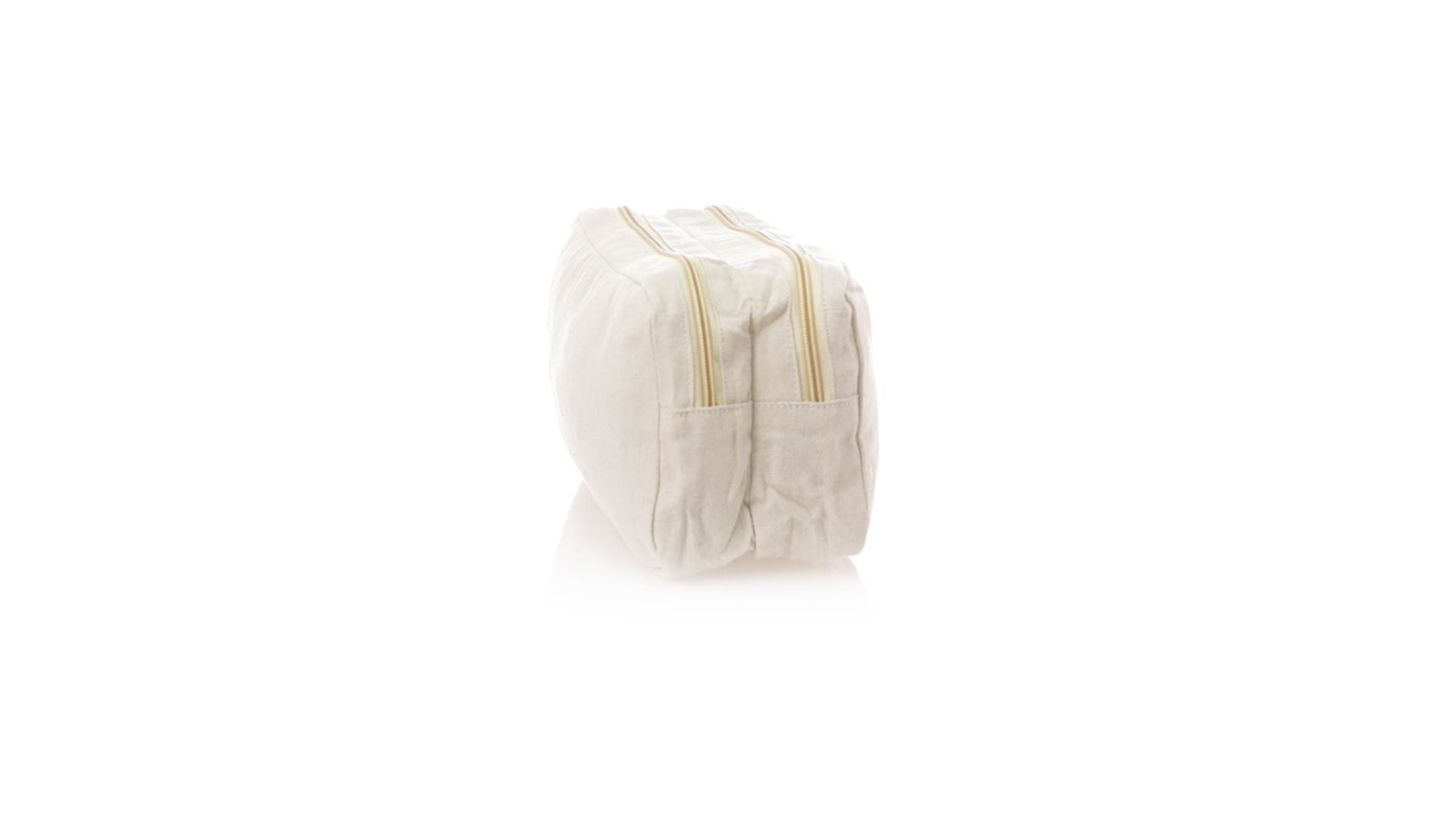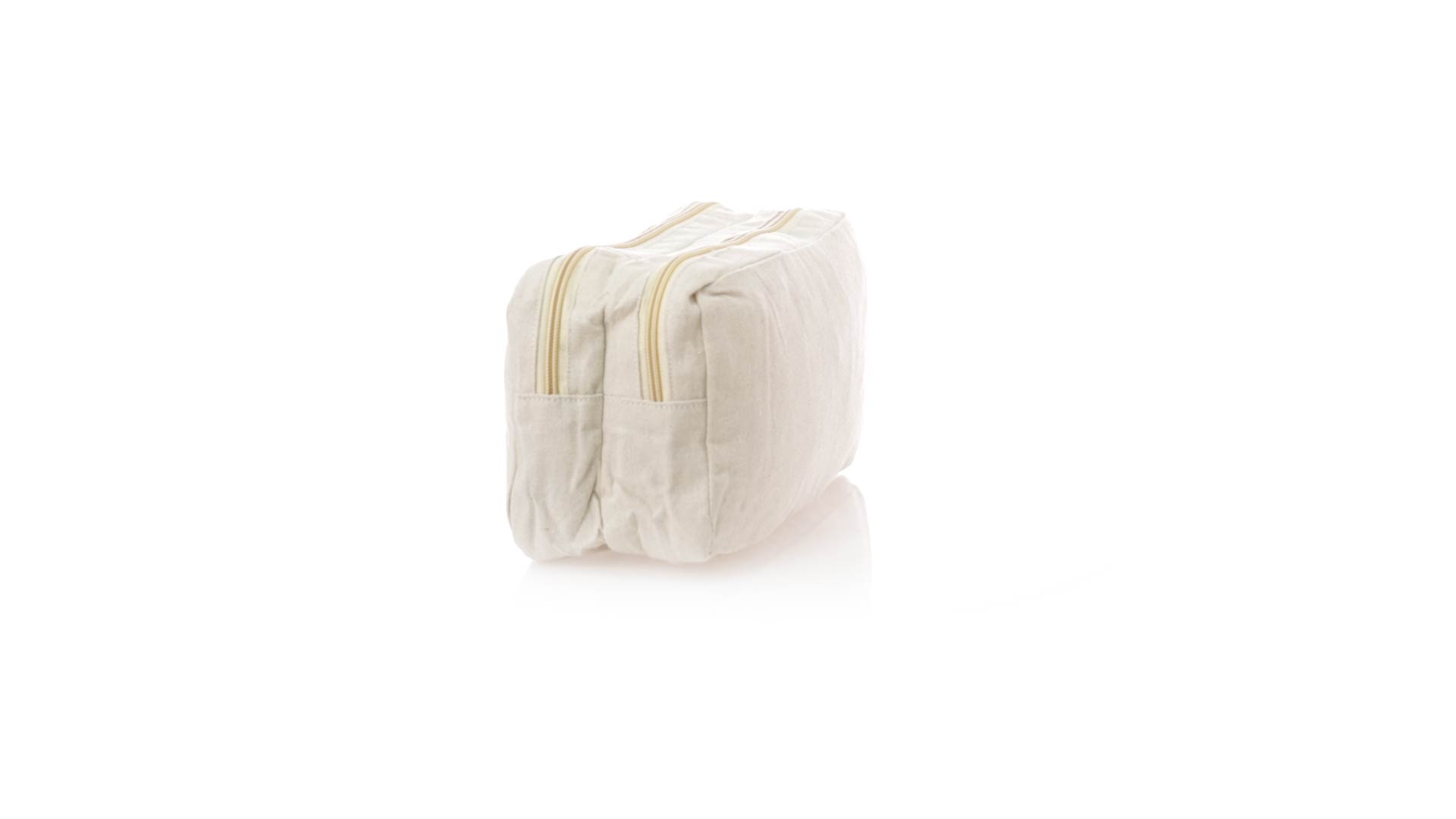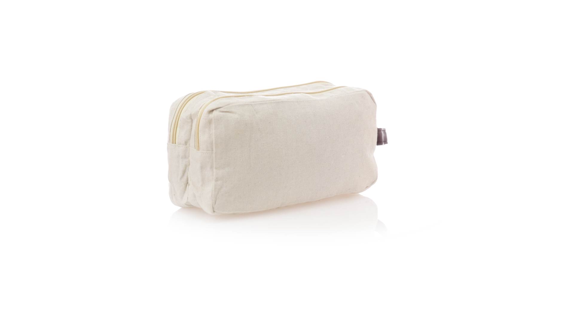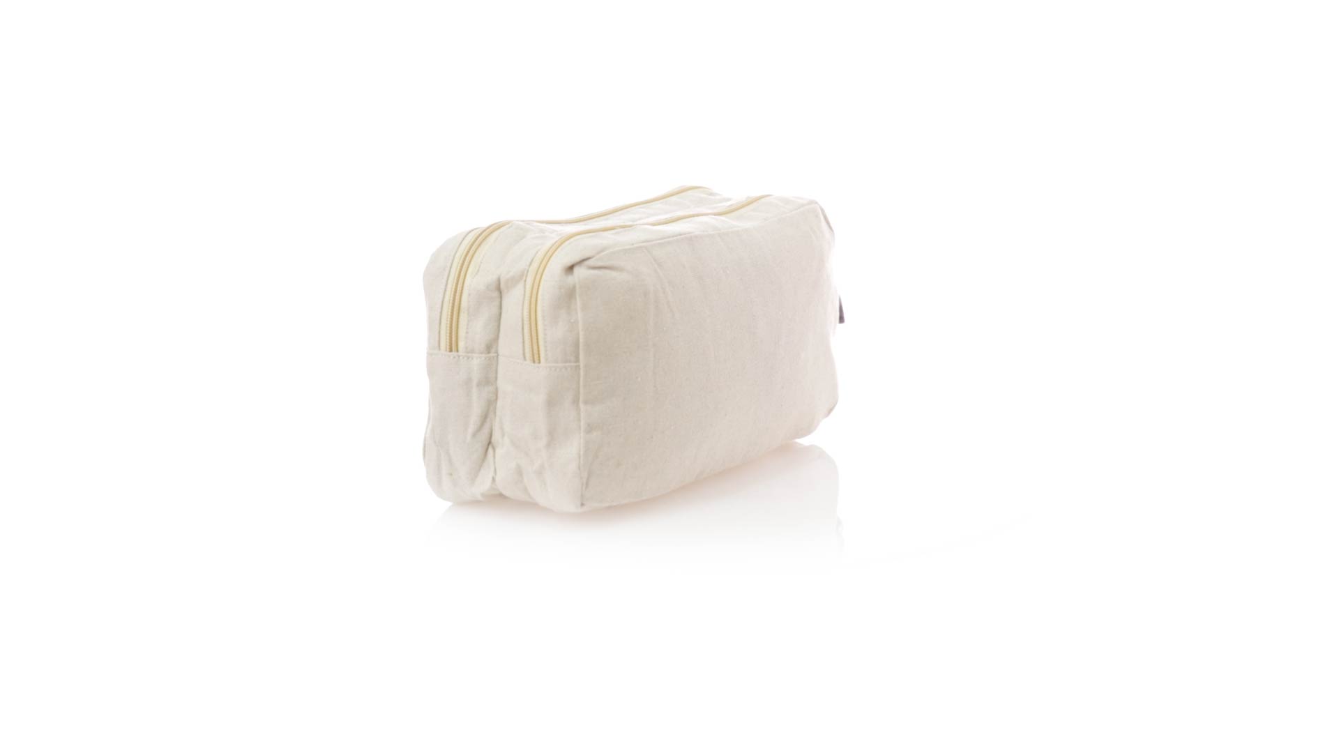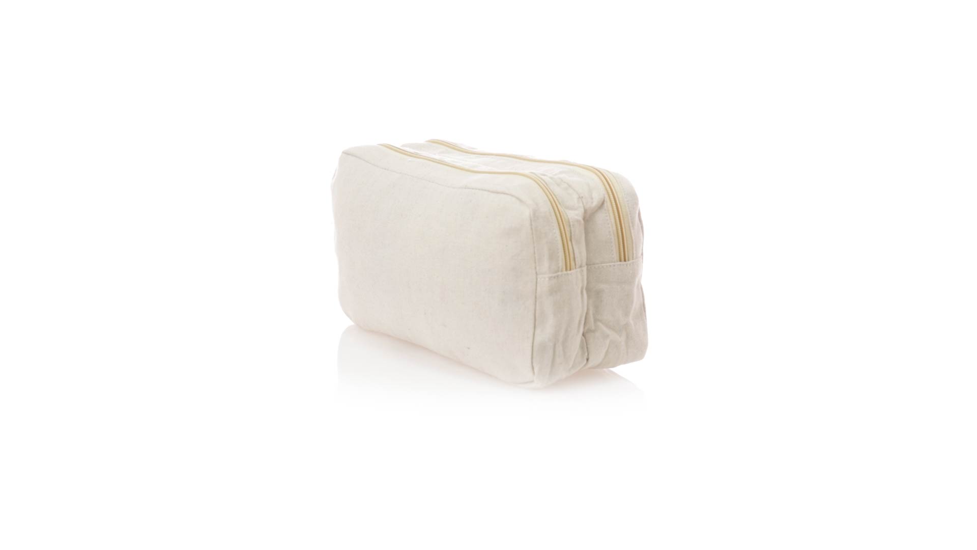 Kosmetiktasche mit zwei Fächern aus widerstandsfähigem Canvas. Mit Reissverschluss, Griffen und Zugvorrichtung aus braunem PU-Leder. Erhältlich in modischen Farben.