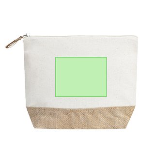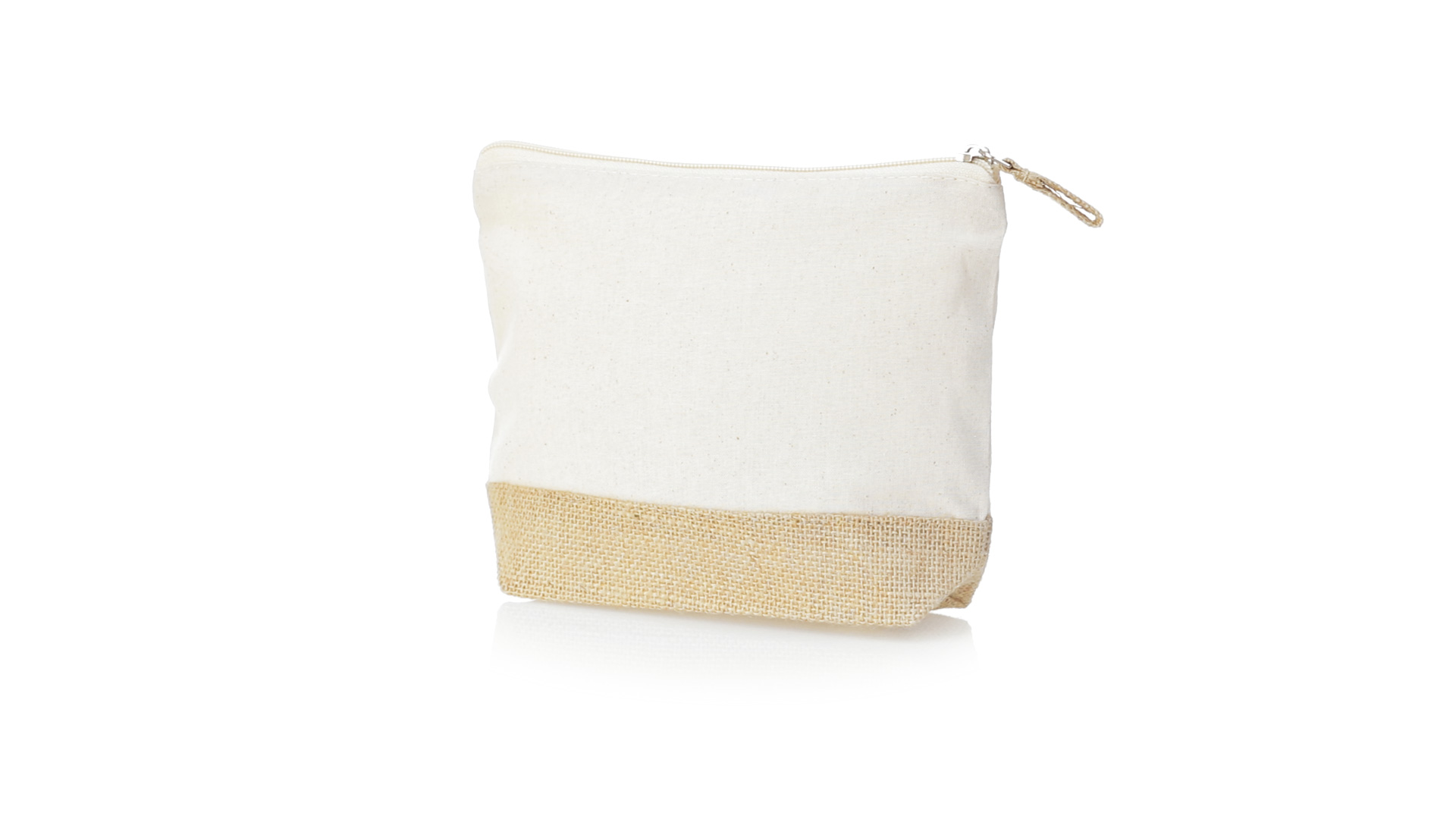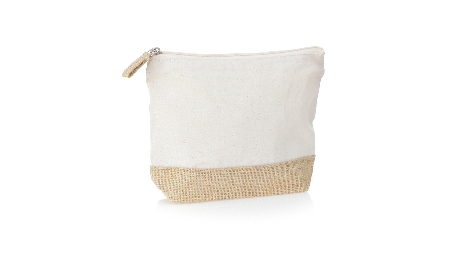 Natur Line Kosmetiktasche aus einer Kombination von laminierter Jute und natürlicher Baumwolle. Mit Reissverschluss und passendem Jutegriff.