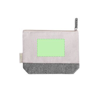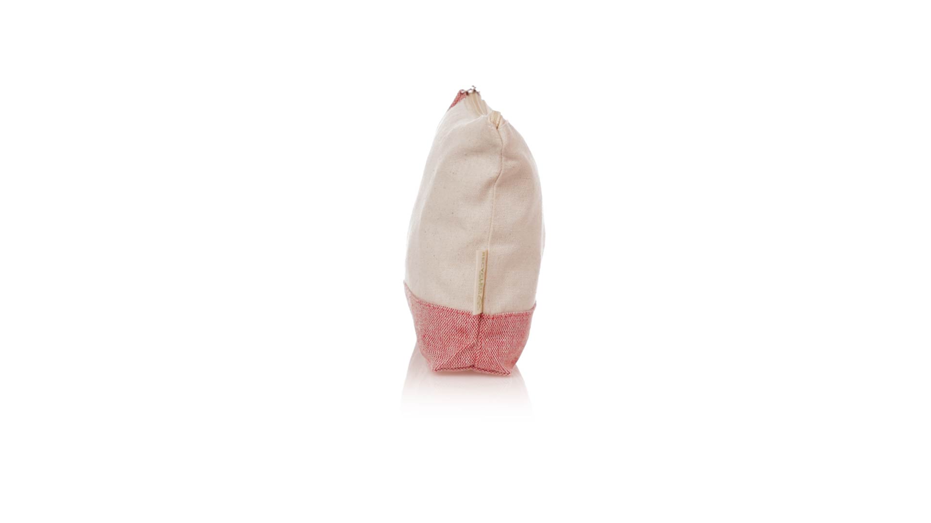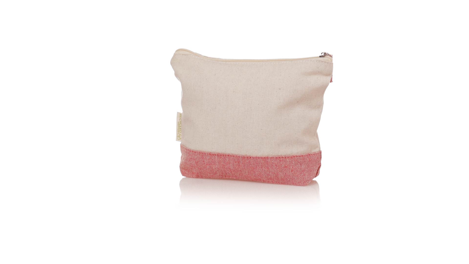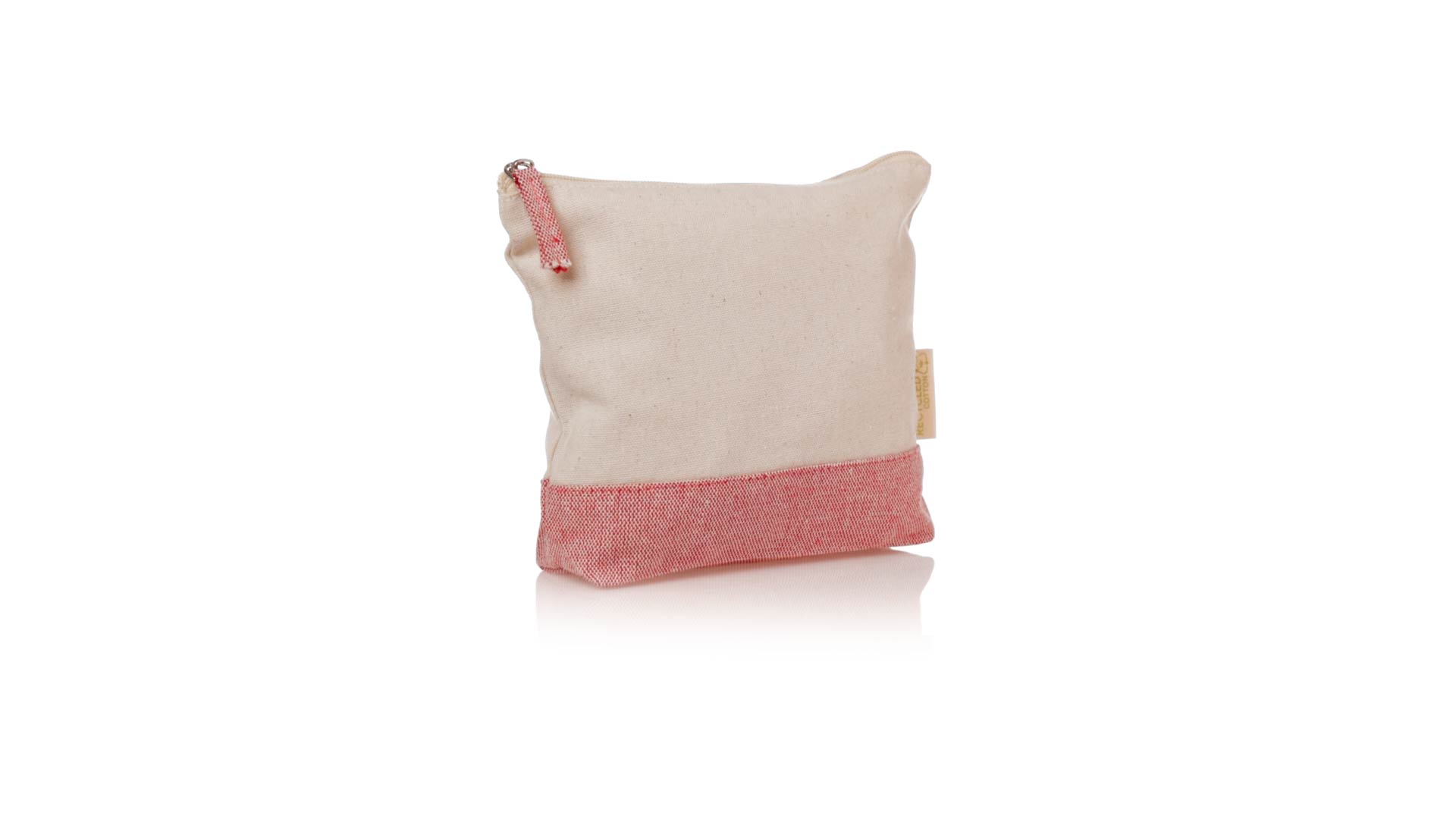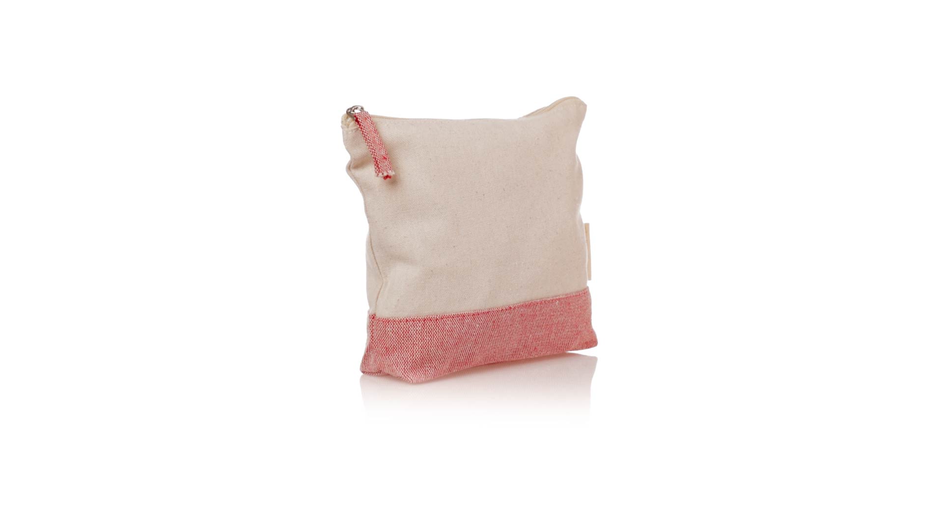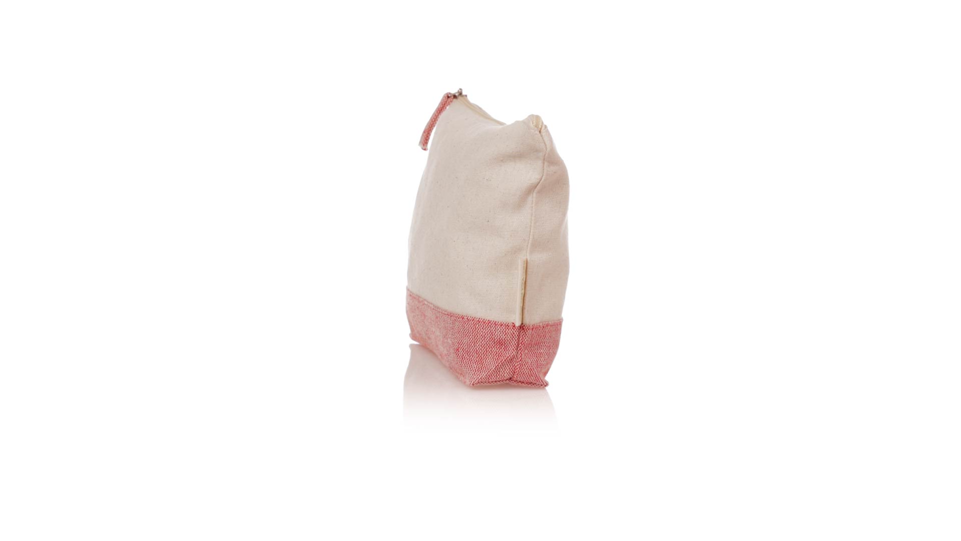 Kosmetiktasche aus recycelter Baumwolle. Hauptfach mit Reissverschluss und Griff in der gleichen Farbe wie der Boden. Erhältlich in vielen leuchtenden Farben, mit Etikett für recycelte Baumwolle.