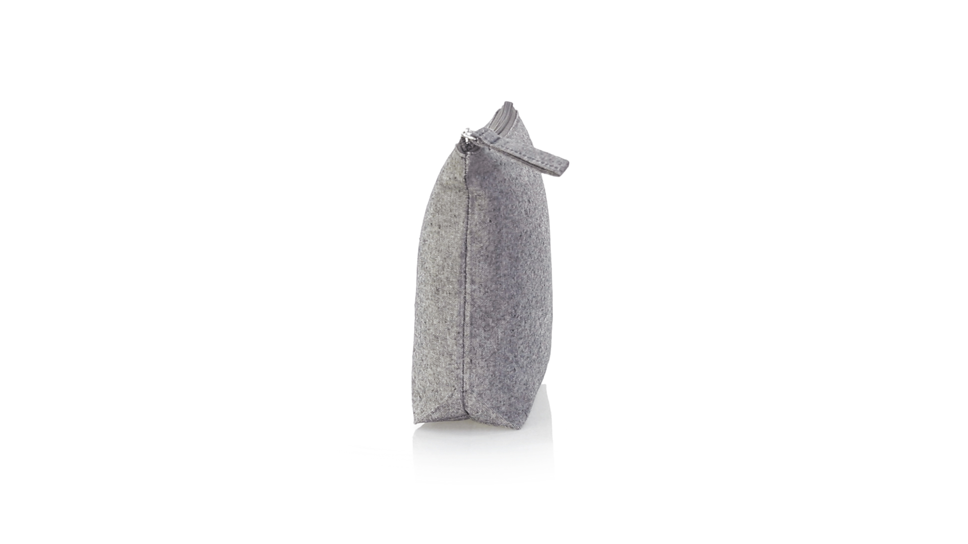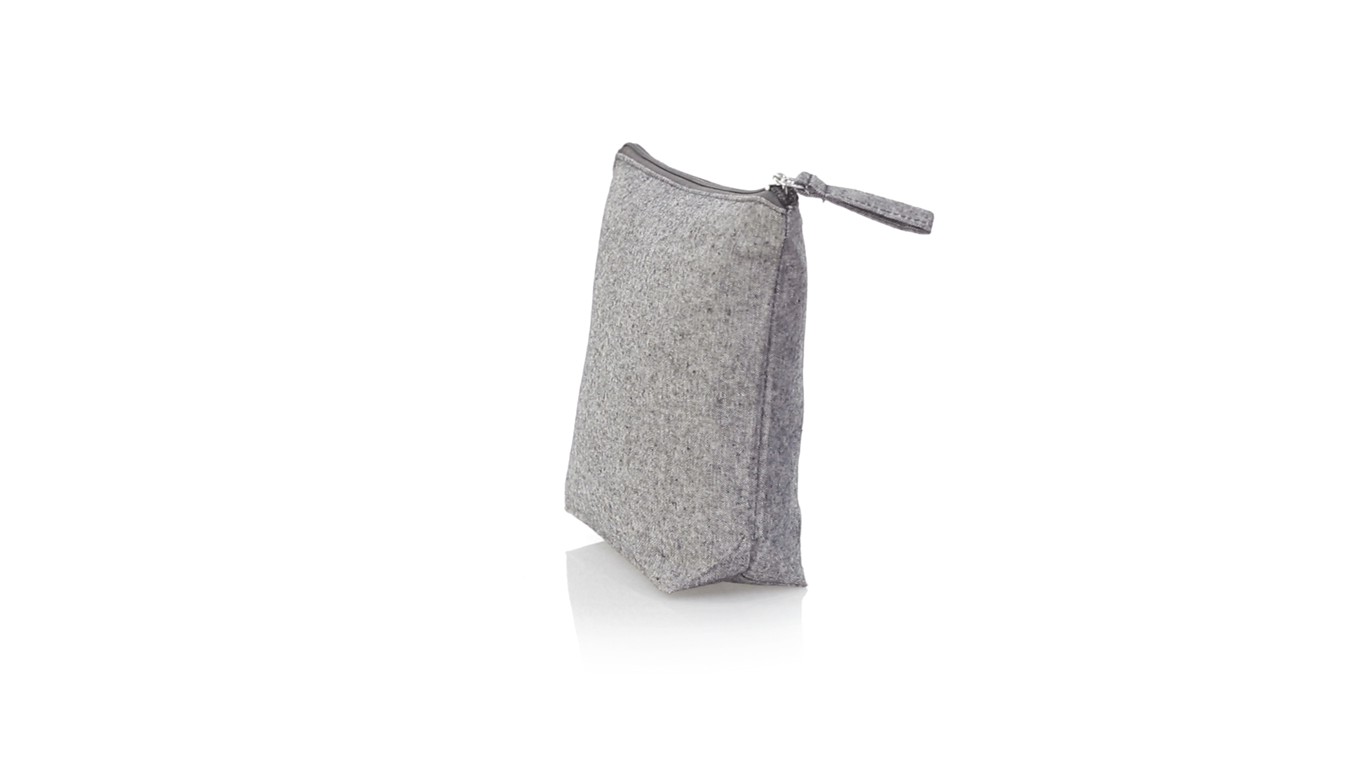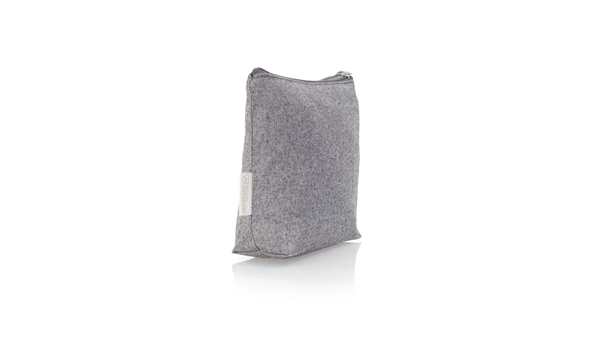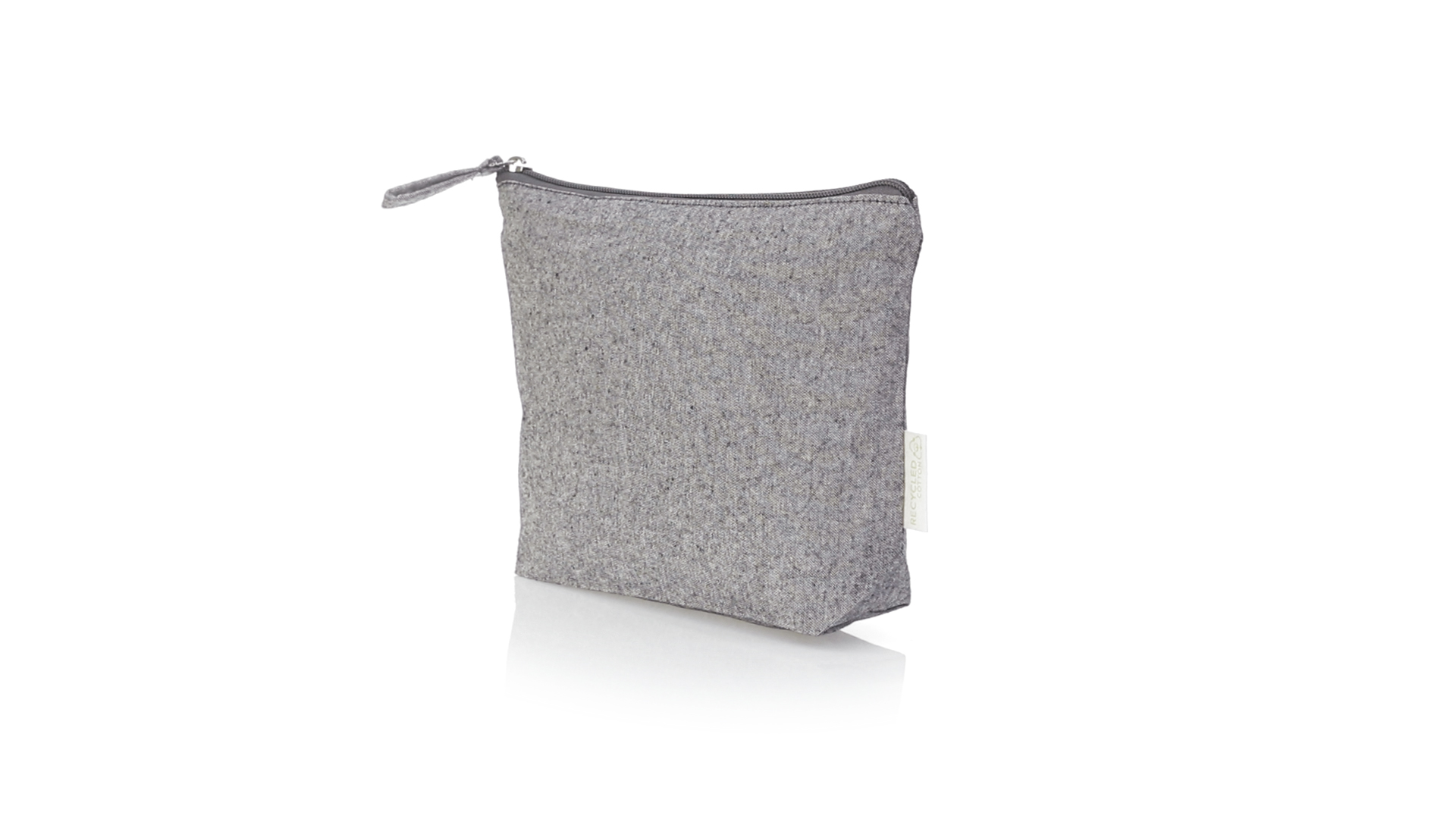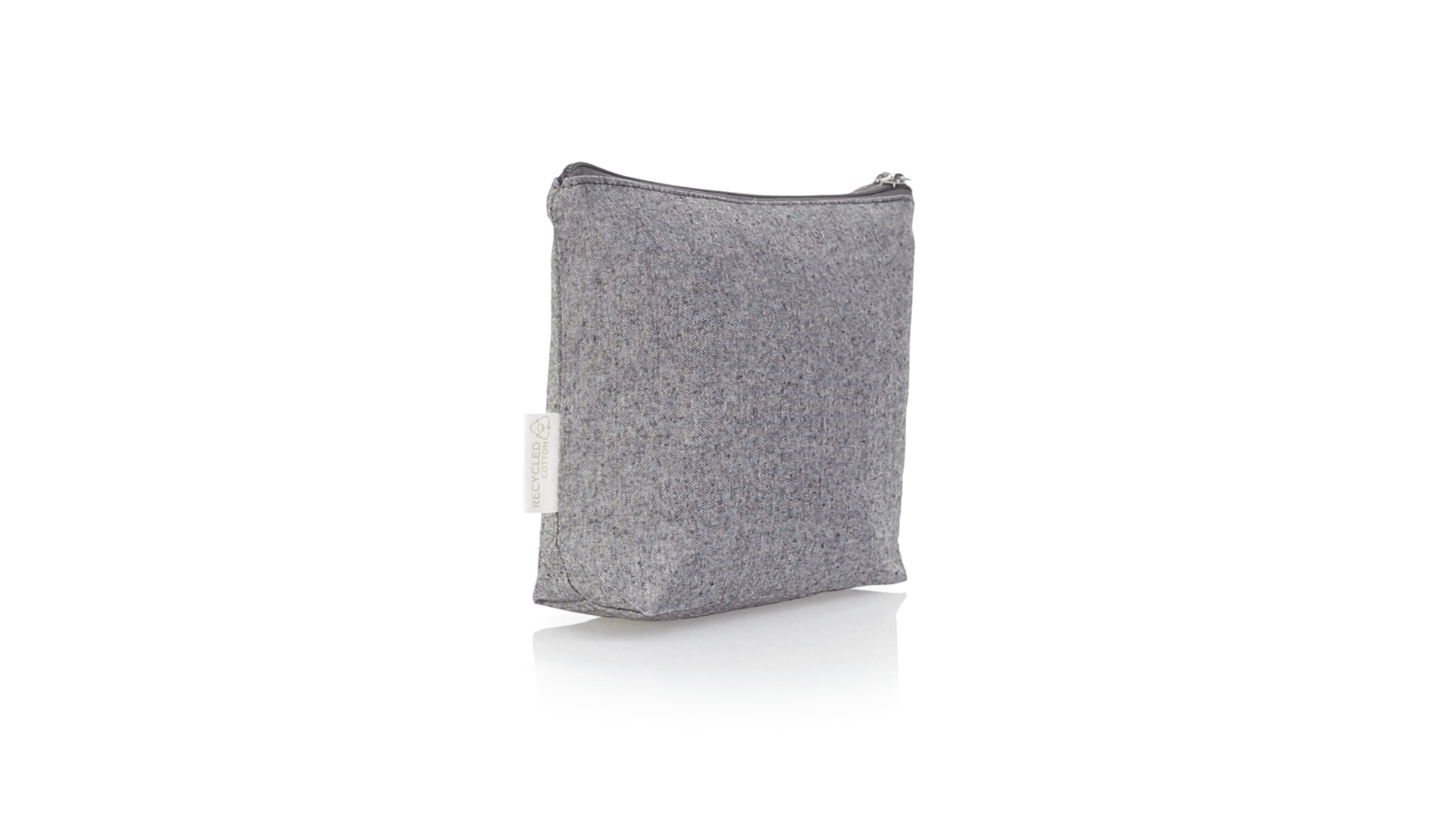 Kosmetiktasche aus kräftiger recycelter Baumwolle GRS 180g/m2. GRS-Zertifizierung (Global Recycled Standard), die die recycelte Herkunft des für die Herstellung des Produkts verwendeten Materials garantiert. Reissverschluss mit passendem Puller und Öko-Label an der Aussenseite.