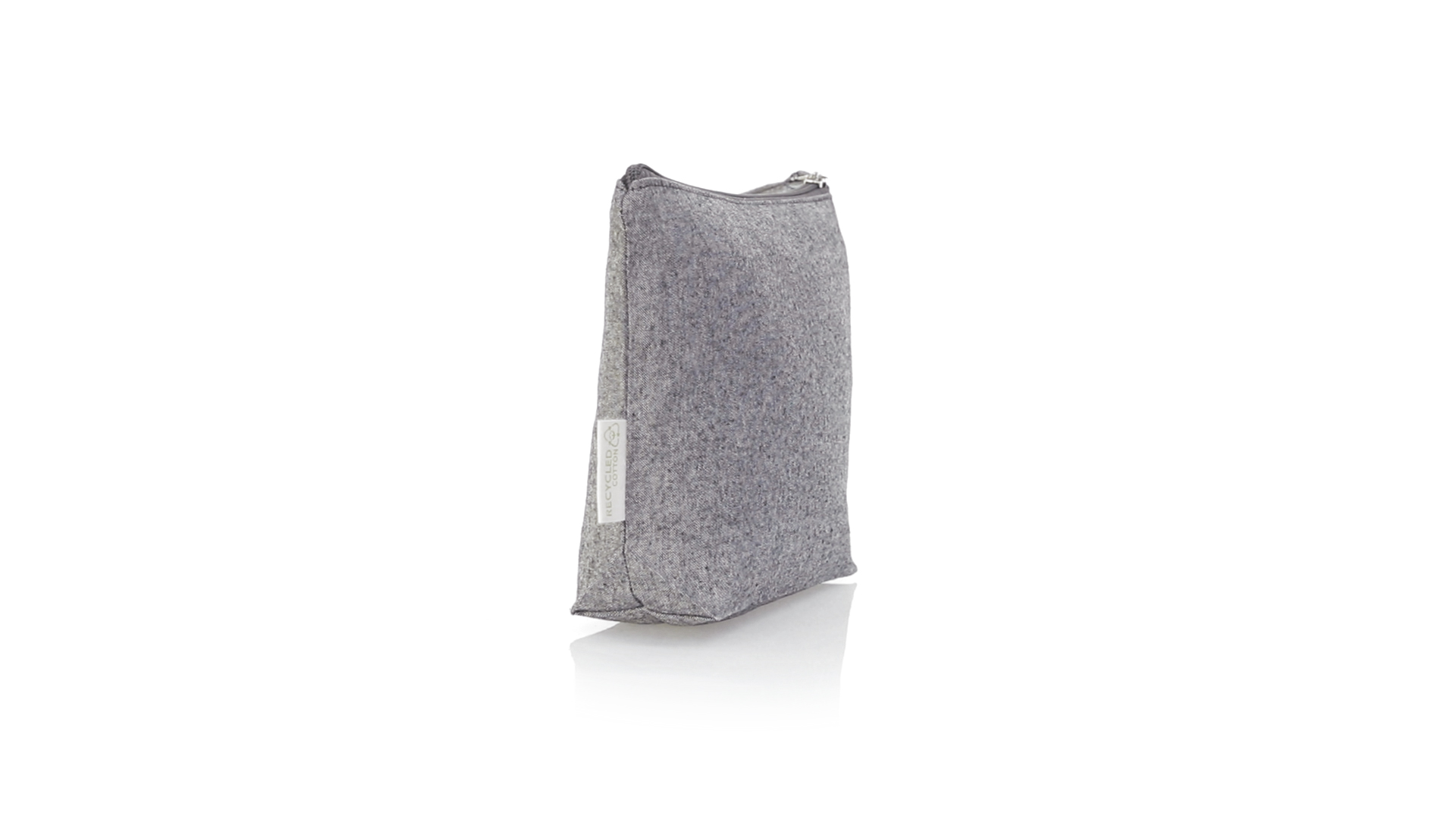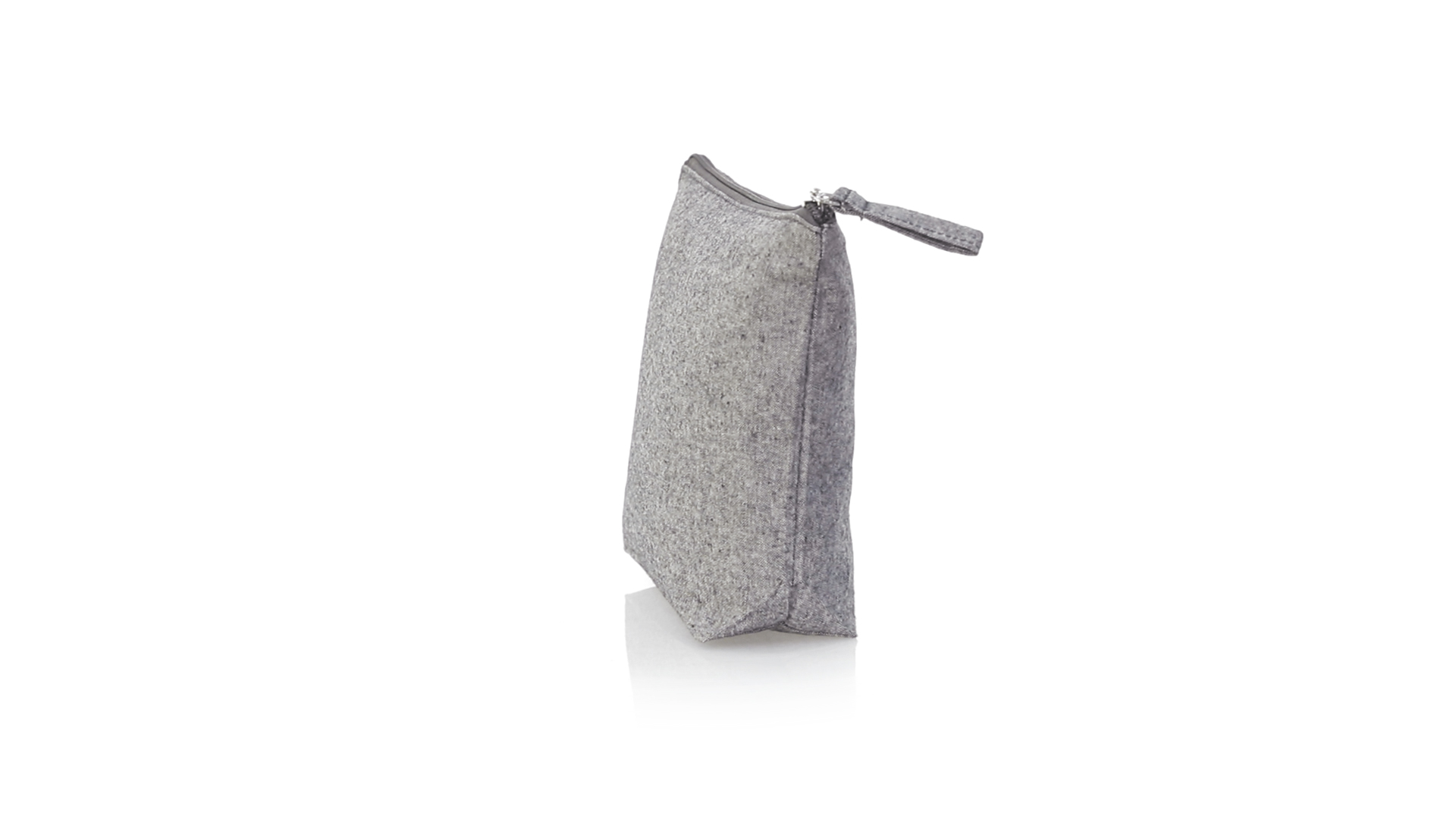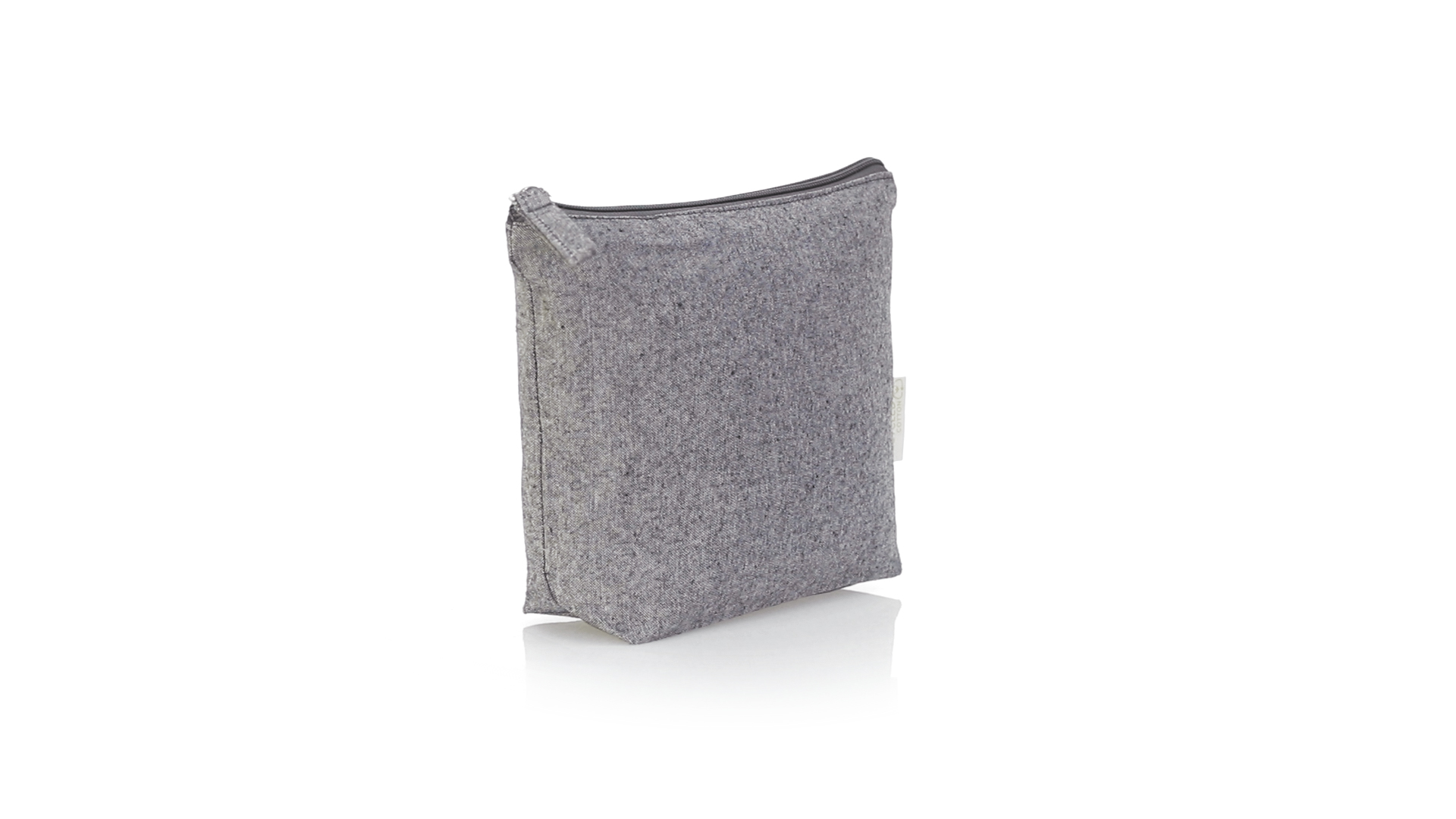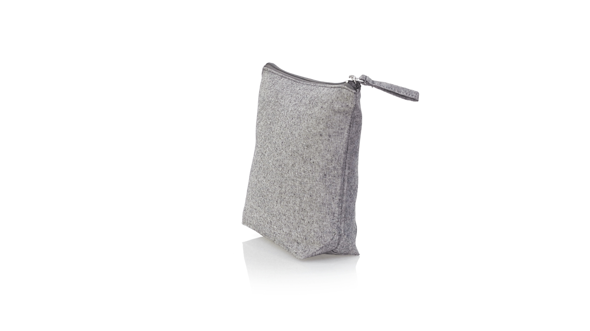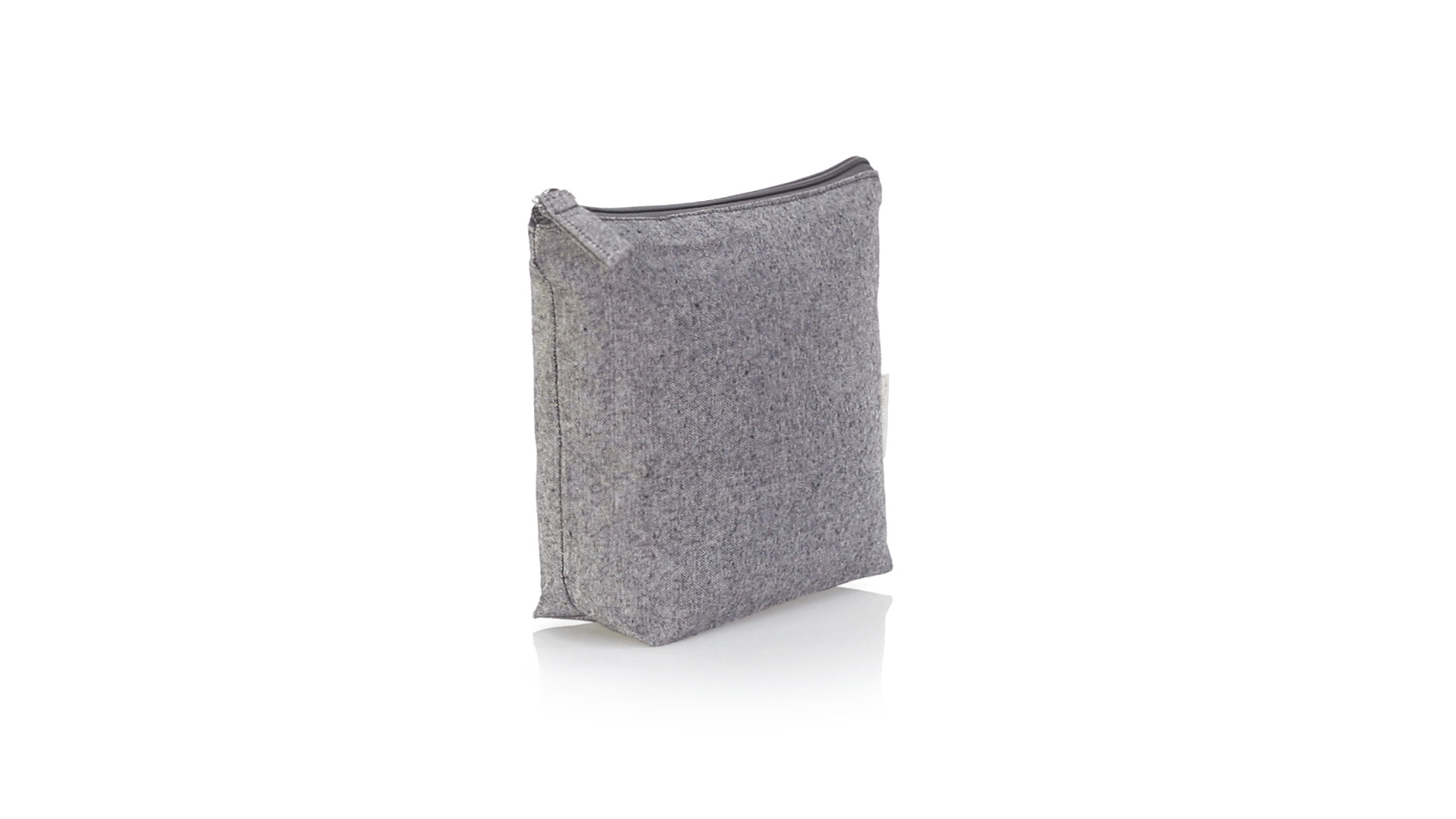 Kosmetiktasche aus kräftiger recycelter Baumwolle GRS 180g/m2. GRS-Zertifizierung (Global Recycled Standard), die die recycelte Herkunft des für die Herstellung des Produkts verwendeten Materials garantiert. Reissverschluss mit passendem Puller und Öko-Label an der Aussenseite.