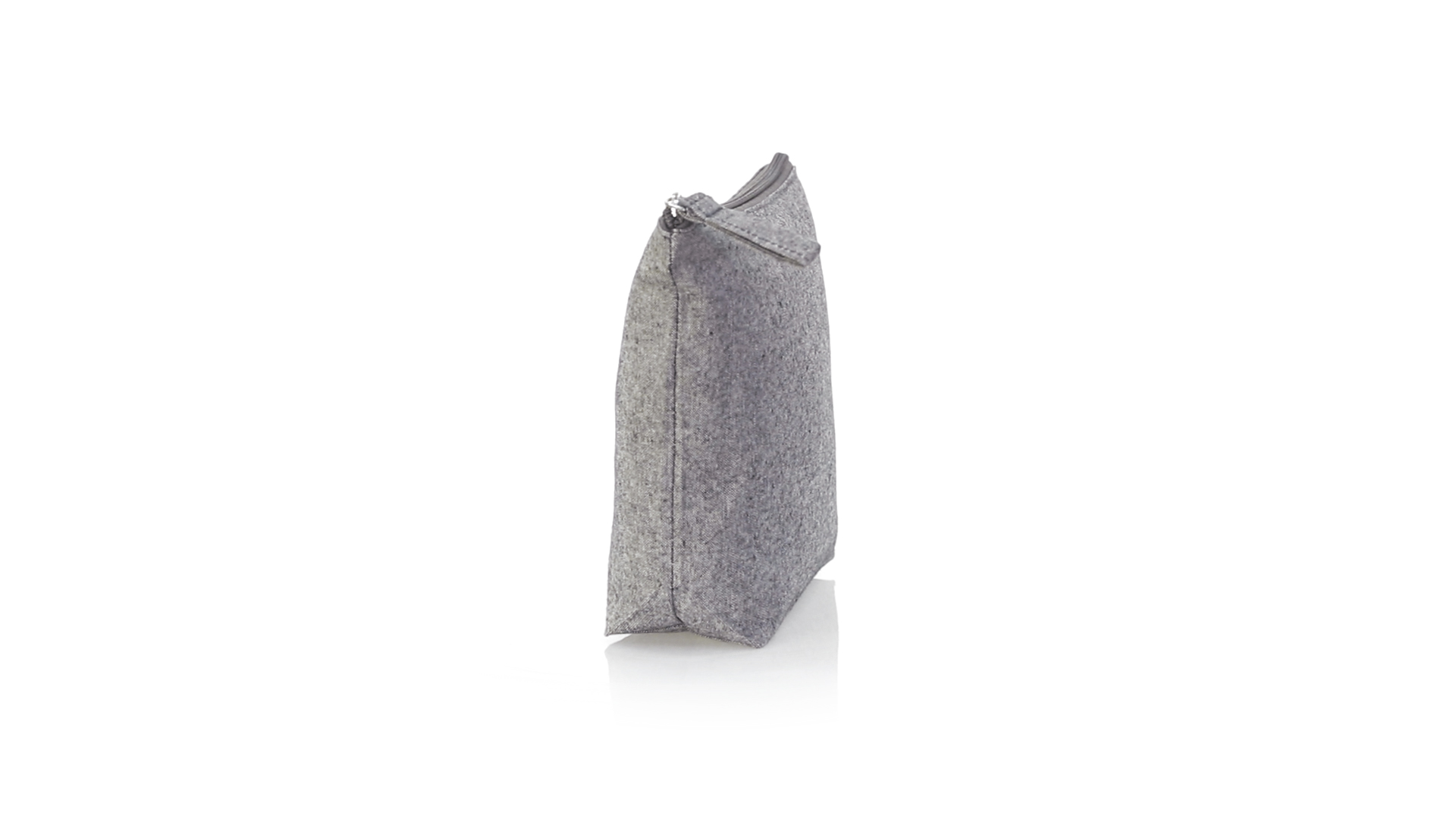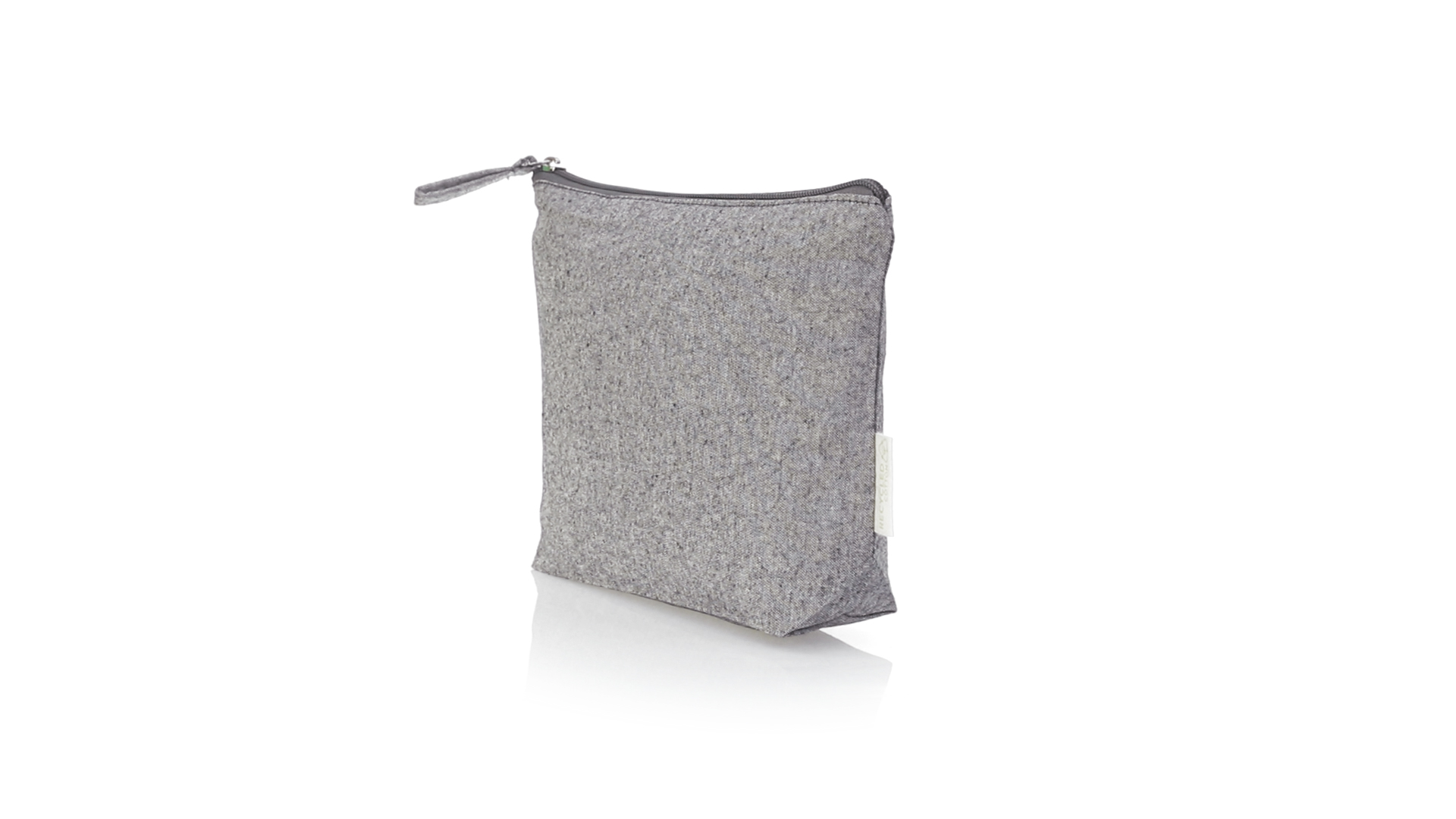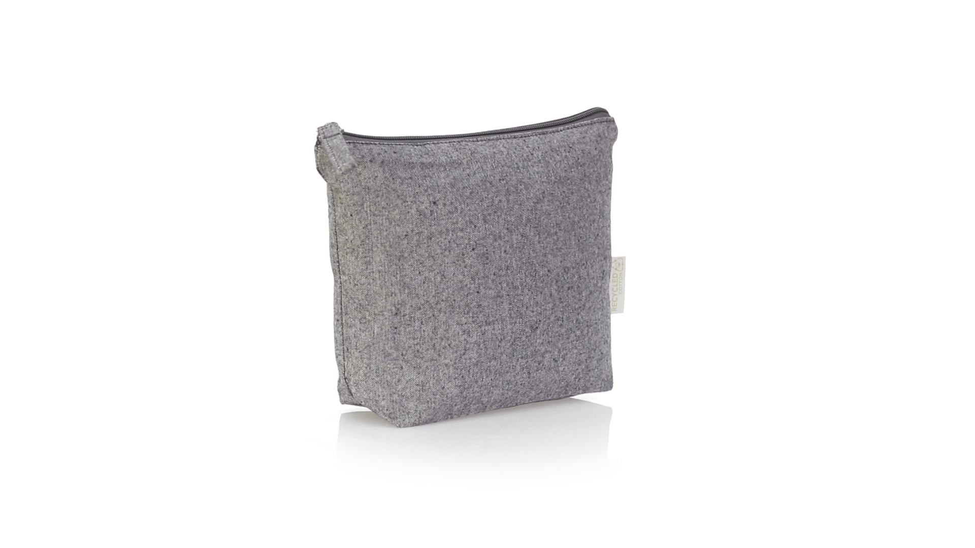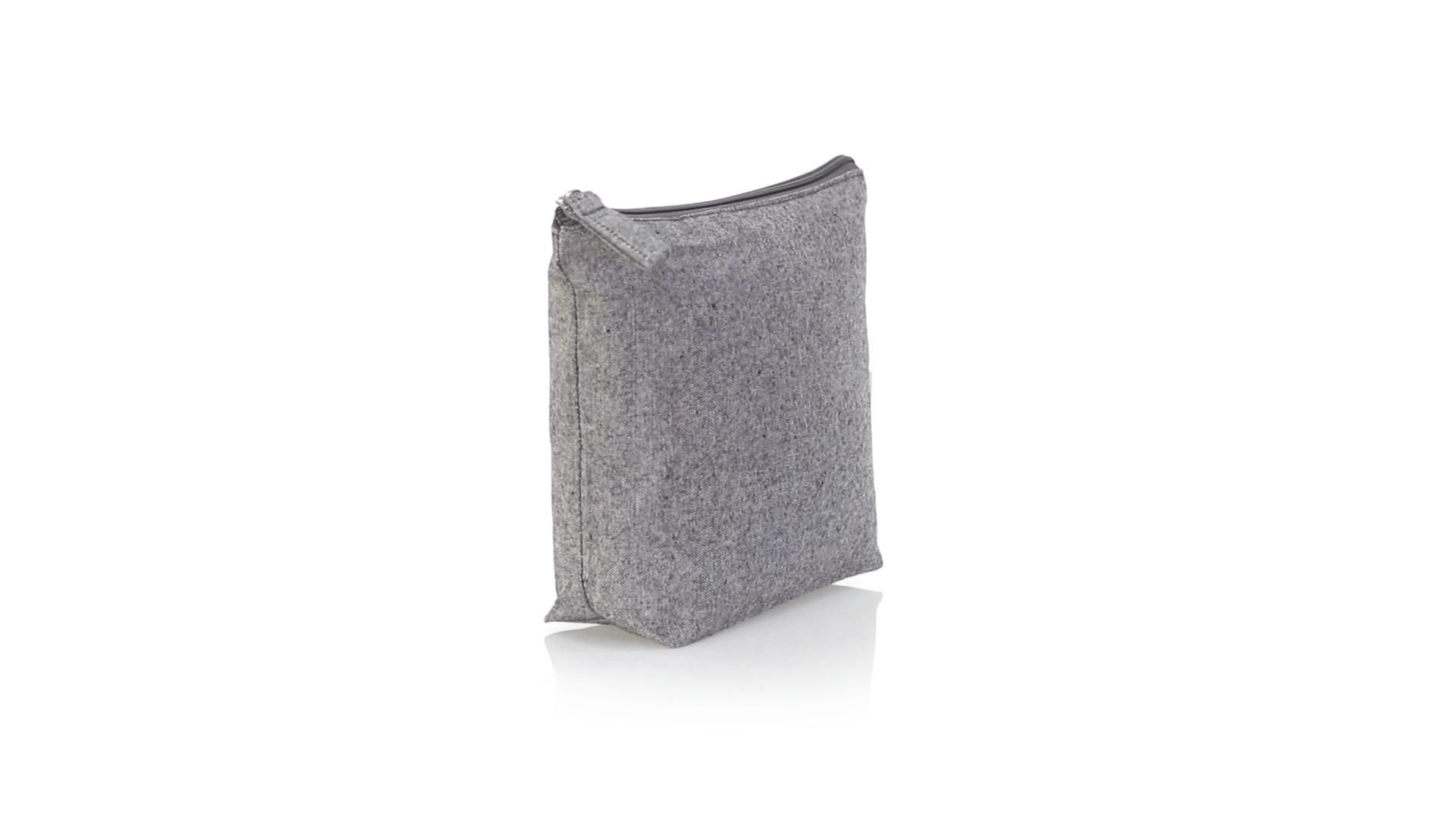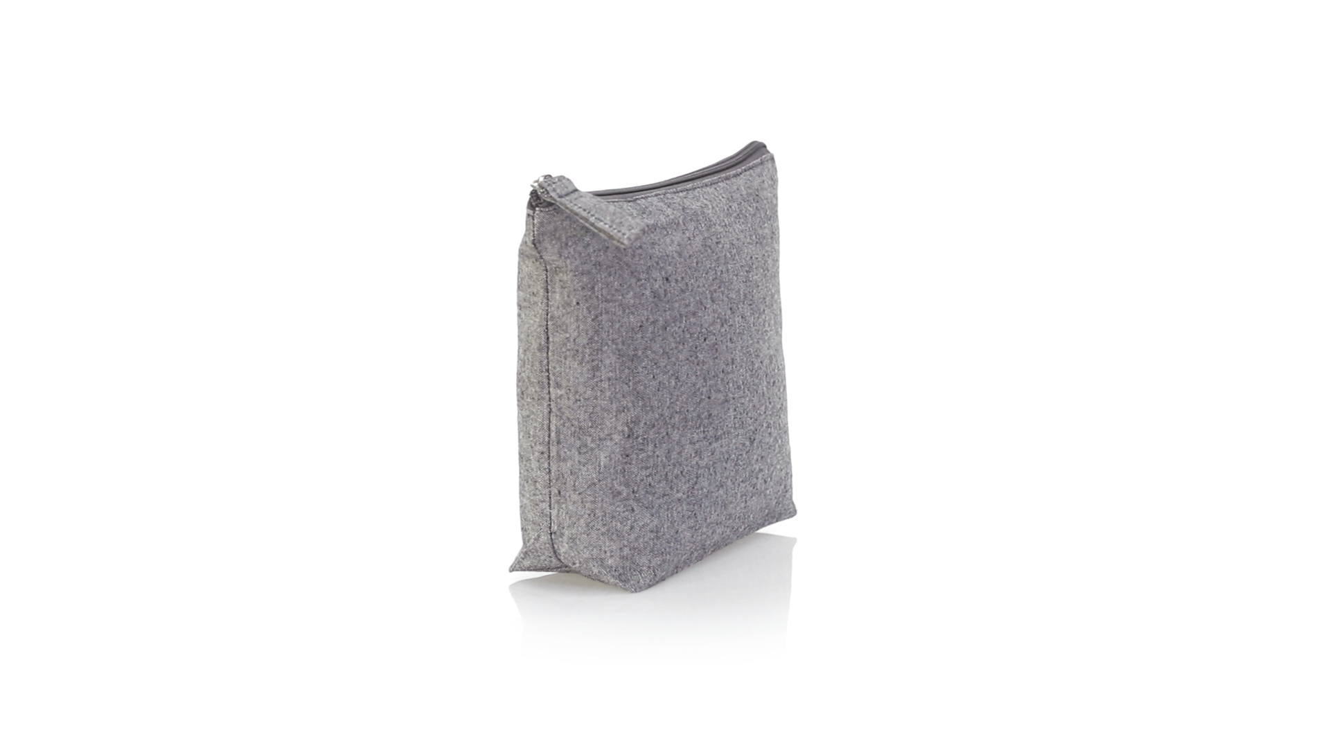Kosmetiktasche aus kräftiger recycelter Baumwolle GRS 180g/m2. GRS-Zertifizierung (Global Recycled Standard), die die recycelte Herkunft des für die Herstellung des Produkts verwendeten Materials garantiert. Reissverschluss mit passendem Puller und Öko-Label an der Aussenseite.