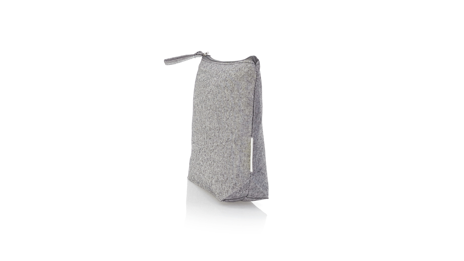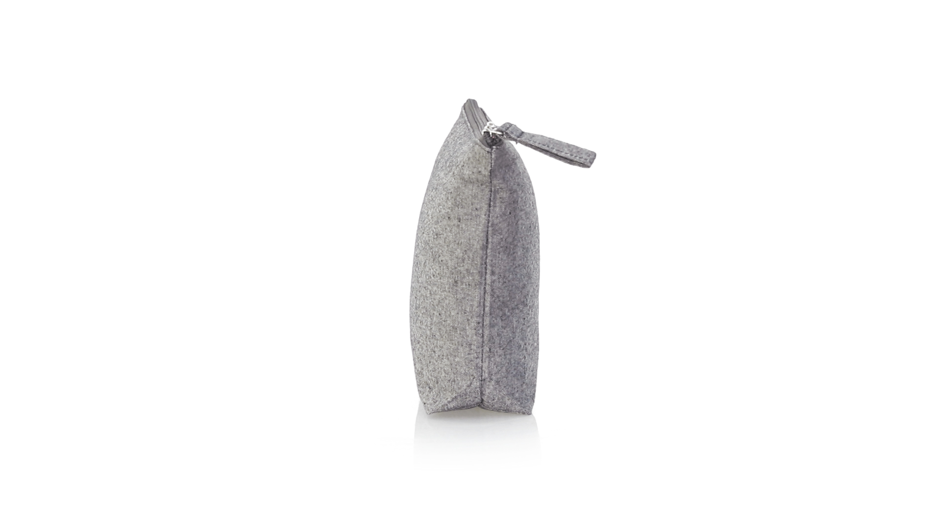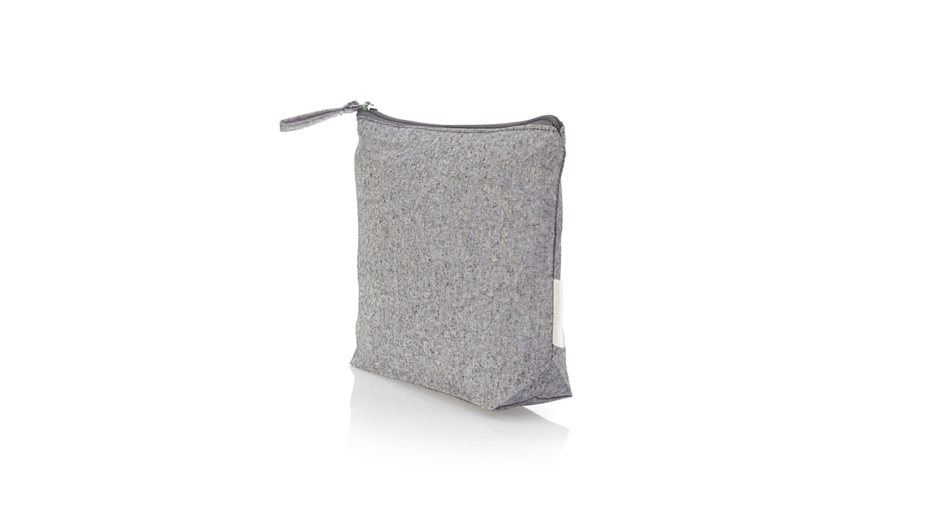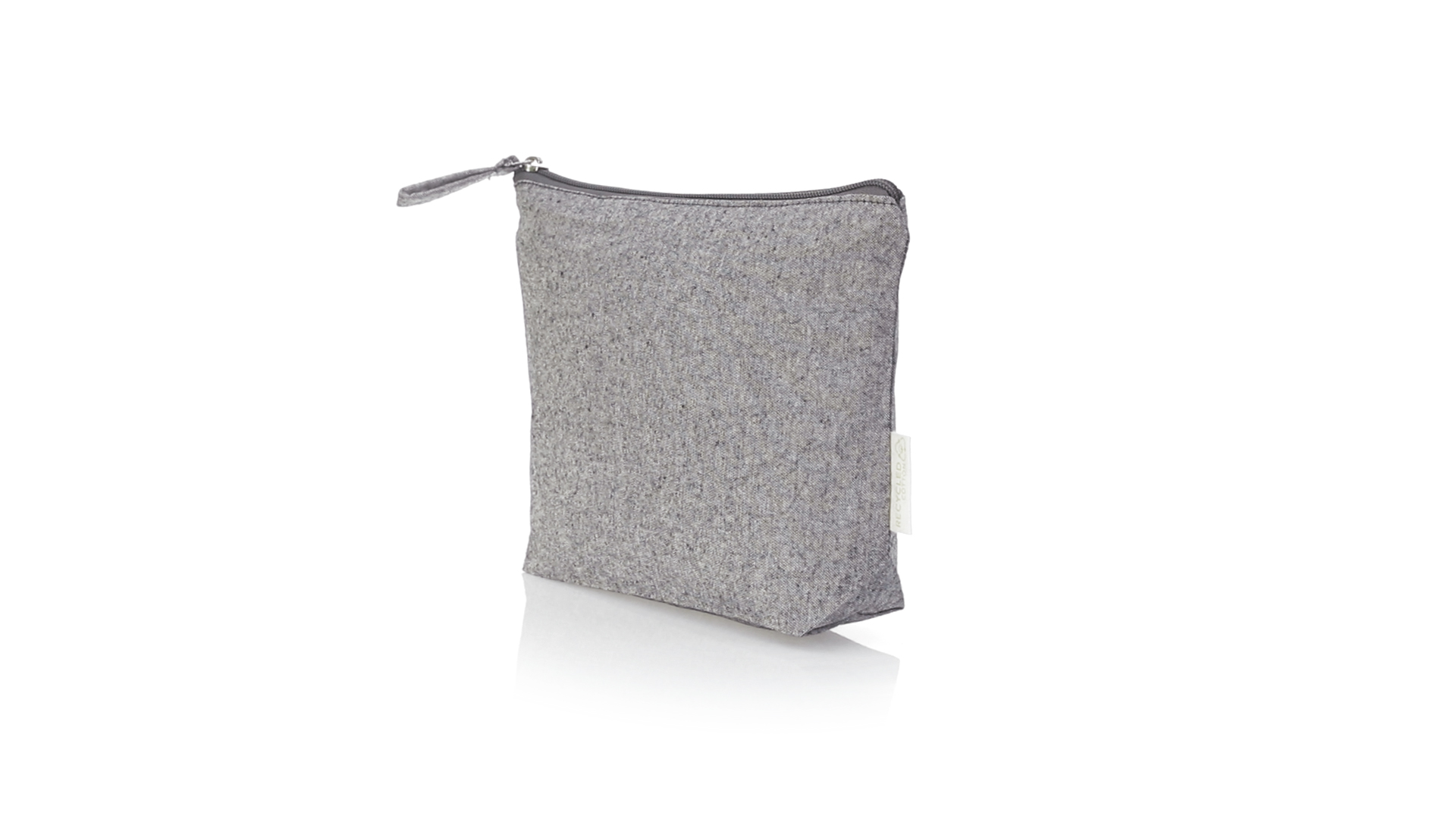 Kosmetiktasche aus kräftiger recycelter Baumwolle GRS 180g/m2. GRS-Zertifizierung (Global Recycled Standard), die die recycelte Herkunft des für die Herstellung des Produkts verwendeten Materials garantiert. Reissverschluss mit passendem Puller und Öko-Label an der Aussenseite.