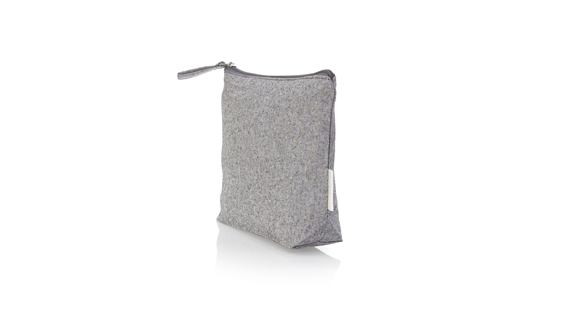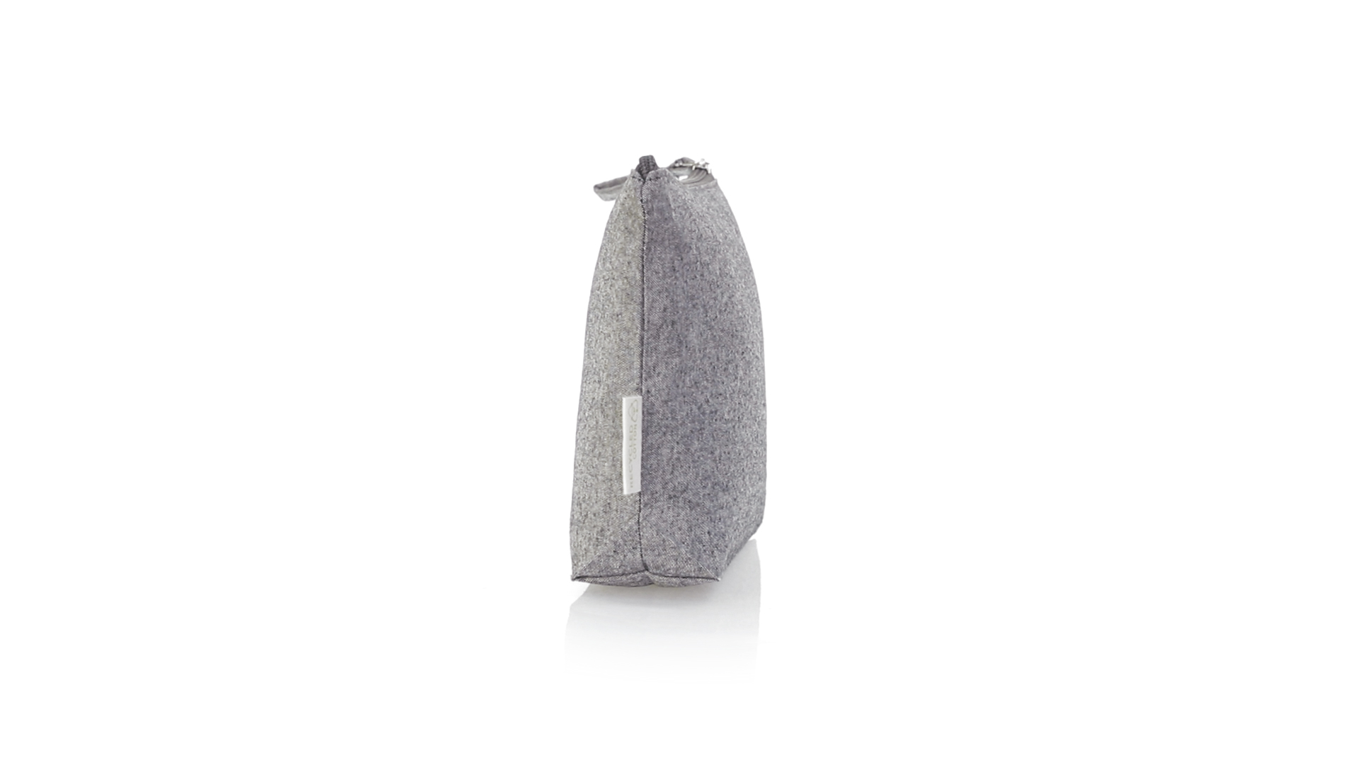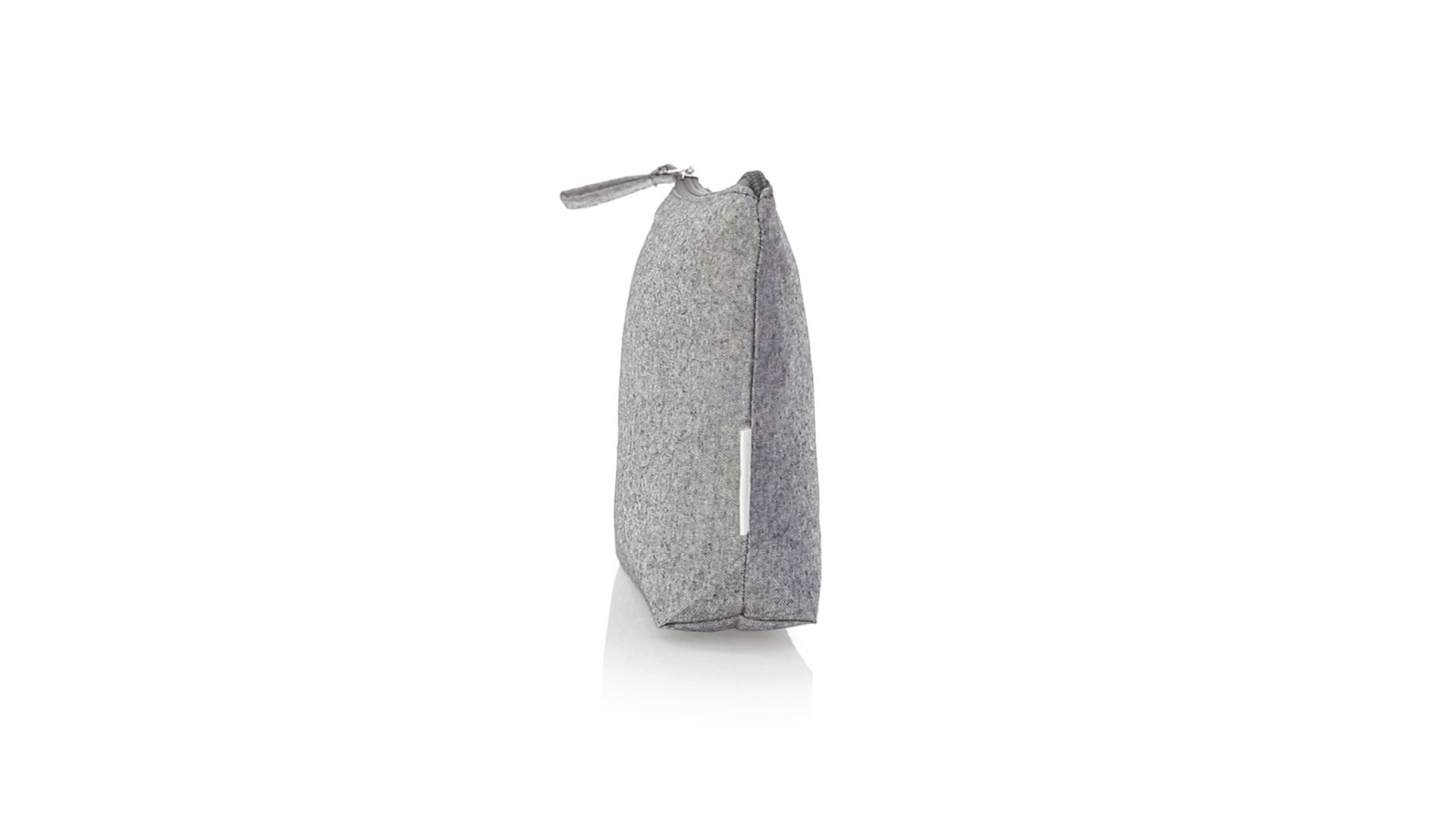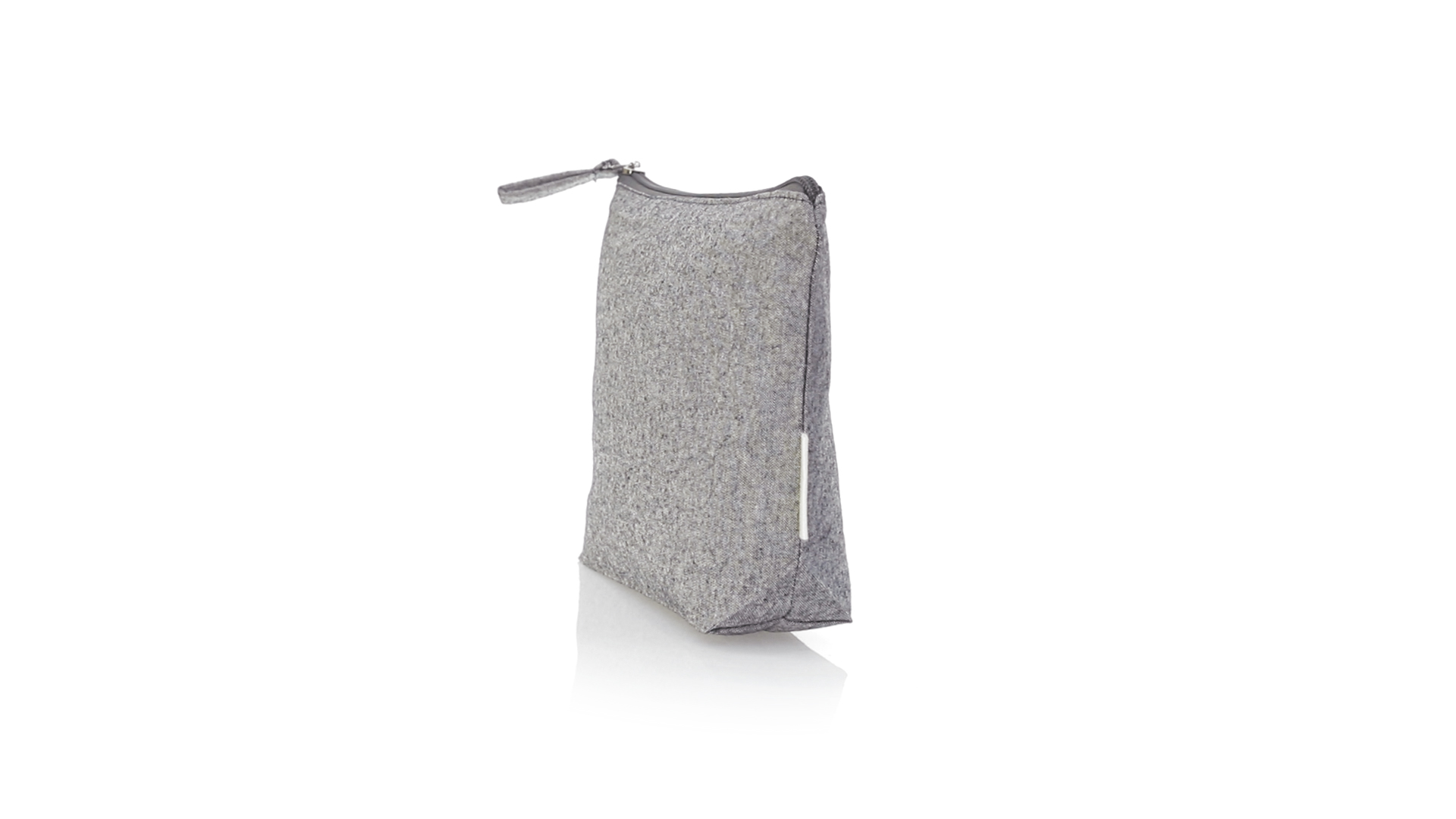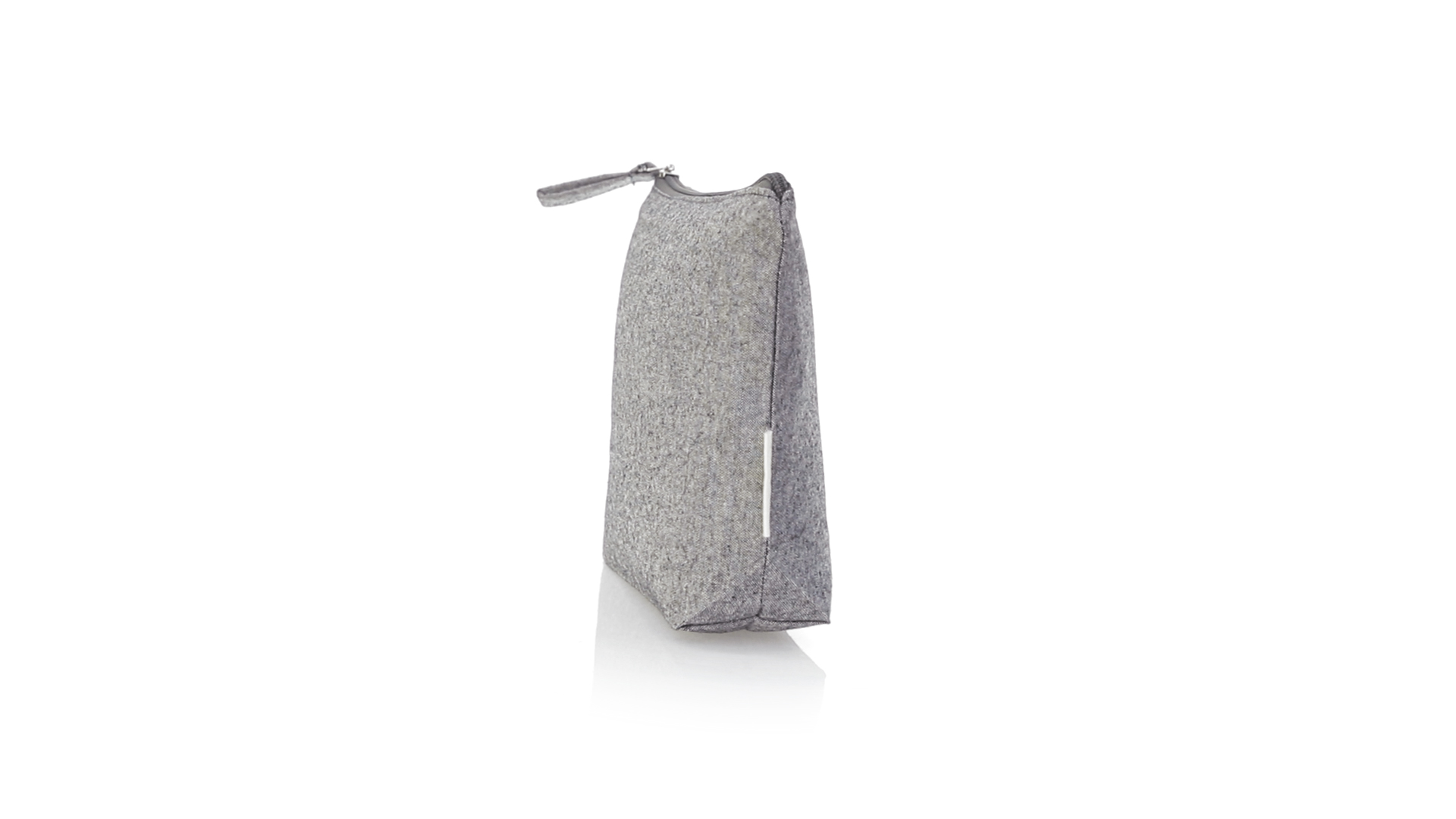 Kosmetiktasche aus kräftiger recycelter Baumwolle GRS 180g/m2. GRS-Zertifizierung (Global Recycled Standard), die die recycelte Herkunft des für die Herstellung des Produkts verwendeten Materials garantiert. Reissverschluss mit passendem Puller und Öko-Label an der Aussenseite.