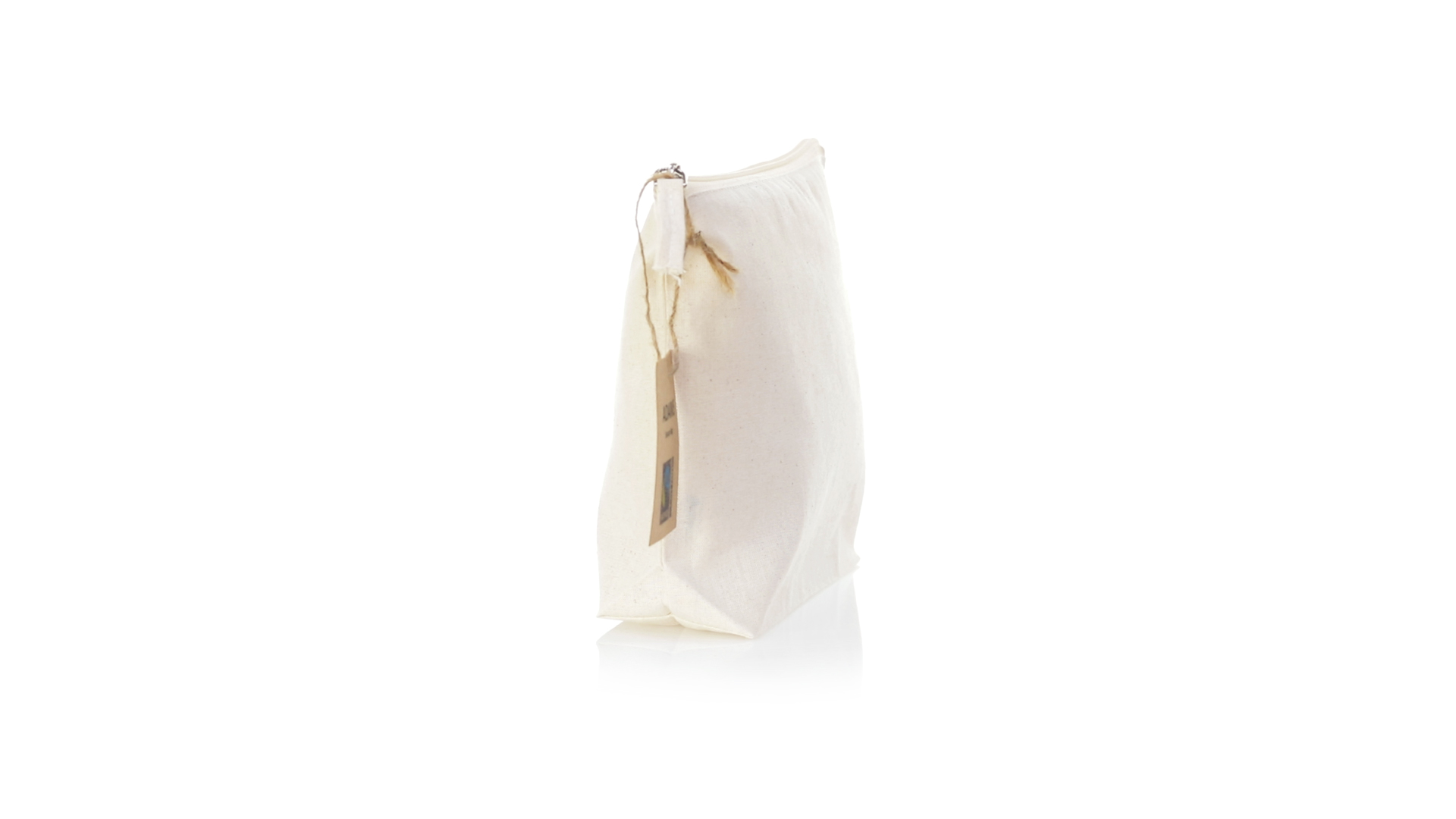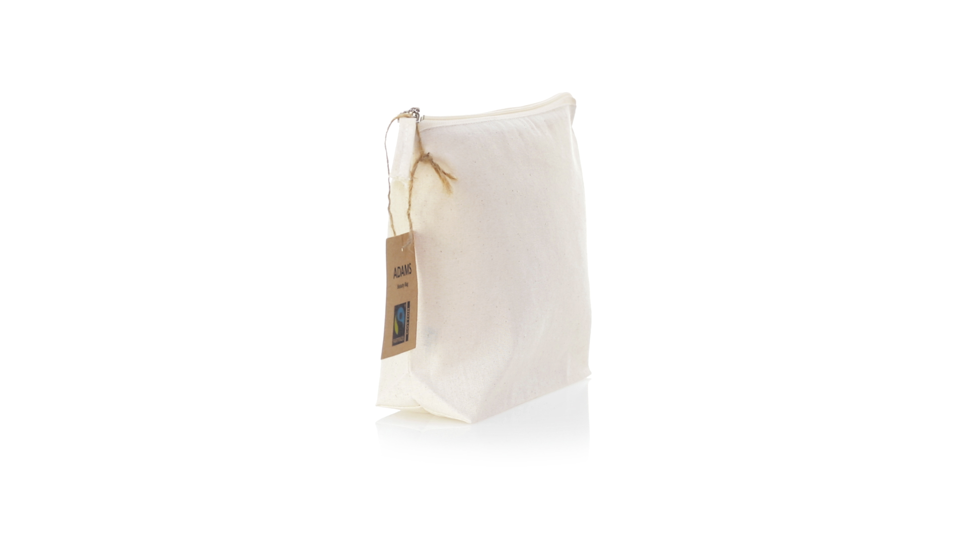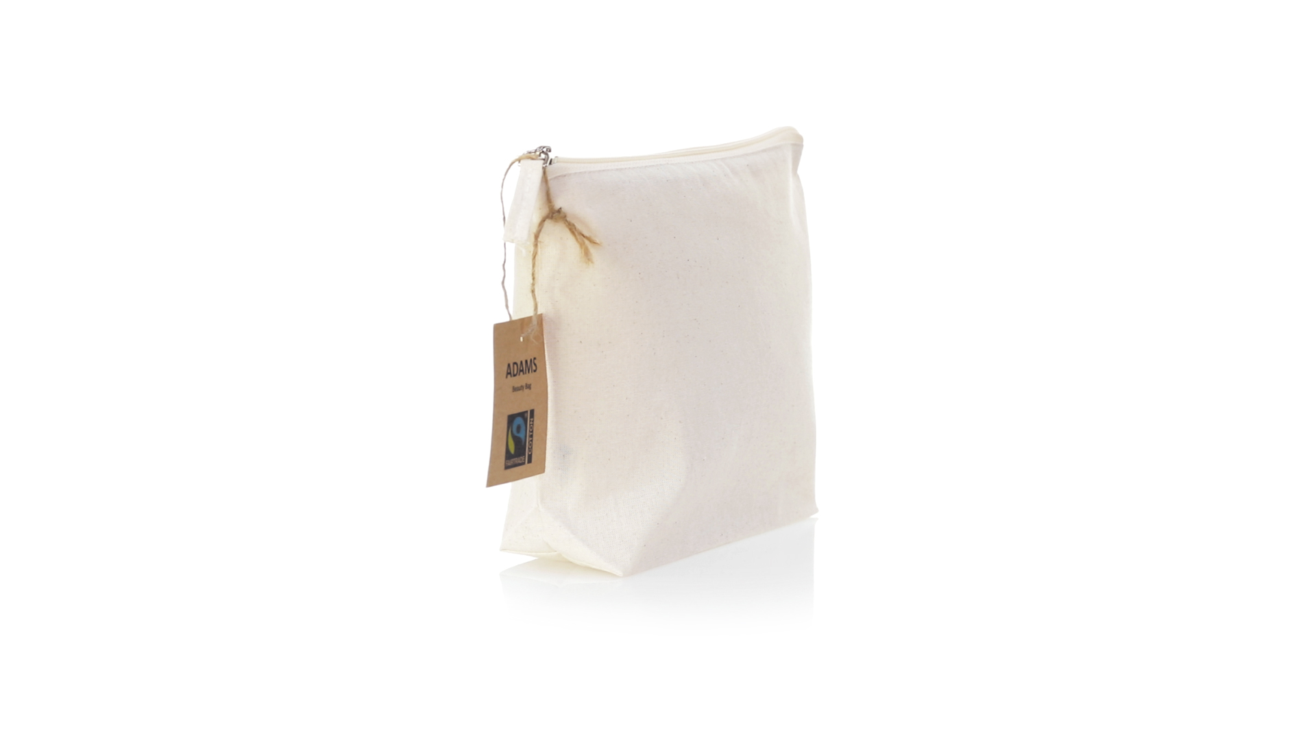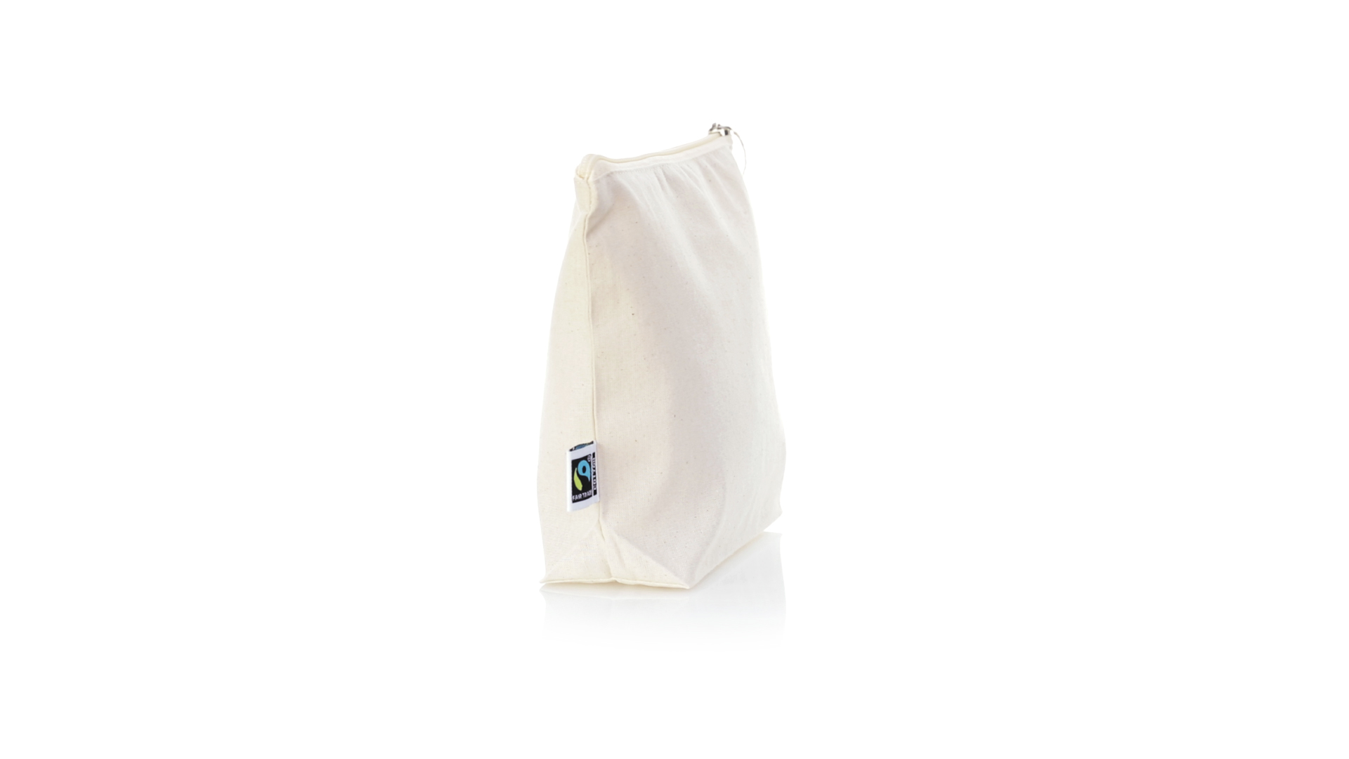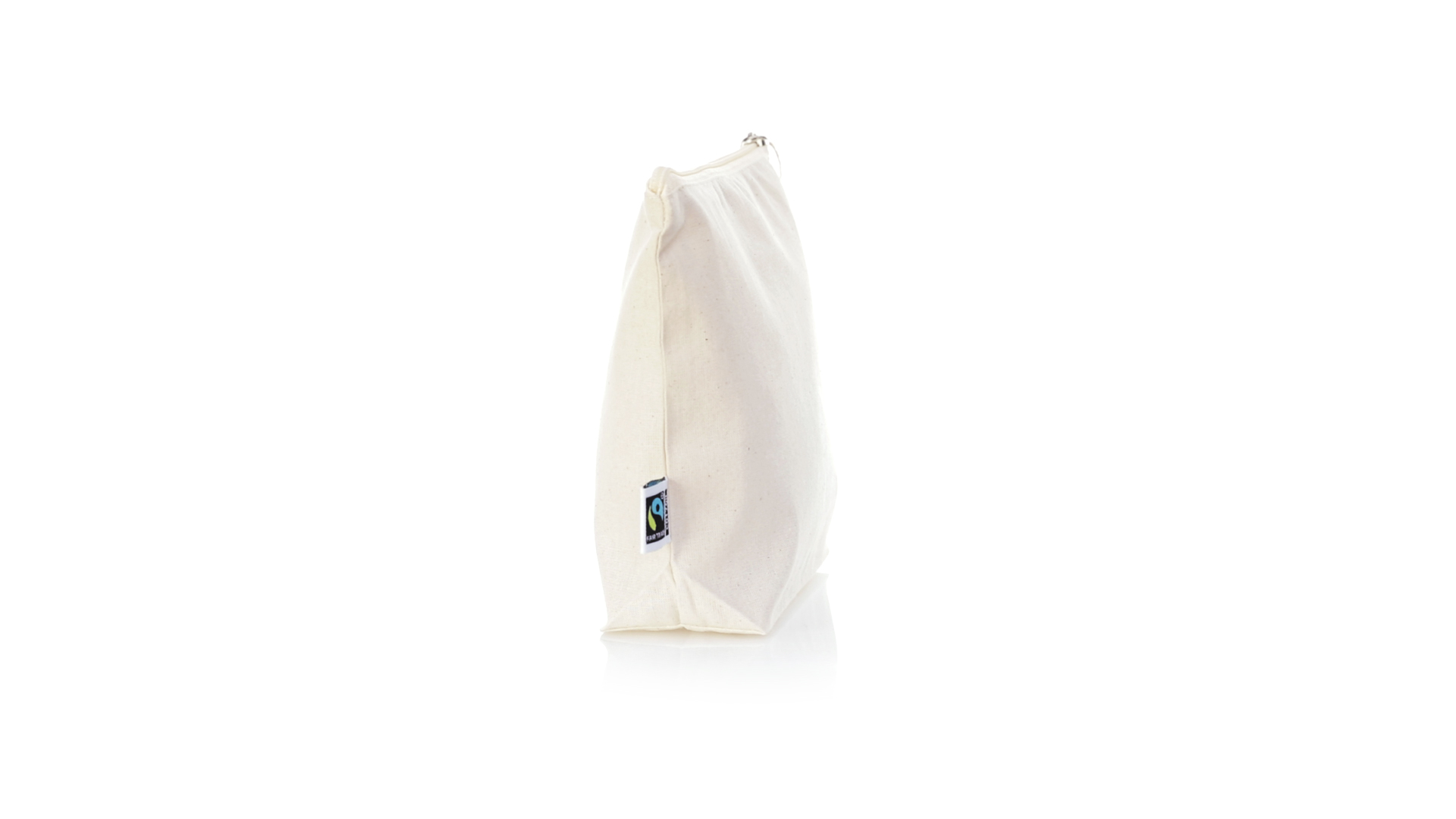 Linie "Natur" Kosmetiktasche hergestellt aus Baumwolle 180g/m2 in einem natürlichen Farbton. Mit Fairtrade-Zertifizierung, einer Alternative zum konventionellen Handelssystem, die die Entwicklung der Völker und den Kampf gegen die Armut verfolgt. Hauptfach mit Reissverschluss und passendem Abzieher, inklusive Fairtrade-Label und Anhänger aus recyceltem Karton.