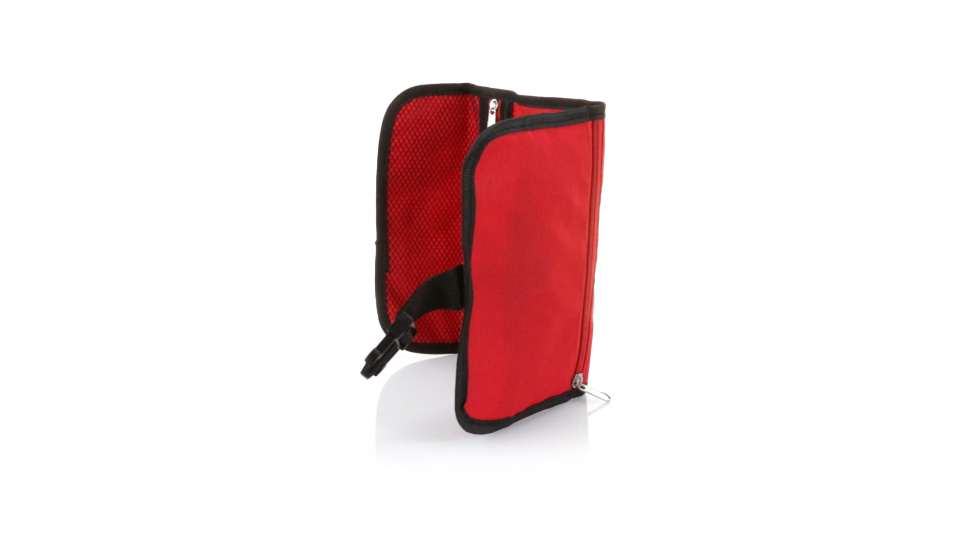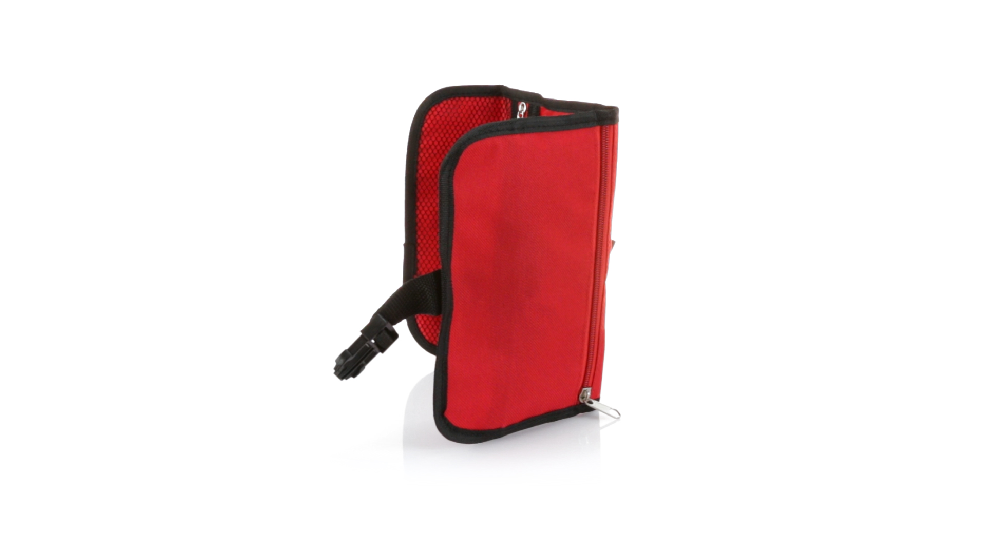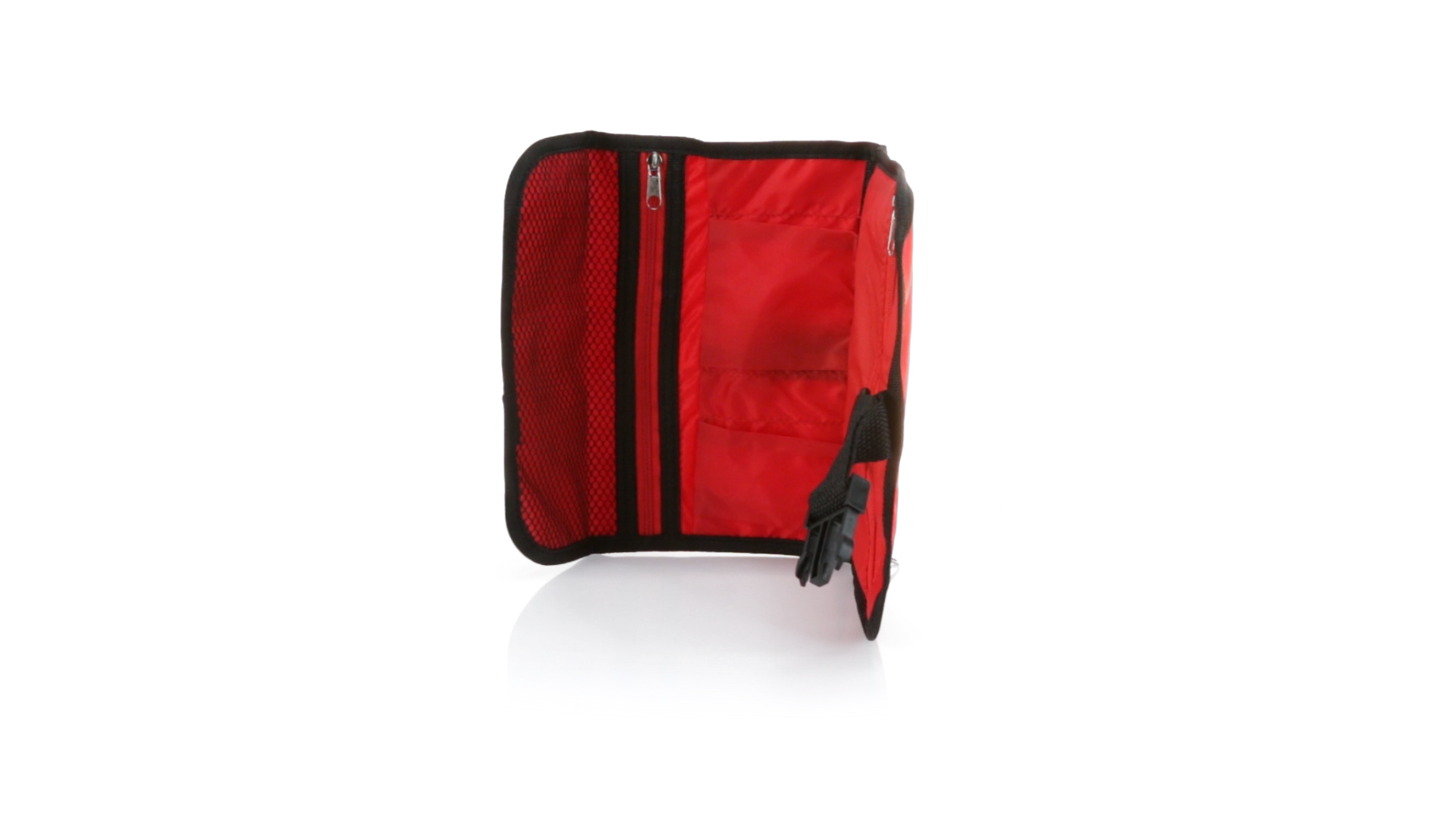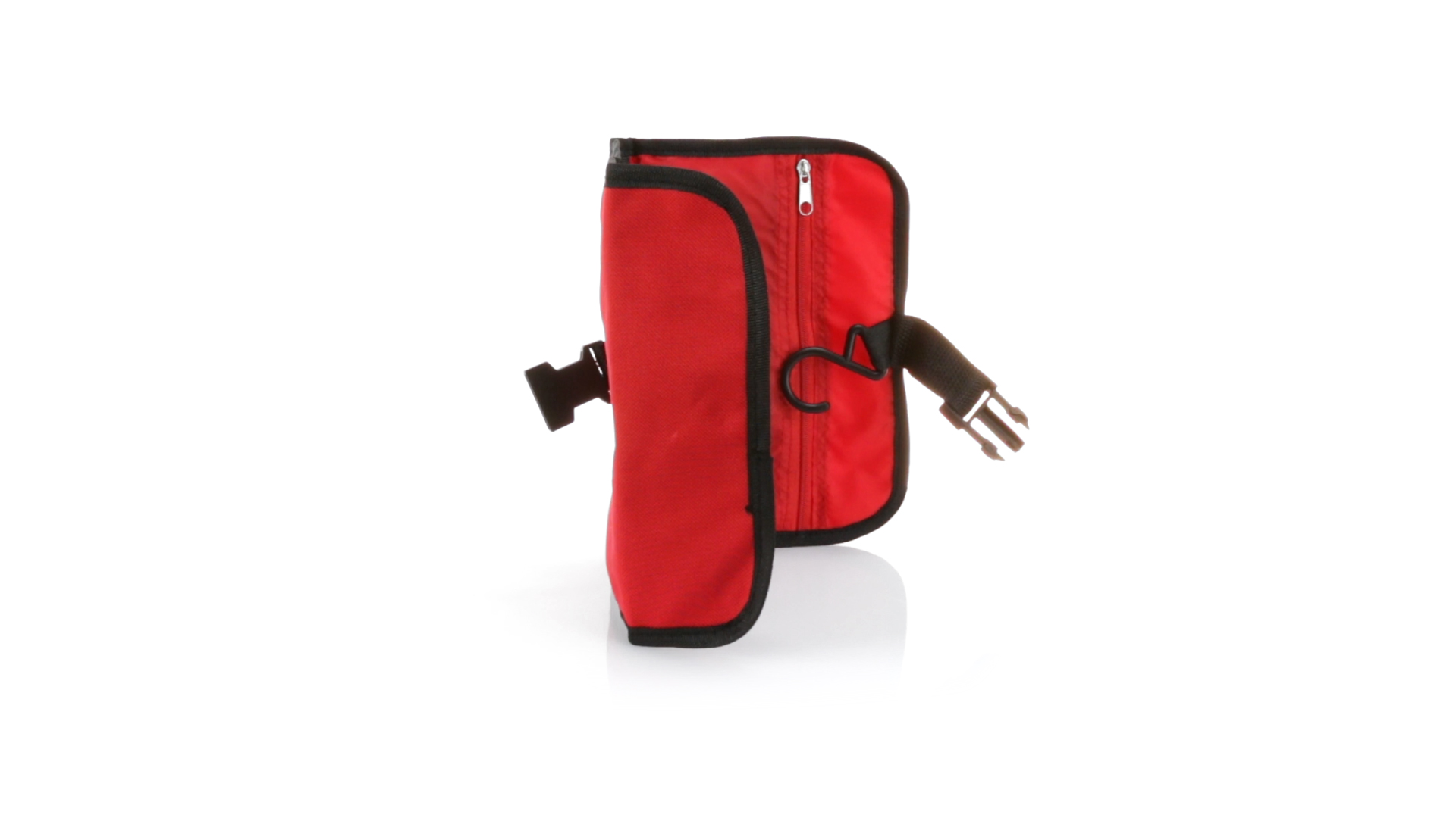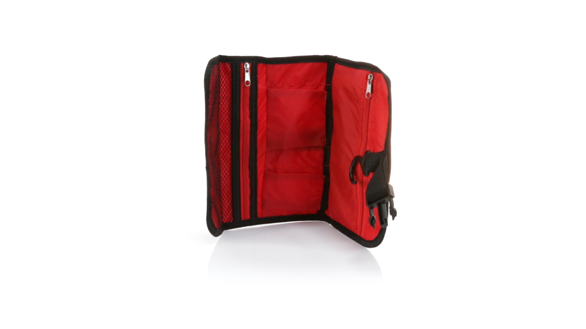 Praktischer Kulturbeutel mit Haken zum Aufhängen aus strapazierfähigem 600D Polyester in kräftigen Farben mit schwarzer Paspel. Aussentasche mit Reissverschluss und verstellbarem Riemen mit Klickverschluss. Weiches Polyester-Innenfutter mit verschiedenen Taschen und Netzfach.