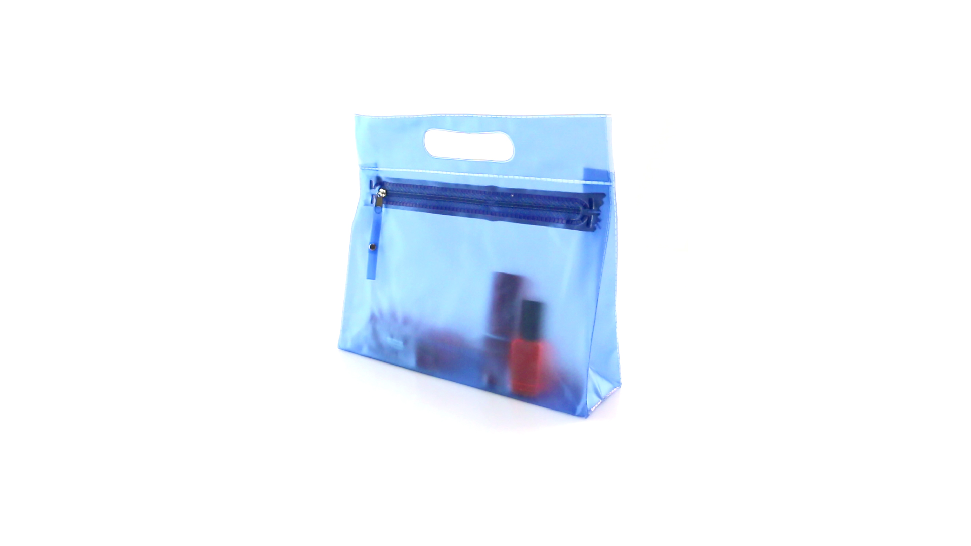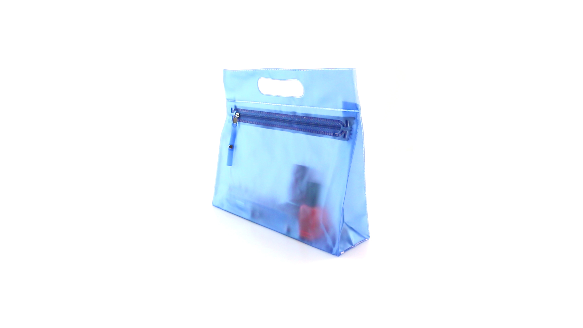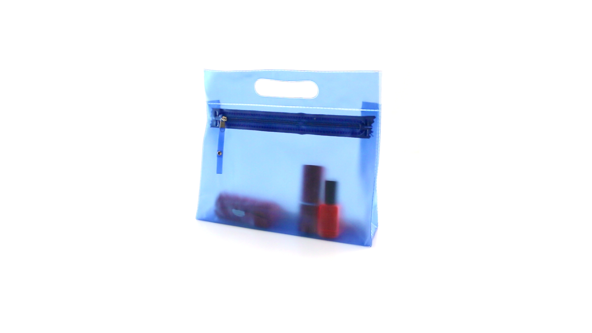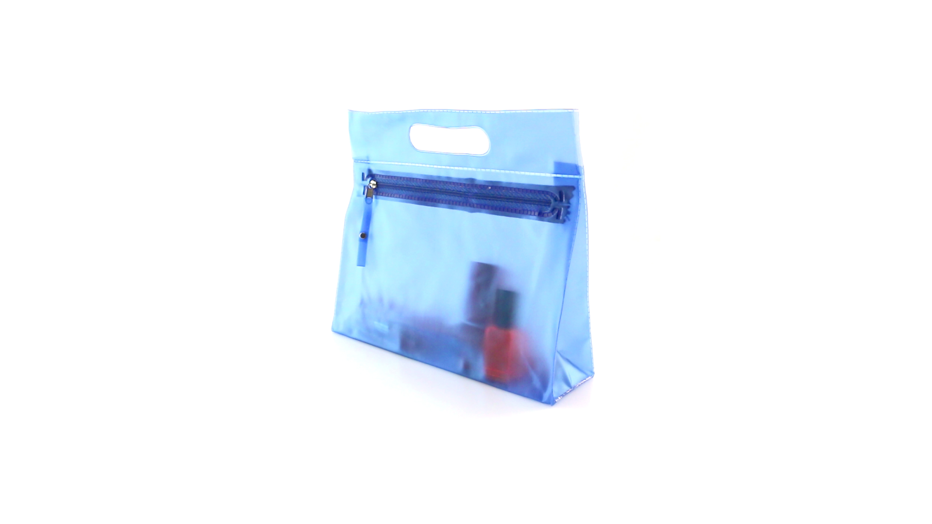 Vielseitig verwendbarer Kulturbeutel aus robustem, halbtransparentem PVC in verschiedenen Farben. Mit robustem, gestanztem Griff und farblich passendem Reissverschluss mit Zugband für einfaches Öffnen.