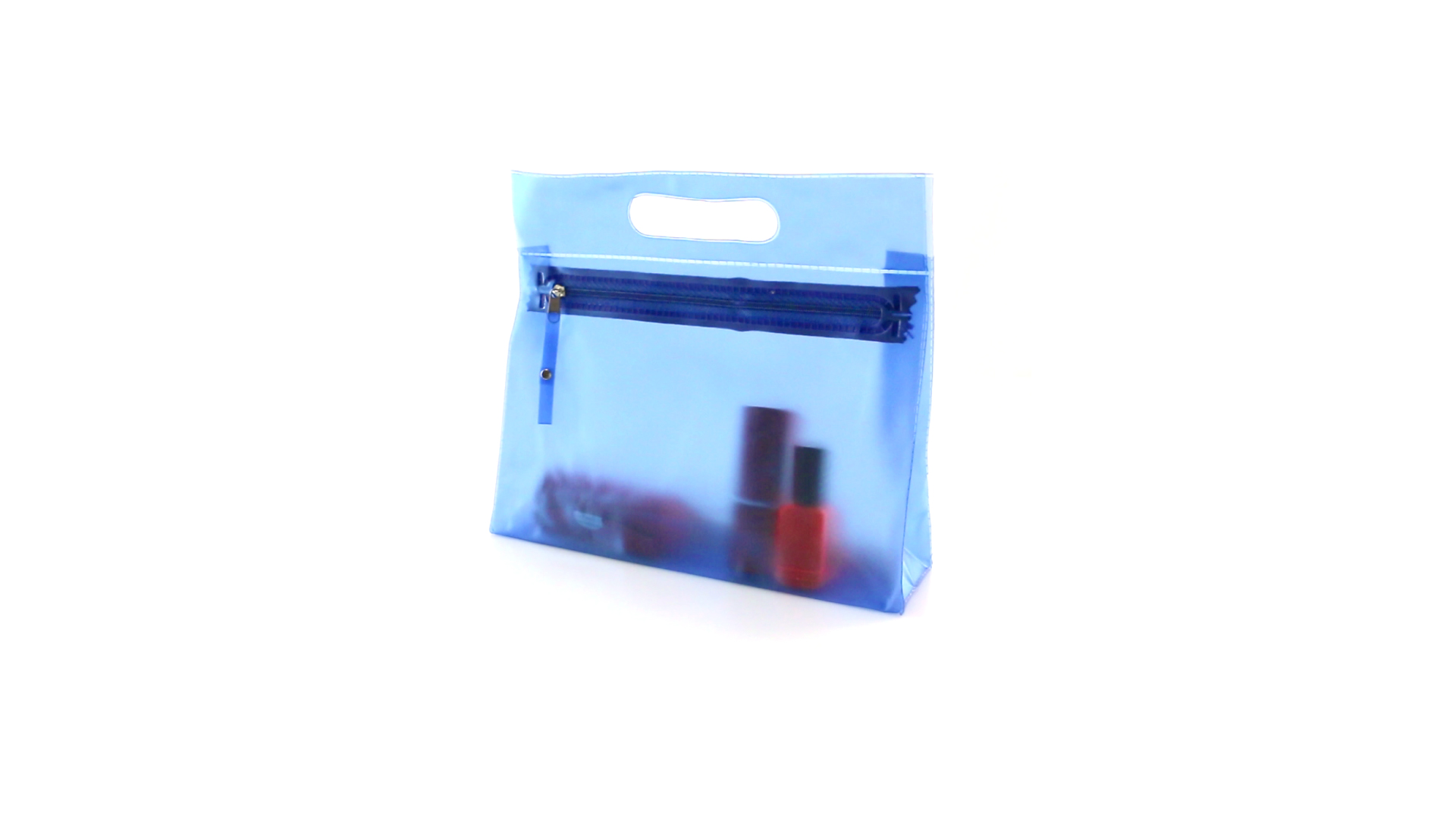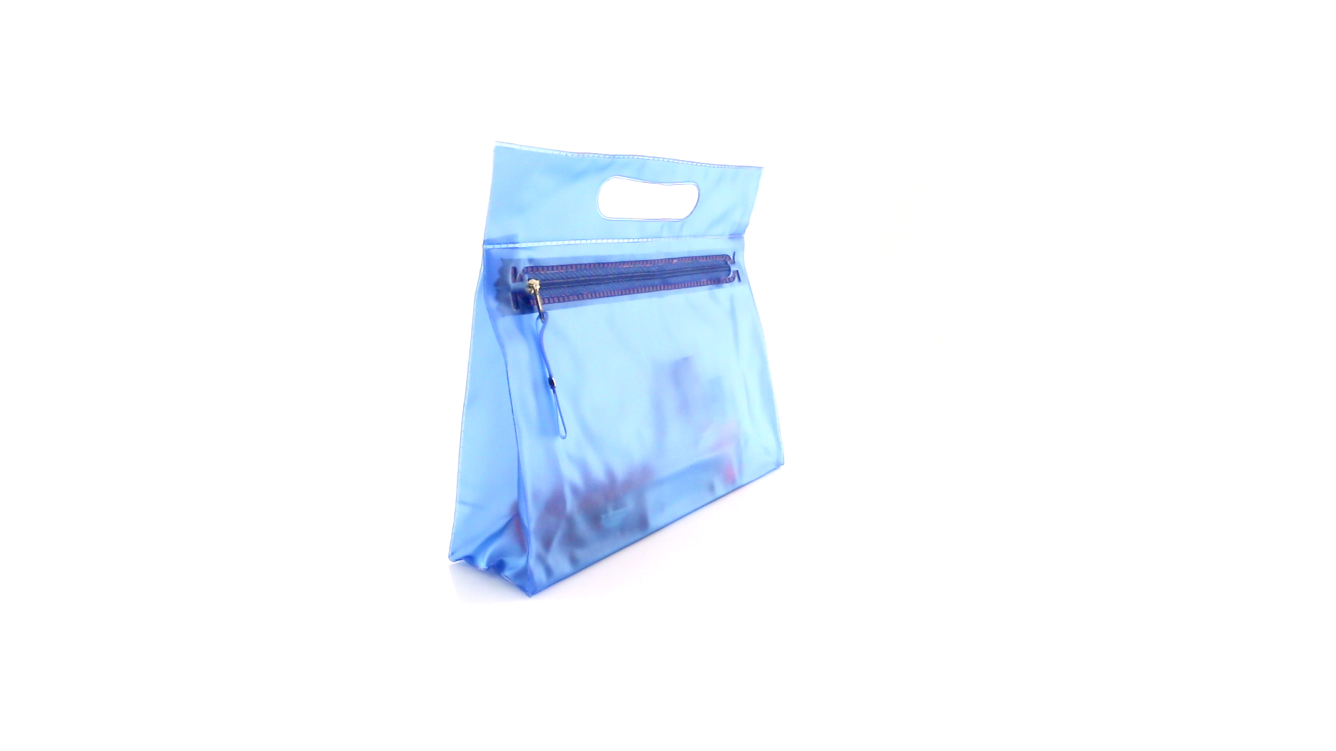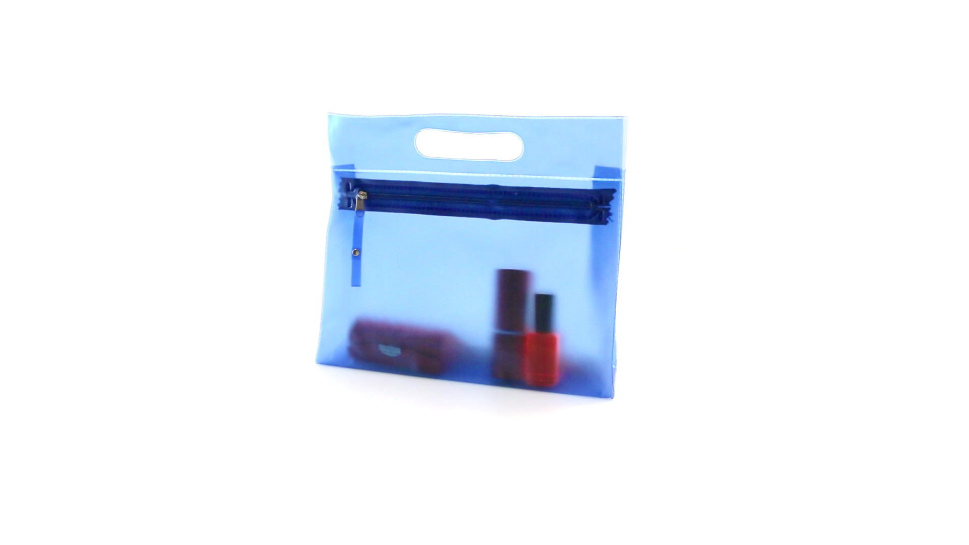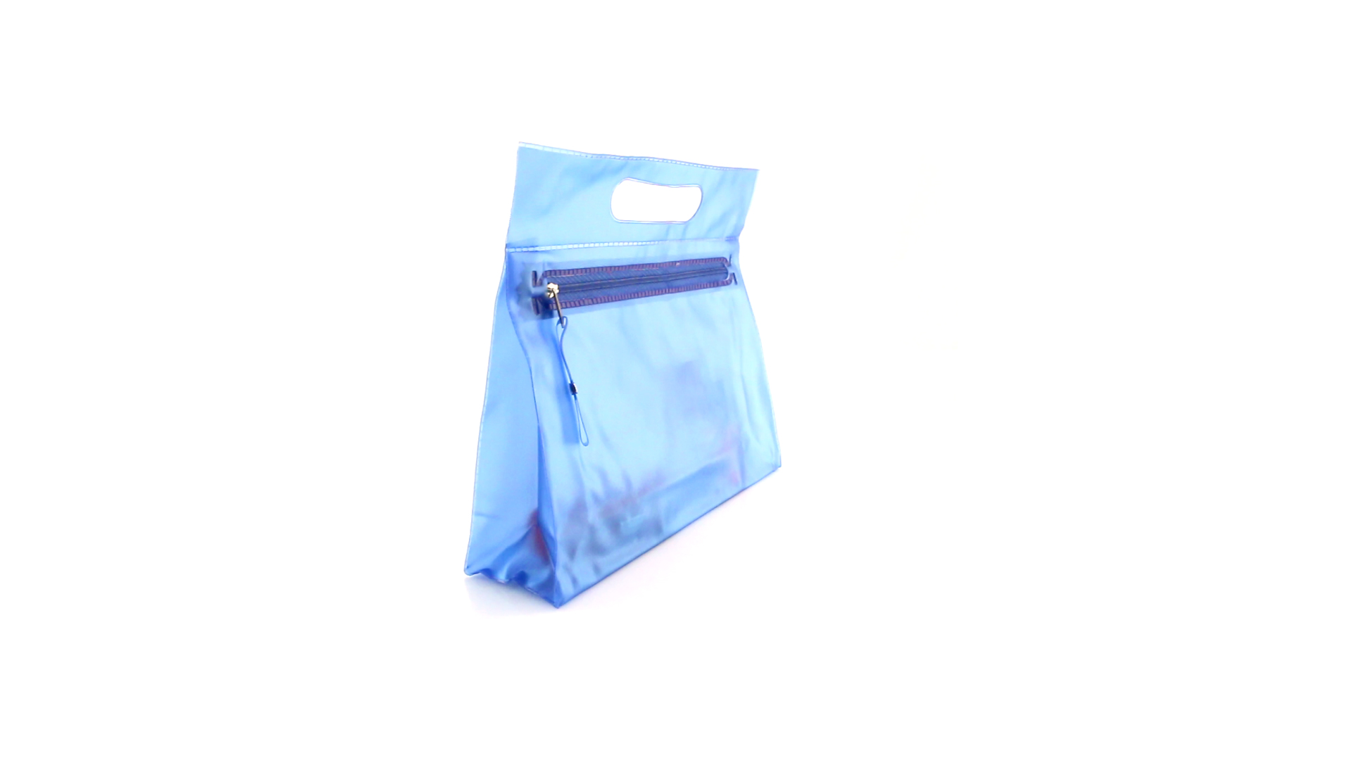 Vielseitig verwendbarer Kulturbeutel aus robustem, halbtransparentem PVC in verschiedenen Farben. Mit robustem, gestanztem Griff und farblich passendem Reissverschluss mit Zugband für einfaches Öffnen.