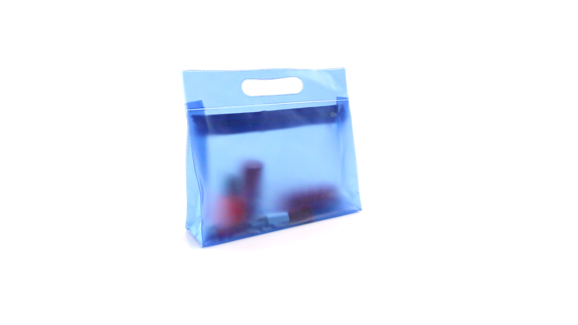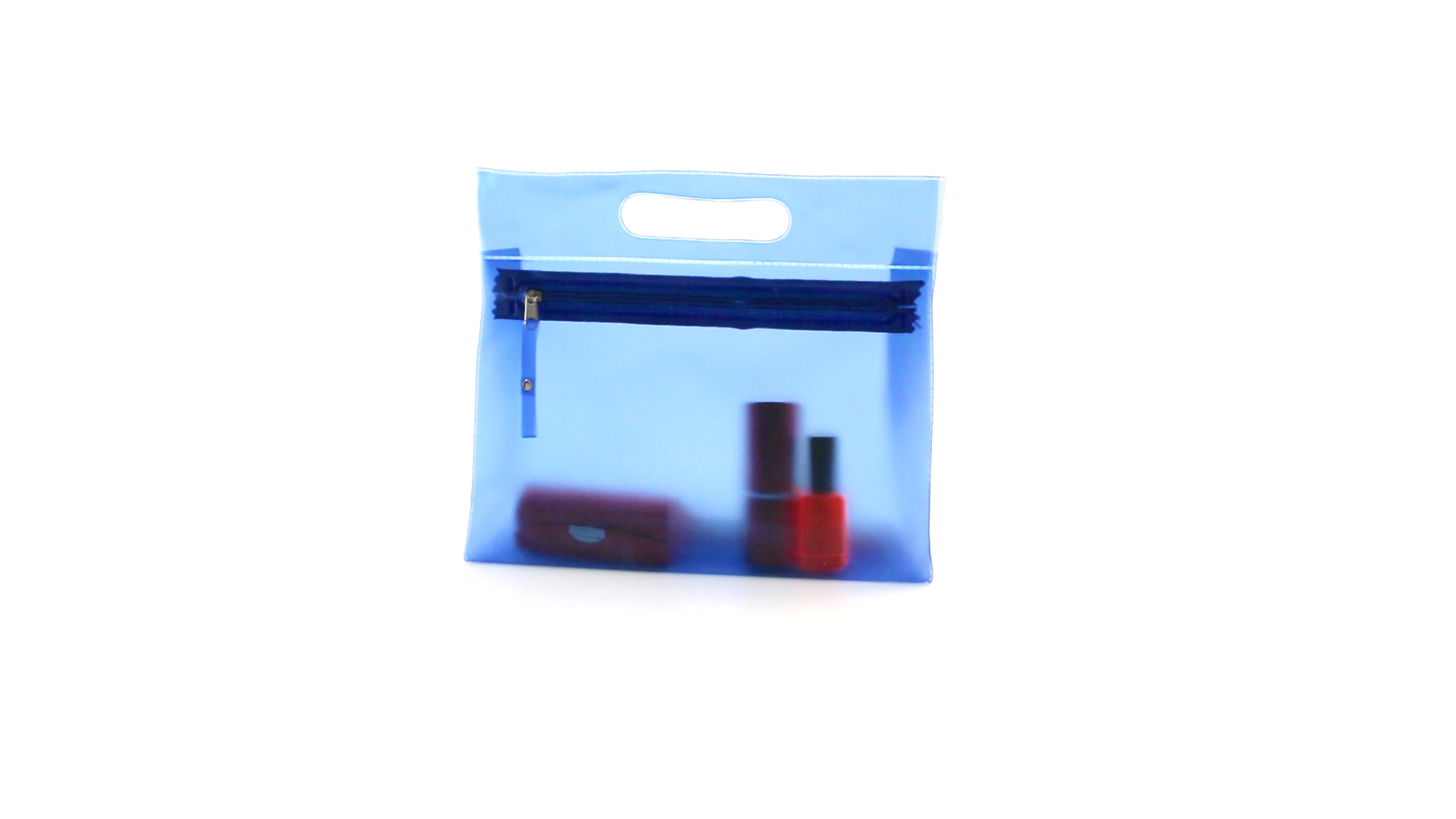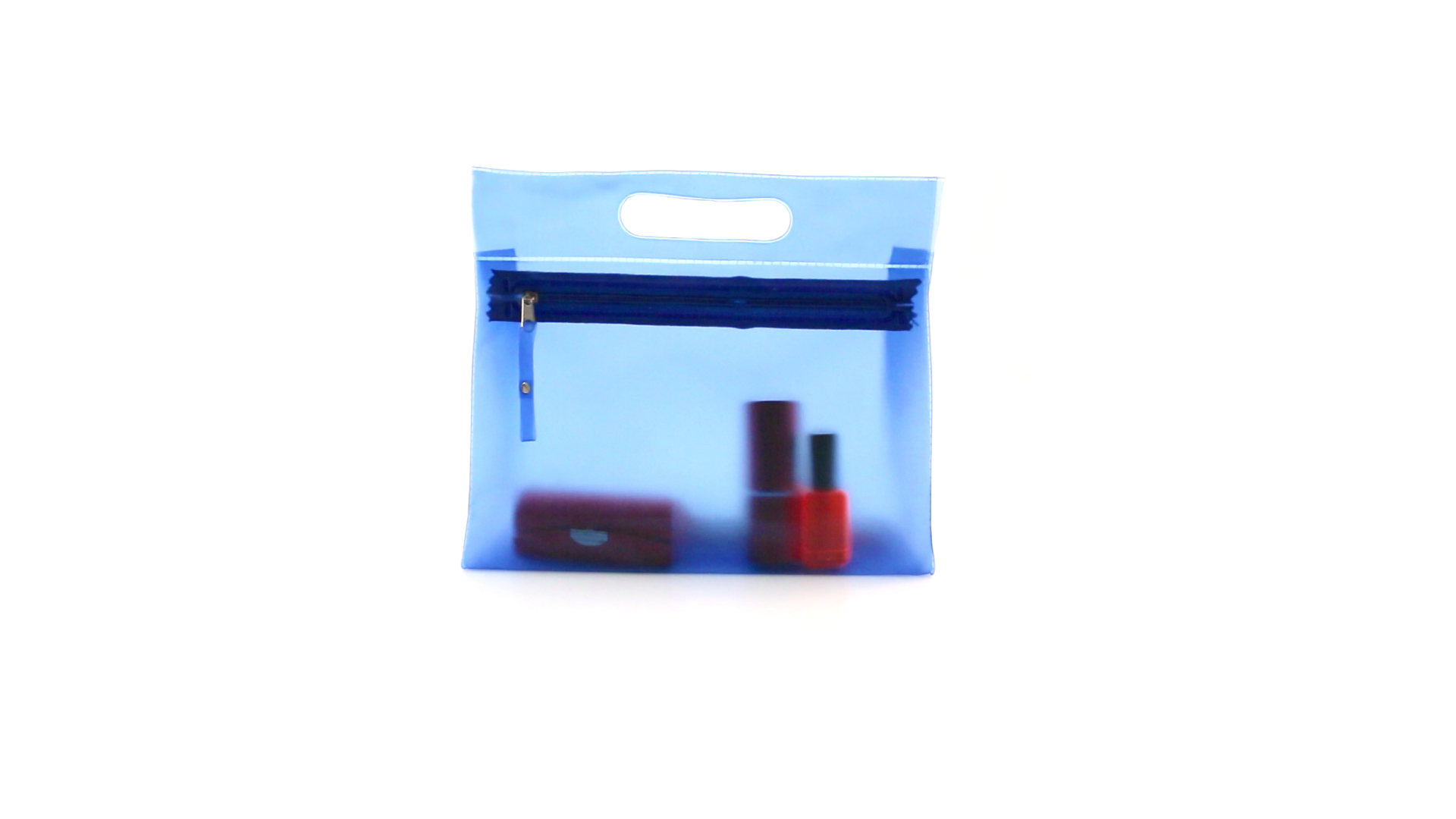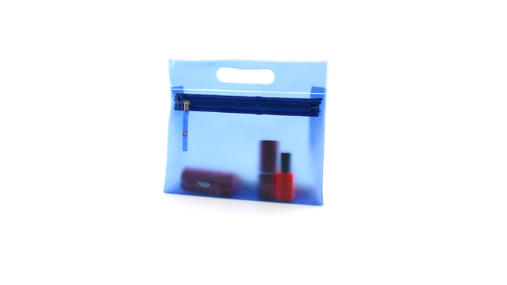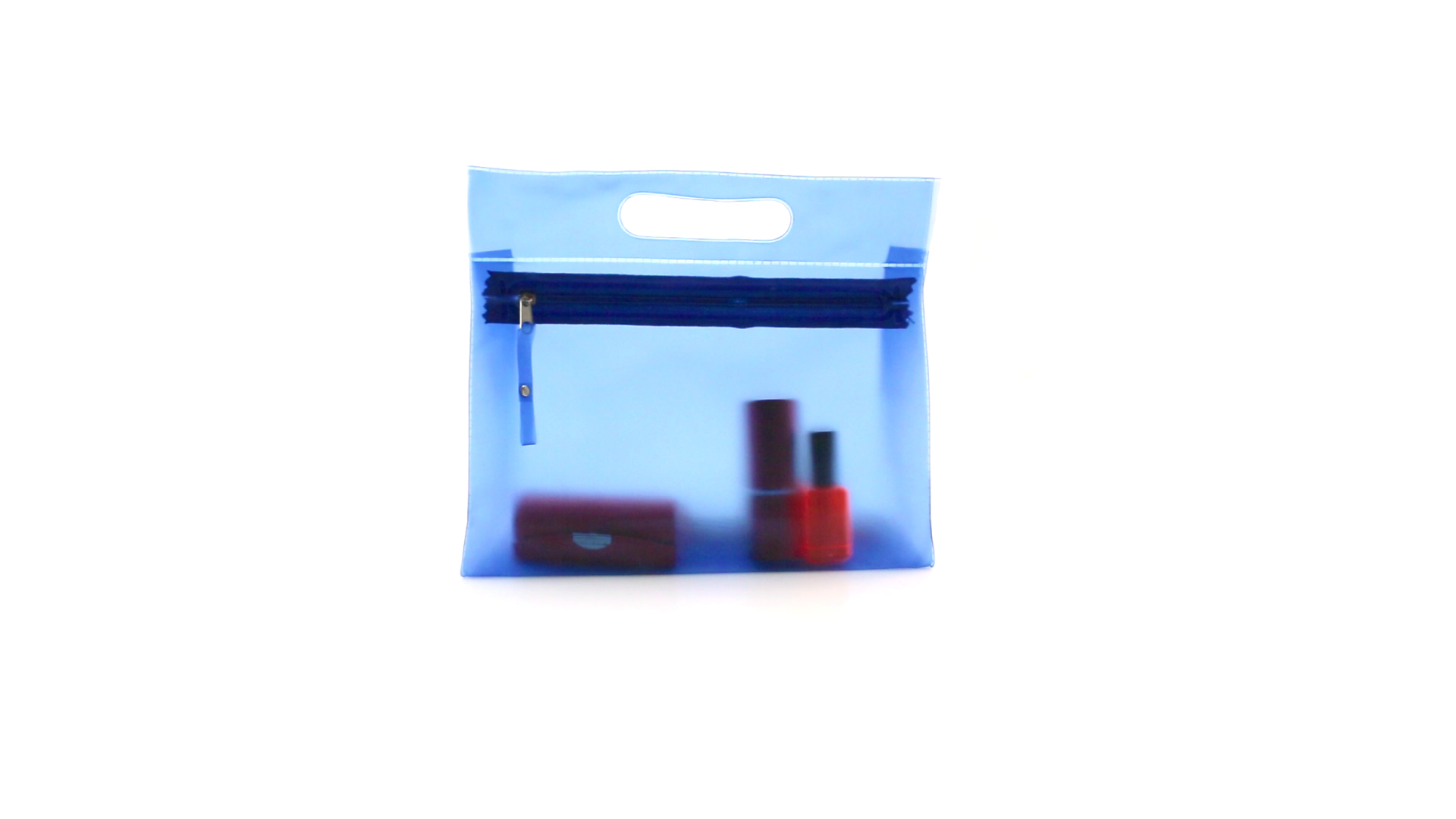 Vielseitig verwendbarer Kulturbeutel aus robustem, halbtransparentem PVC in verschiedenen Farben. Mit robustem, gestanztem Griff und farblich passendem Reissverschluss mit Zugband für einfaches Öffnen.