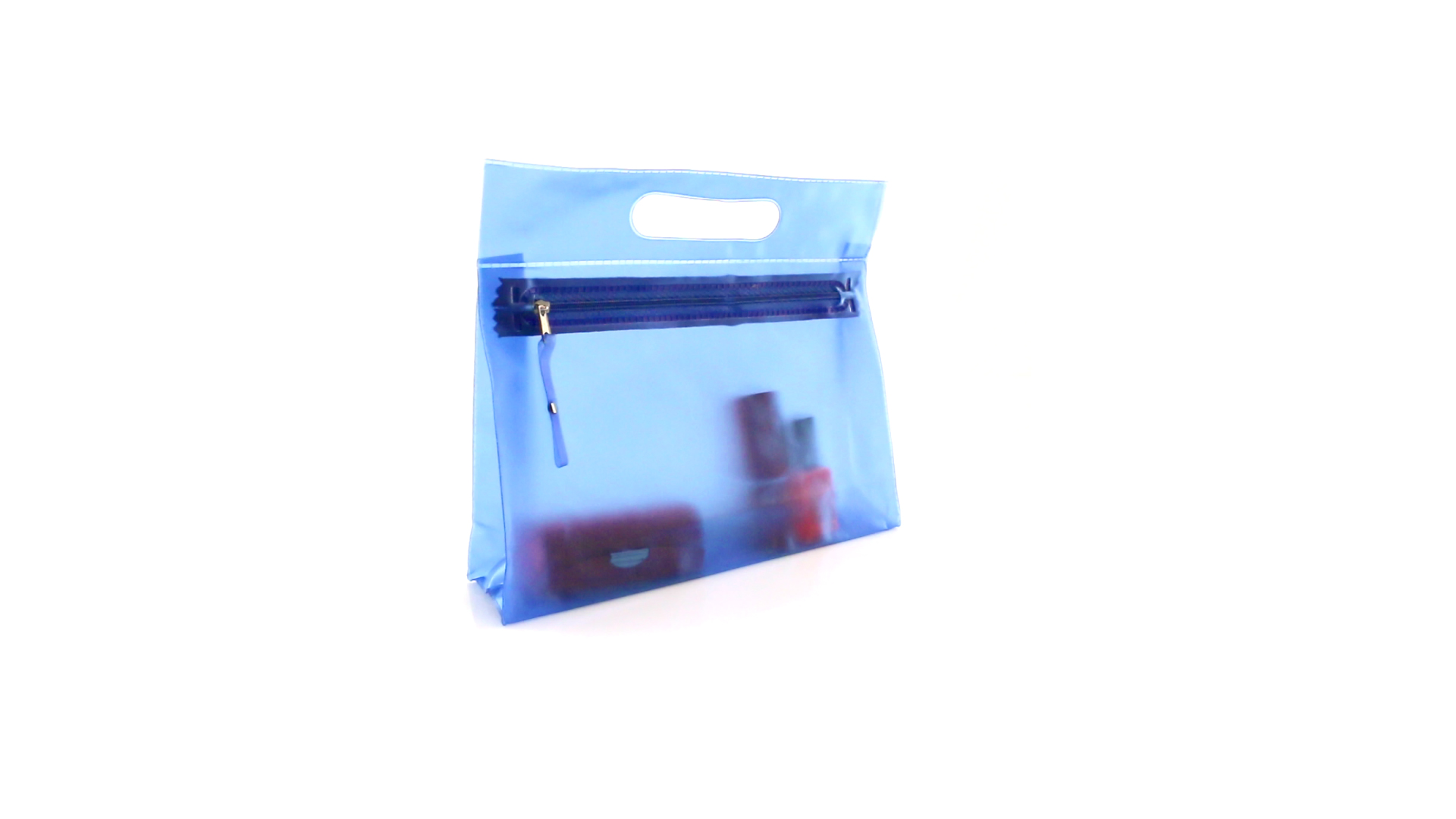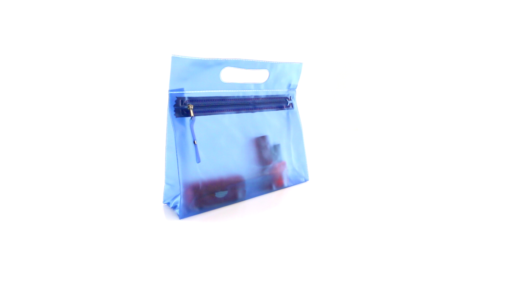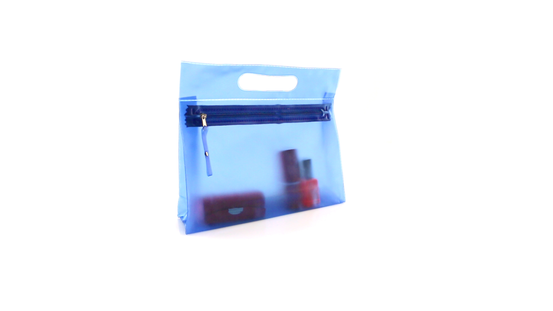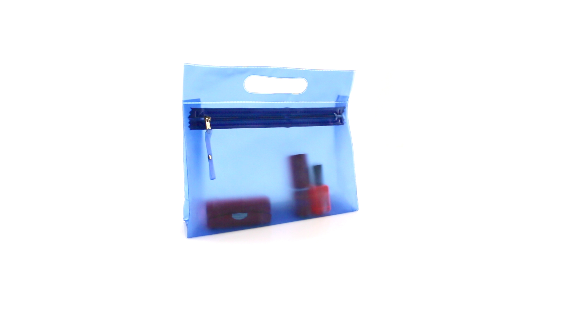 Vielseitig verwendbarer Kulturbeutel aus robustem, halbtransparentem PVC in verschiedenen Farben. Mit robustem, gestanztem Griff und farblich passendem Reissverschluss mit Zugband für einfaches Öffnen.