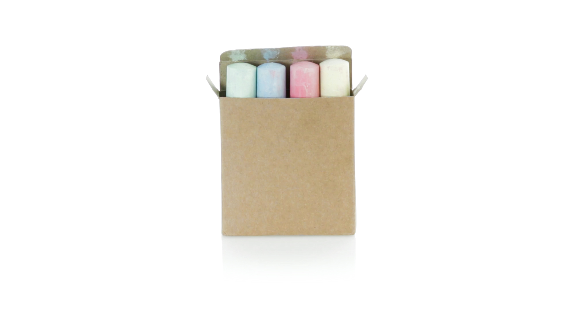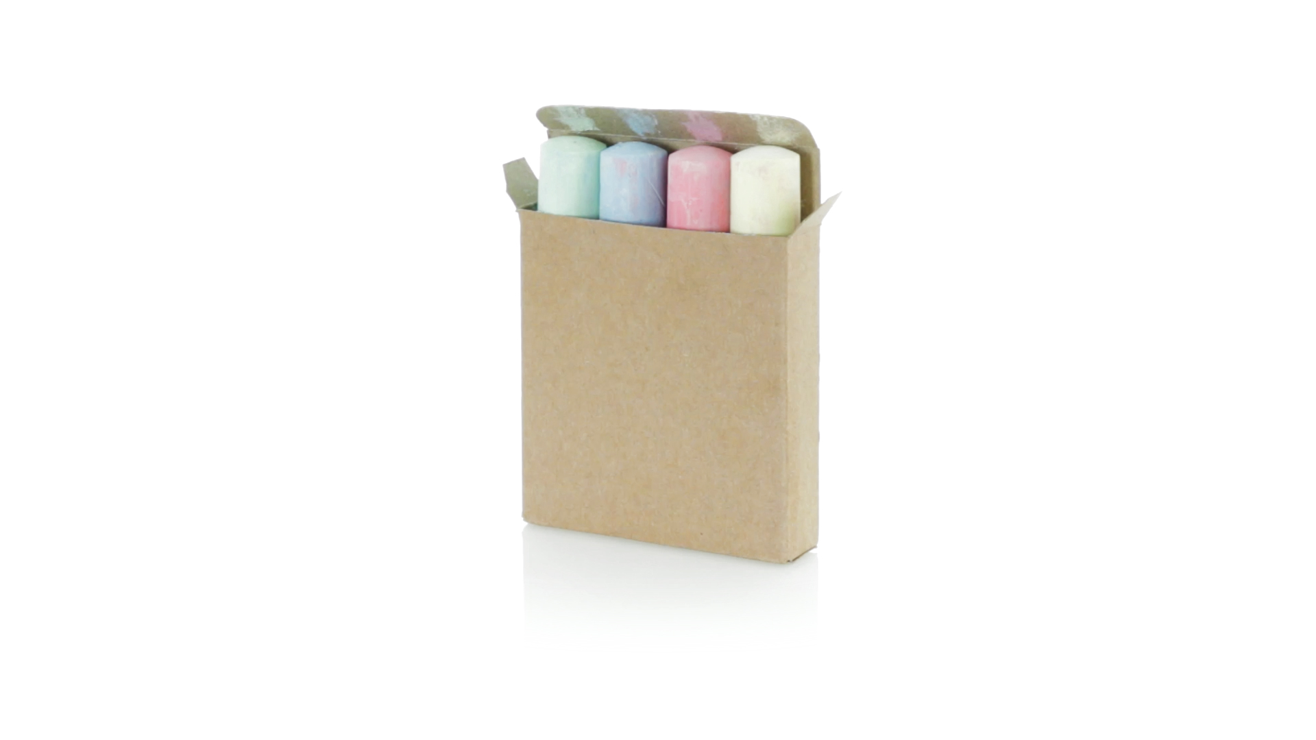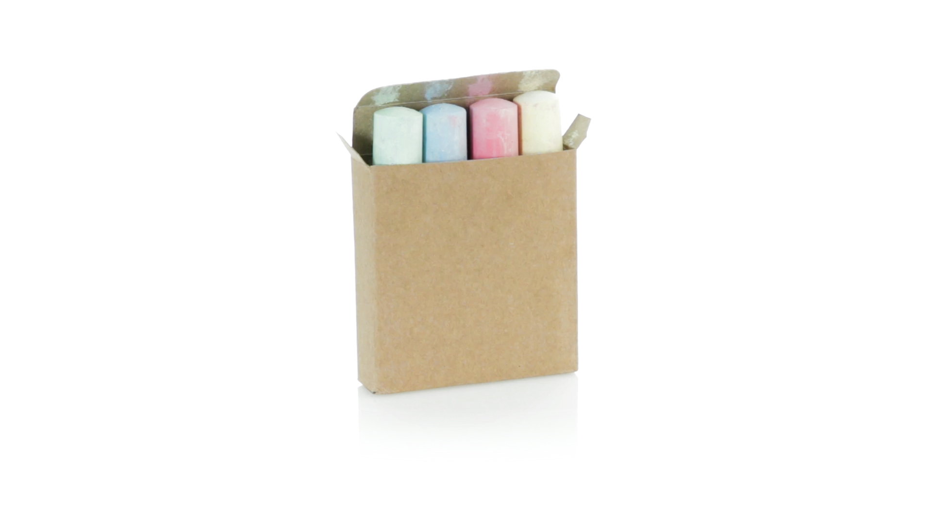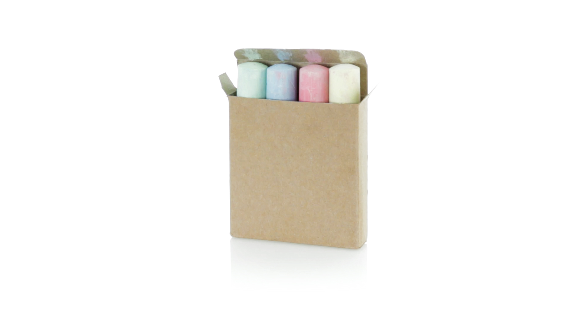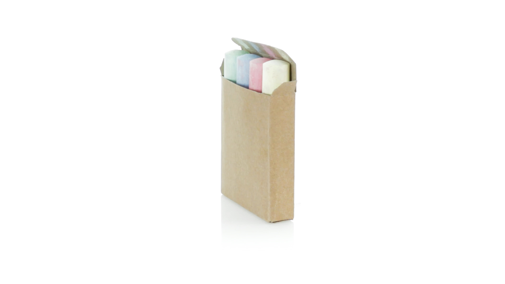 Box aus recyceltem Karton mit Kreide im XL-Format. Mit 4 Kreiden in Blau, Rot, Grün und Gelb.