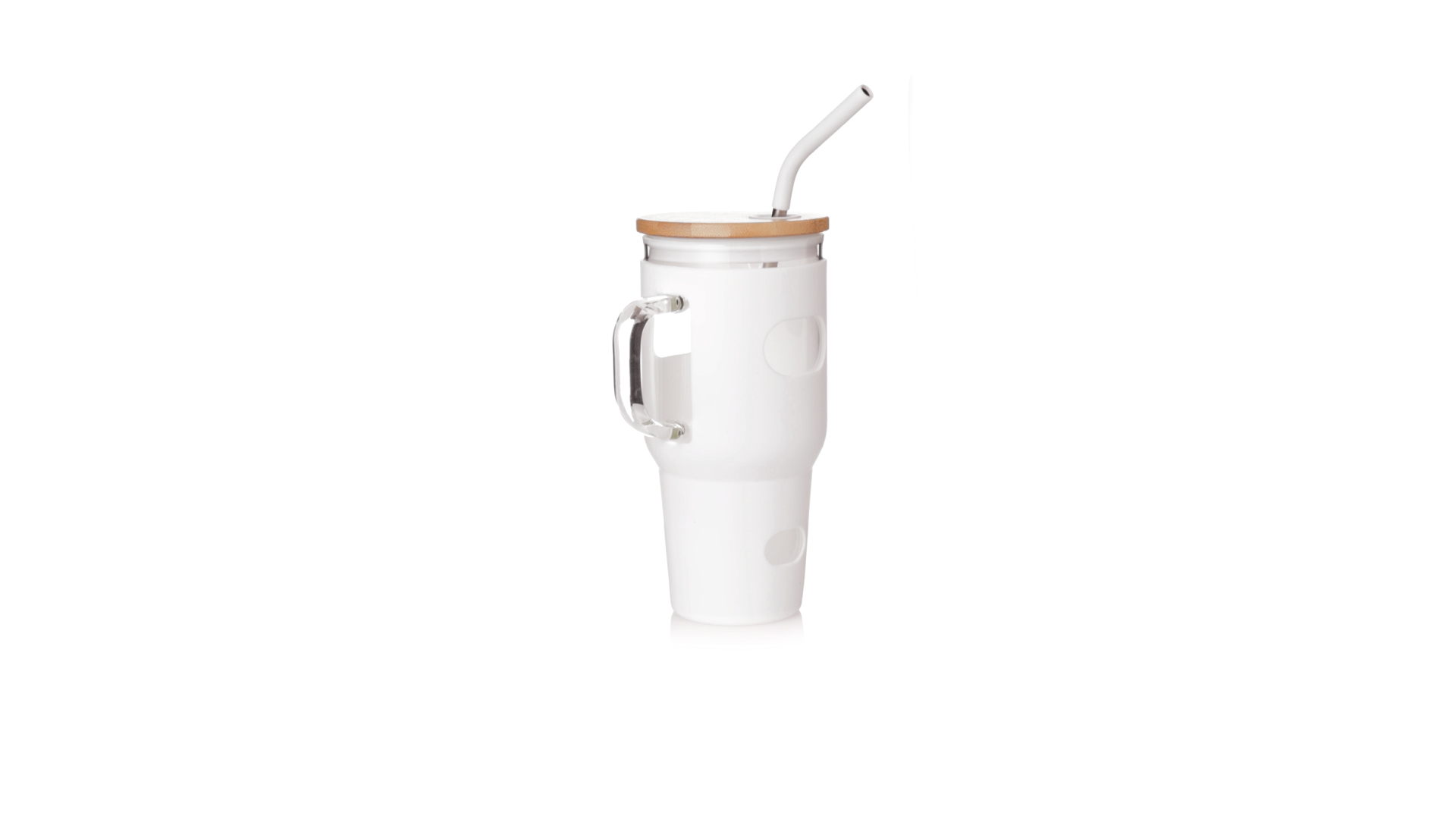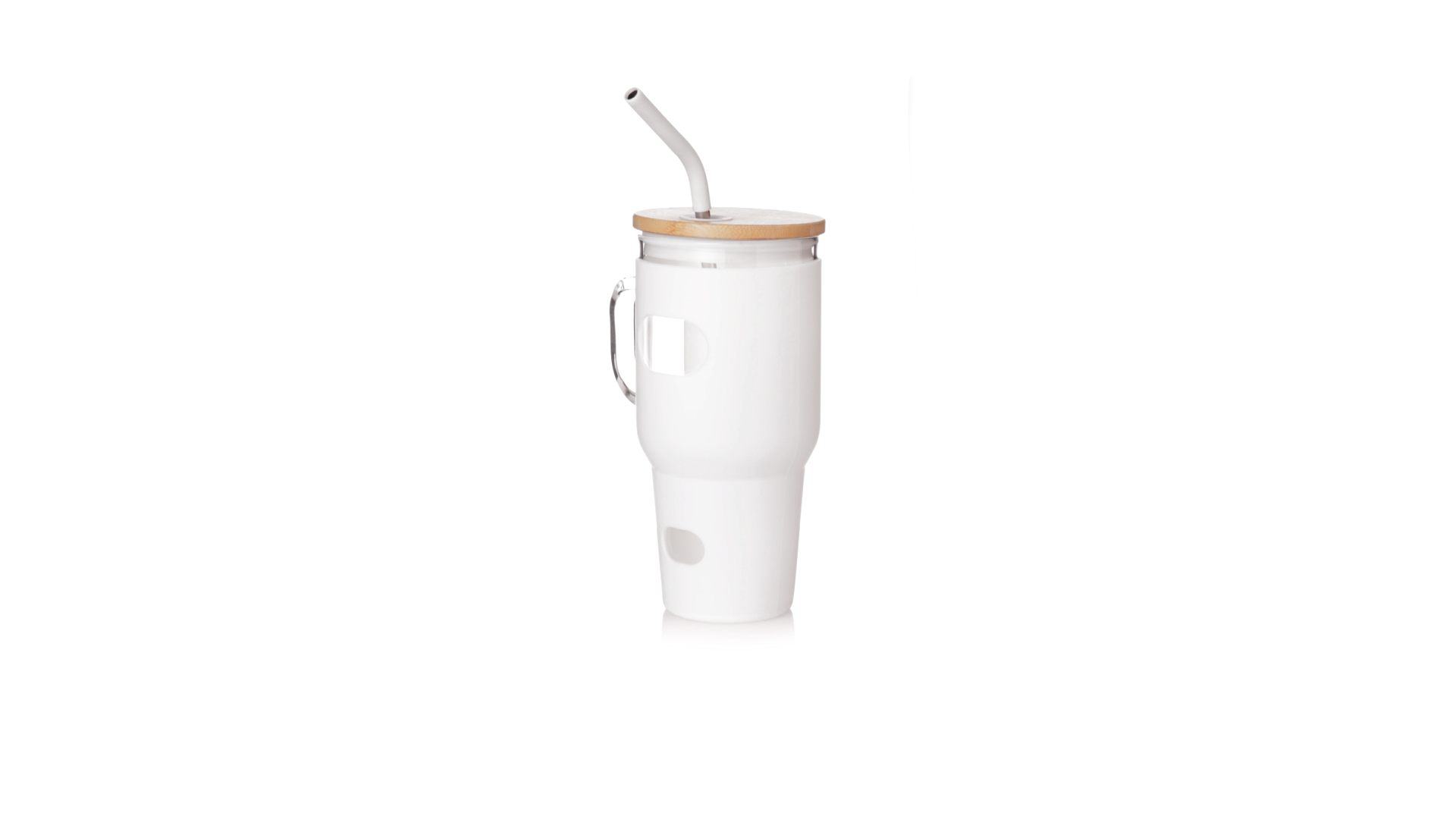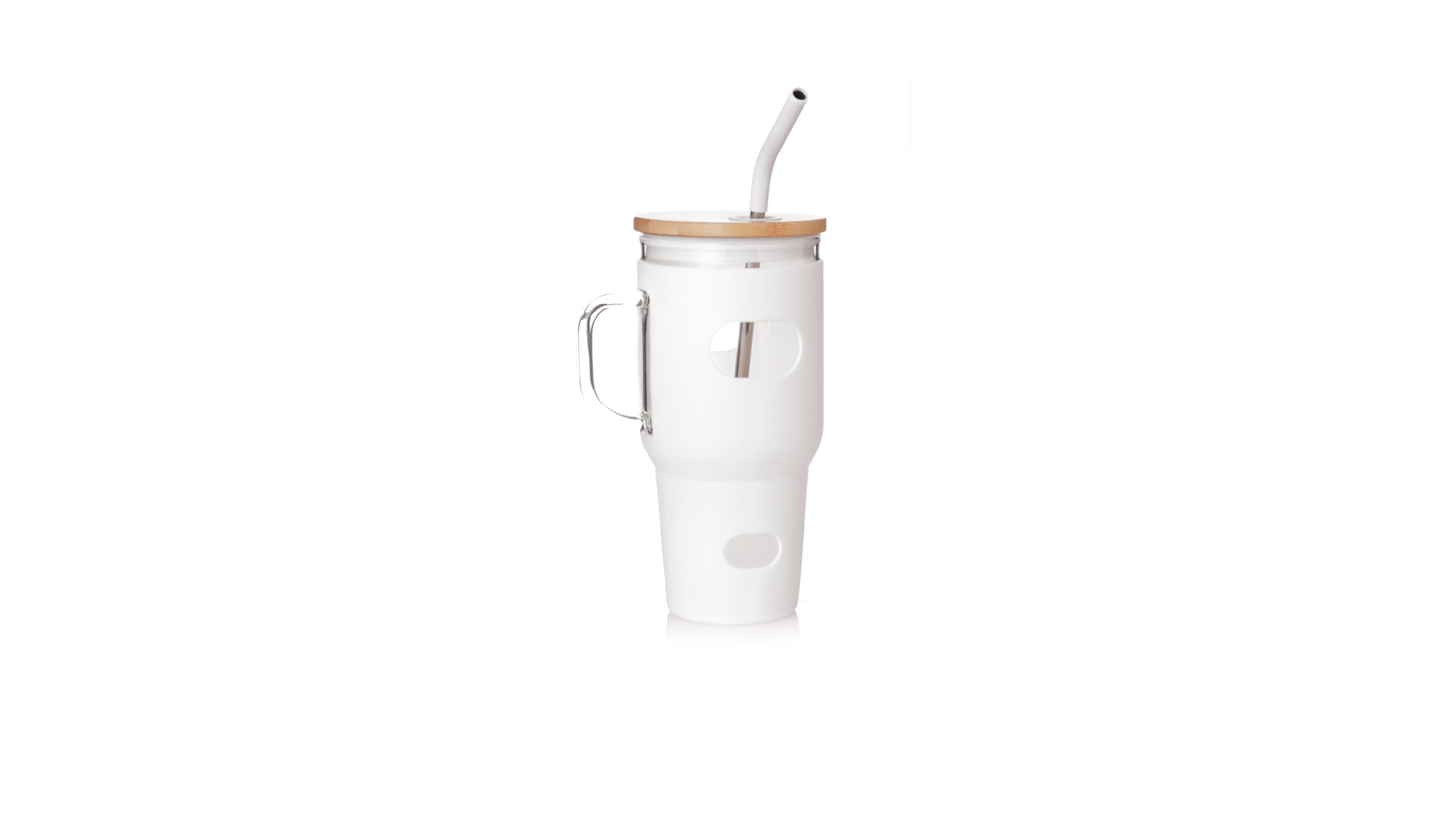 Grosses Fassungsvermögen (1,1 l) mit einem Korpus aus widerstandsfähigem Glas, das eine aussergewöhnliche Widerstandsfähigkeit und Langlebigkeit bietet, wodurch die Lebensdauer verlängert wird und das Gefäss unzählige Male wiederverwendet werden kann. Mit Griff zum einfachen Tragen und weicher Silikonschutzhülle. Schnappdeckel aus Bambus mit Strohhalmloch und wiederverwendbarer Strohhalm aus rostfreiem Stahl mit silikonbeschichteter Spitze für bequemen und sicheren Trinkgenuss.Präsentiert in einer individuellen Kraft-Design-Box.