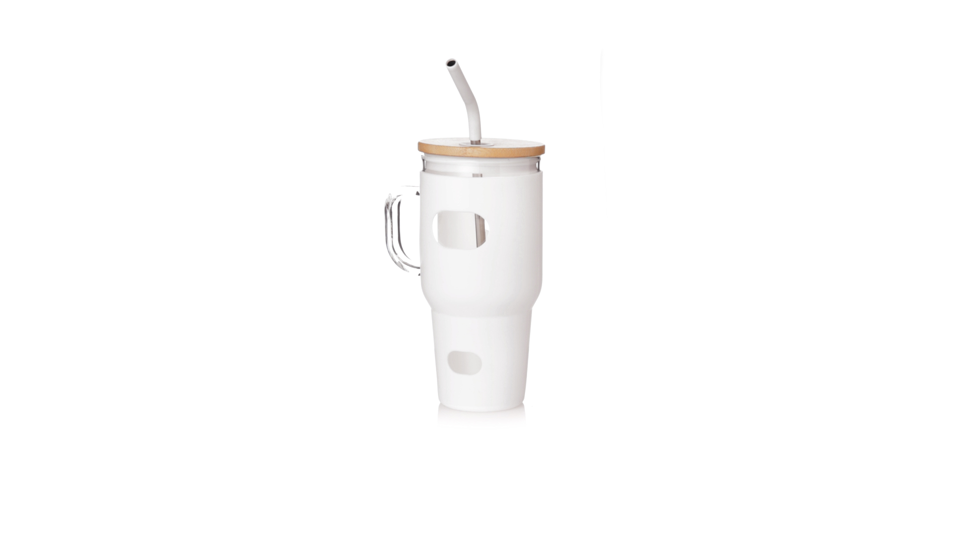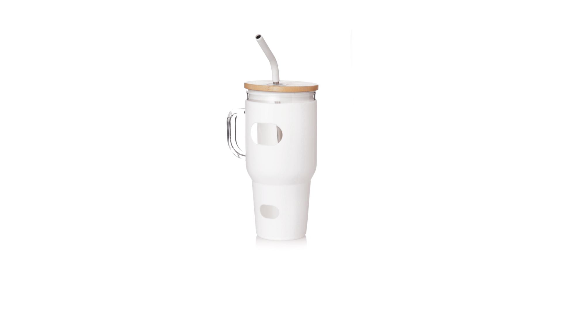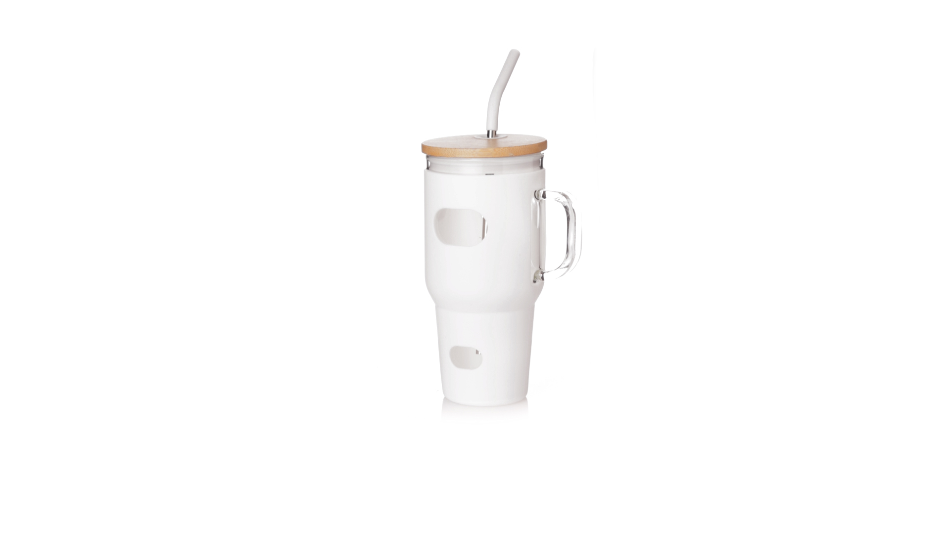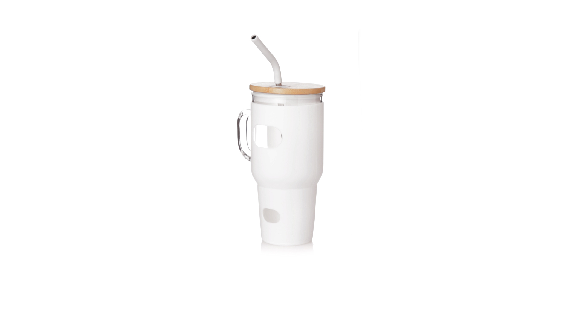 Grosses Fassungsvermögen (1,1 l) mit einem Korpus aus widerstandsfähigem Glas, das eine aussergewöhnliche Widerstandsfähigkeit und Langlebigkeit bietet, wodurch die Lebensdauer verlängert wird und das Gefäss unzählige Male wiederverwendet werden kann. Mit Griff zum einfachen Tragen und weicher Silikonschutzhülle. Schnappdeckel aus Bambus mit Strohhalmloch und wiederverwendbarer Strohhalm aus rostfreiem Stahl mit silikonbeschichteter Spitze für bequemen und sicheren Trinkgenuss.Präsentiert in einer individuellen Kraft-Design-Box.