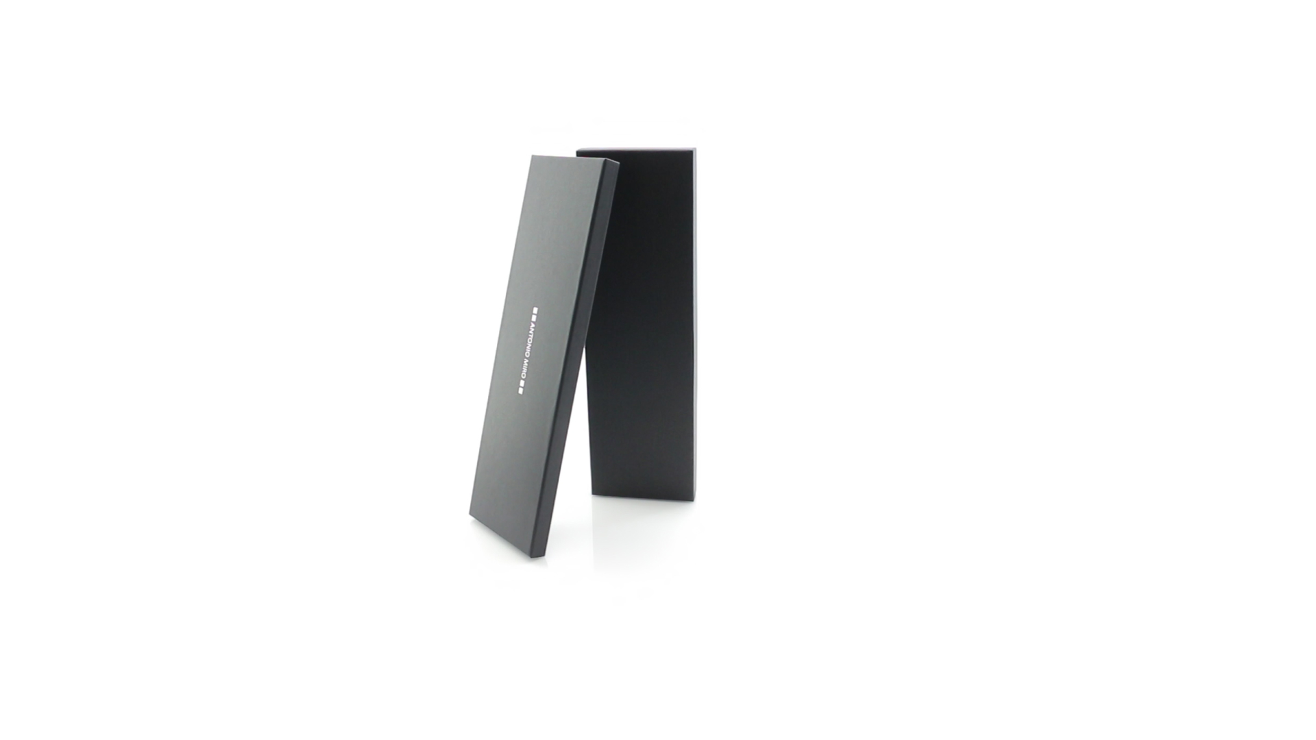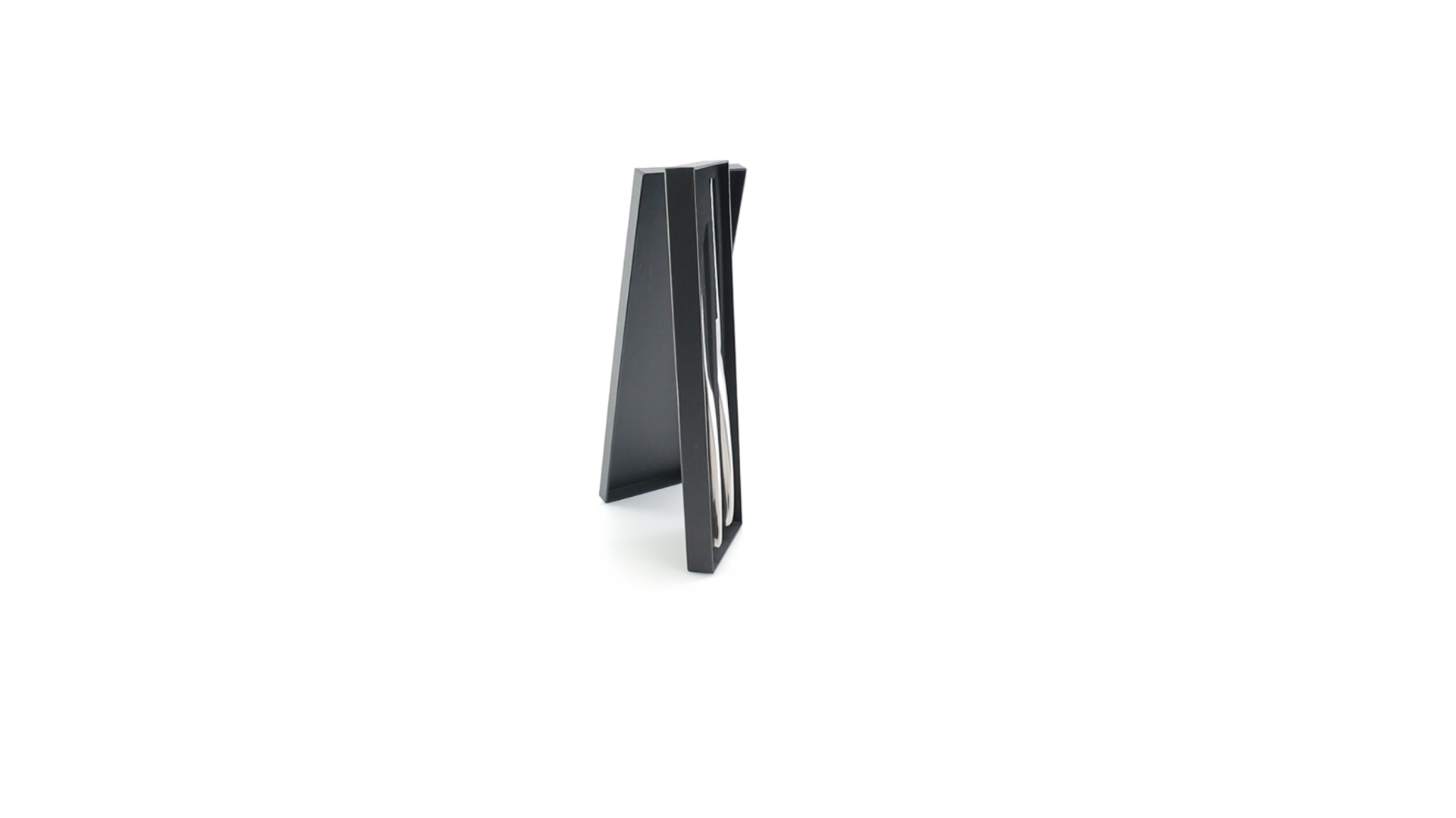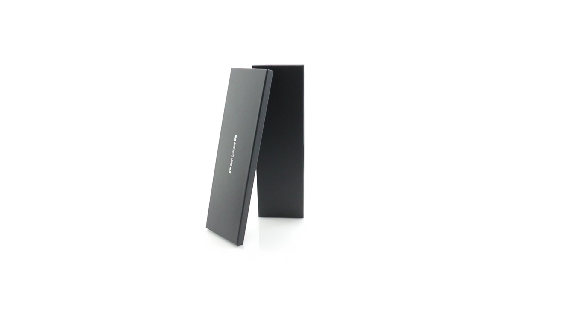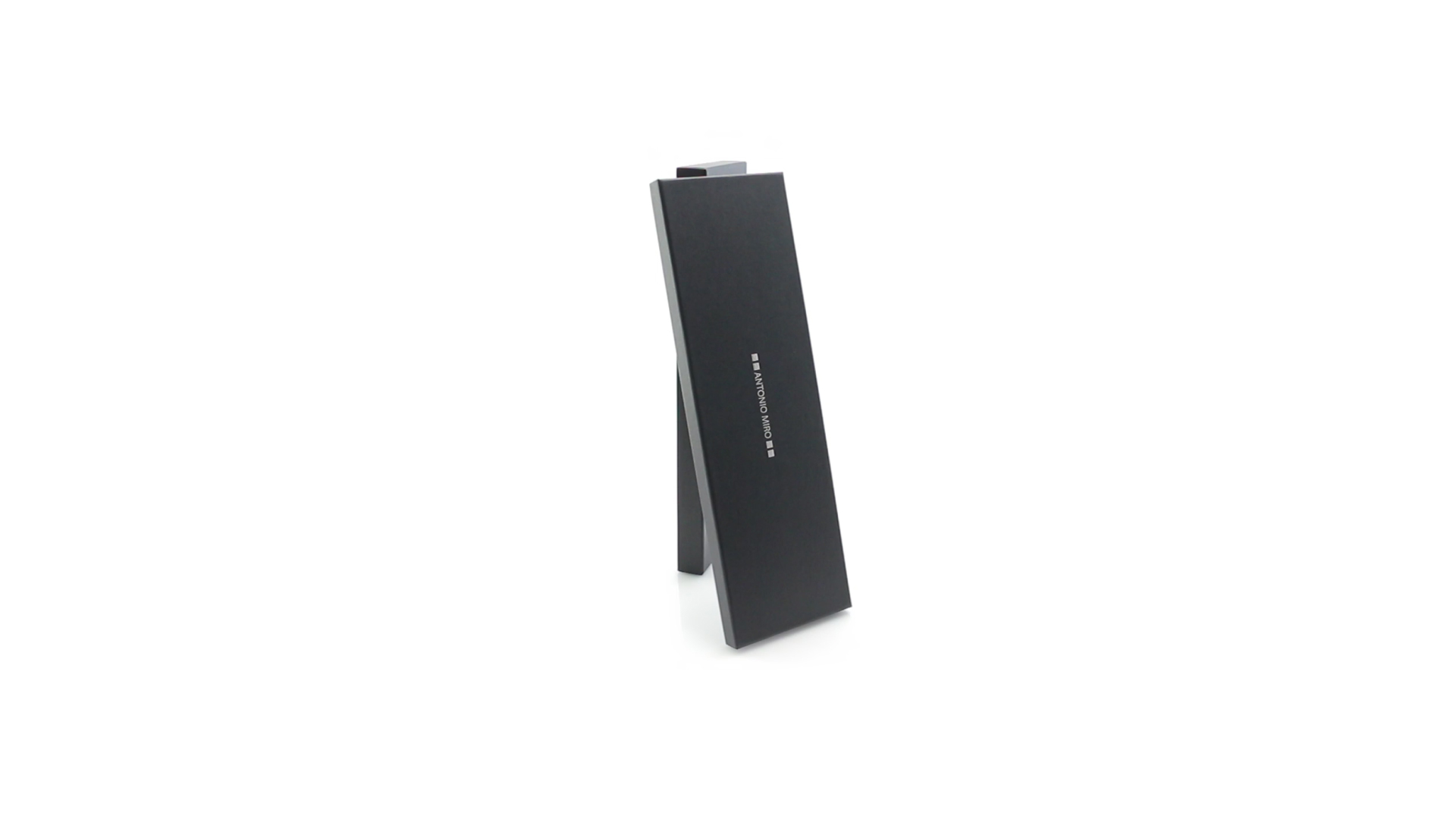 Küchenset von Antonio Miró aus Edelstahlmesser und -tranchiergabel. Präsentiert in einer individuellen Schachtel mit dem Markenlogo und weichem Schaumstoff mit Stanzung im Inneren.