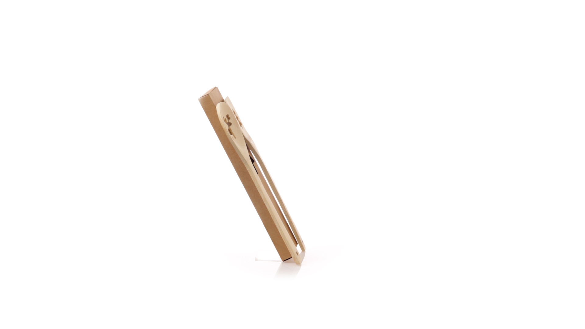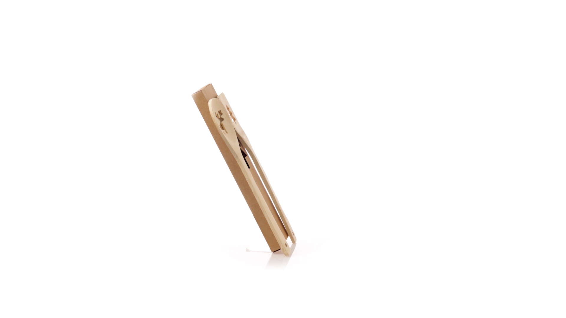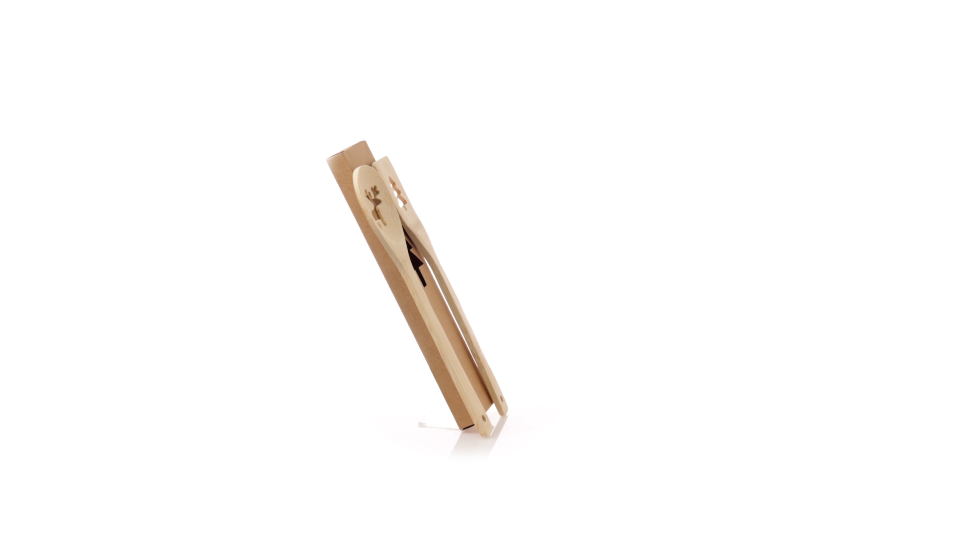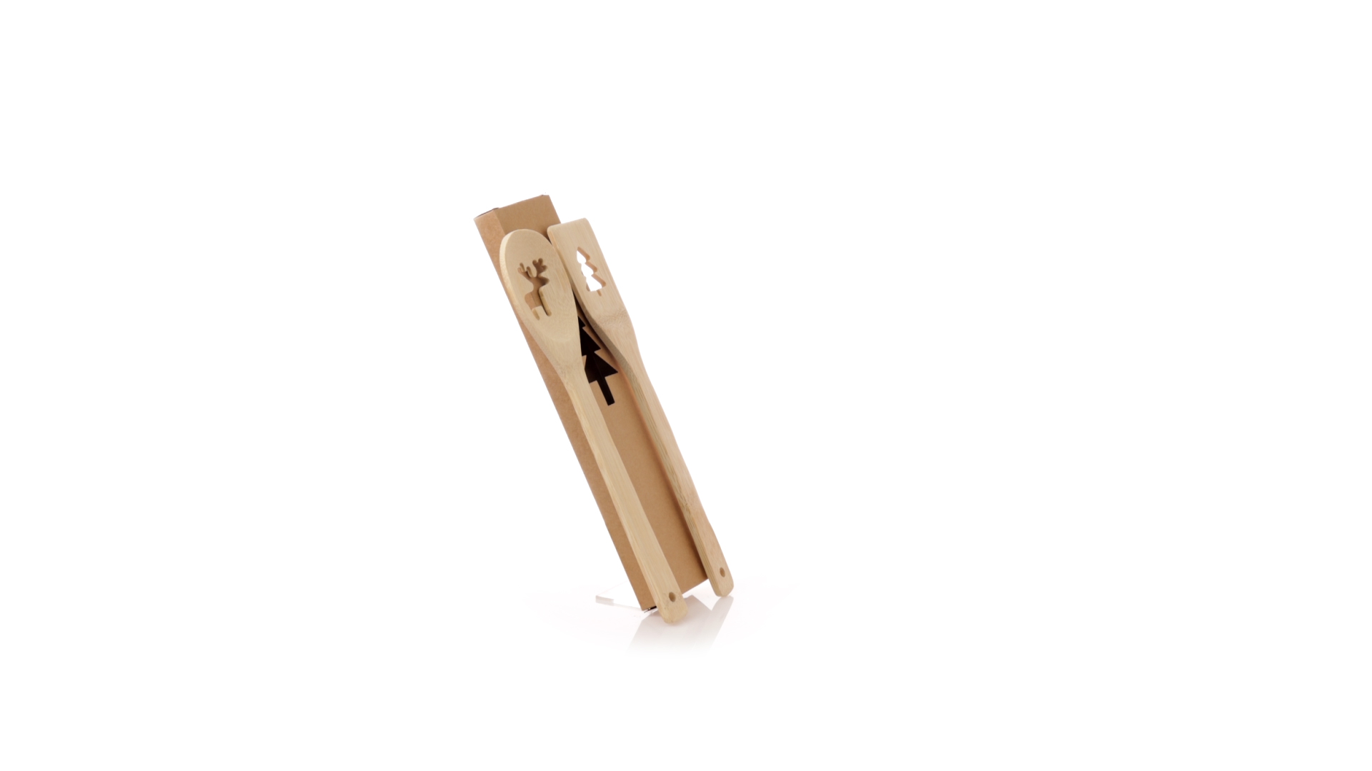Originelles Küchenset mit ausgestanzten Weihnachtsmotiven. Inklusive Löffel und Paddel aus poliertem Bambus. Präsentiert in einer individuellen Kraft-Design-Box.