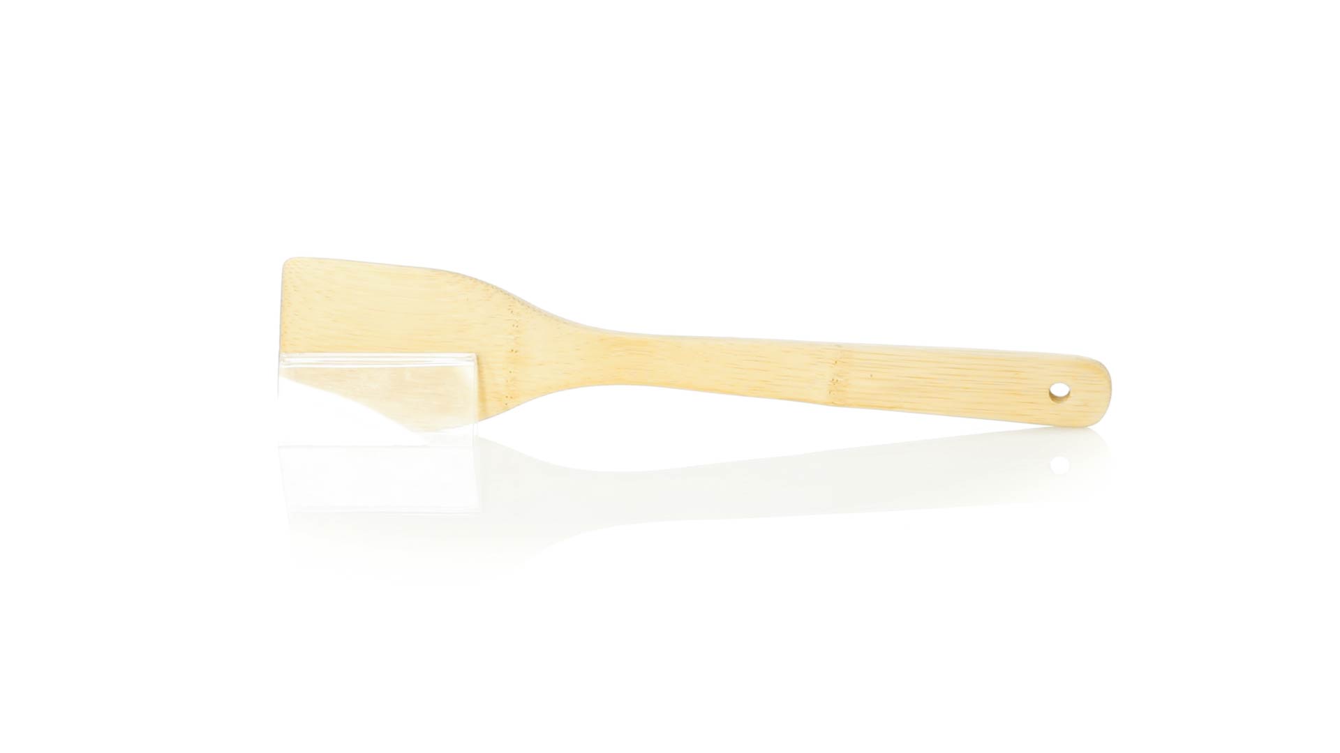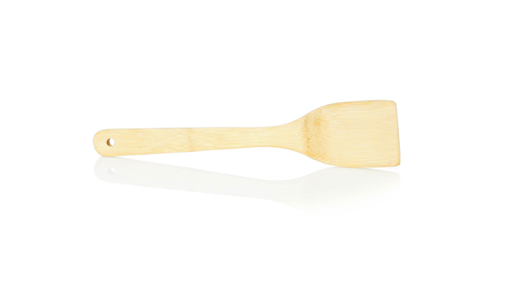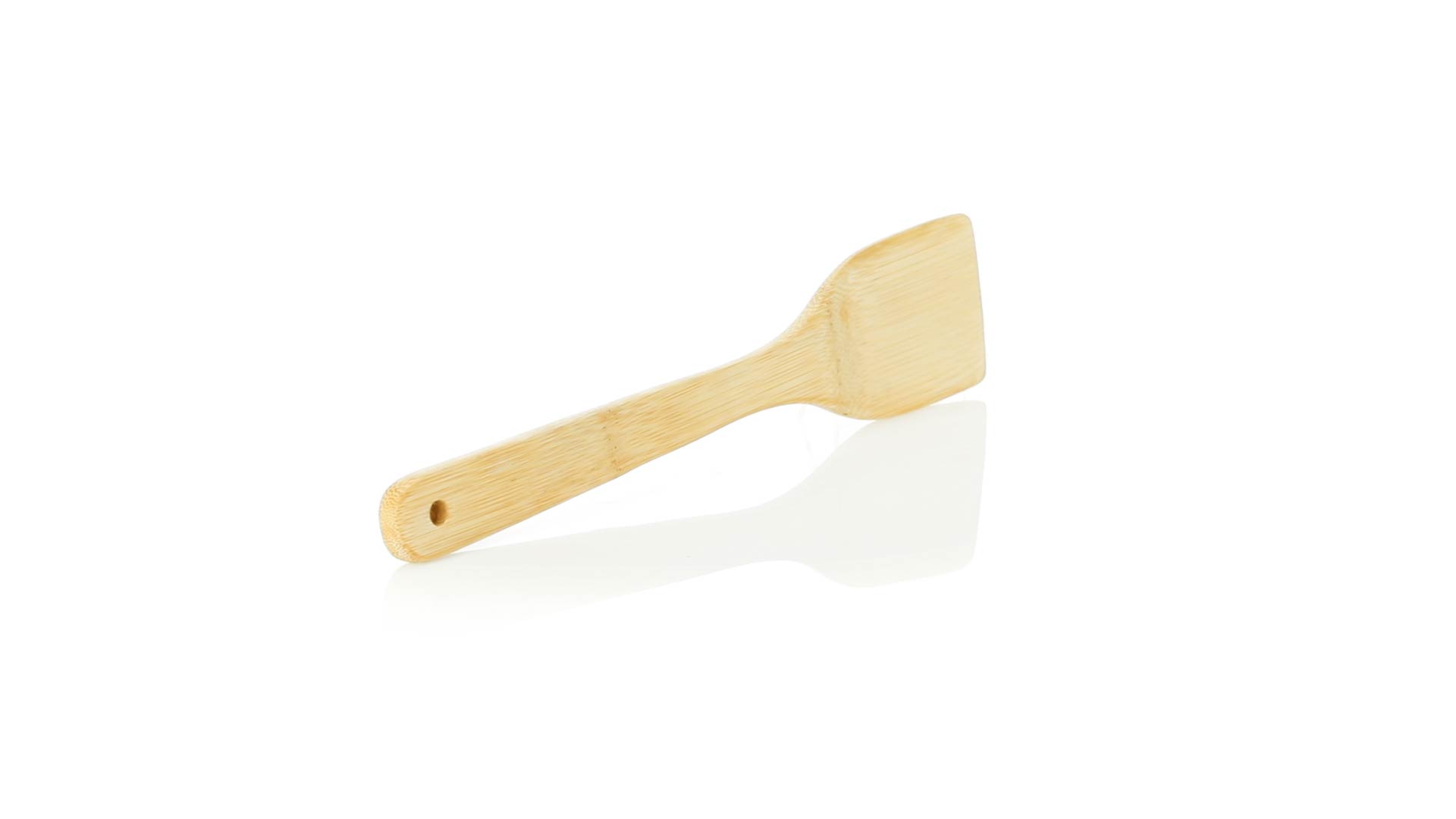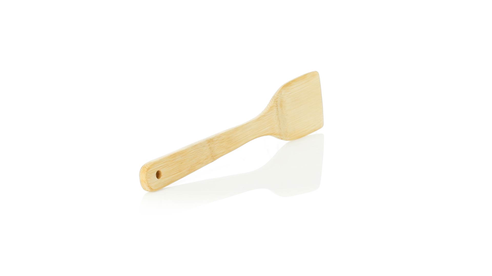 Bambus Küchenspachtel aus der Naturlinie, mit gestanztem Griff zum Aufhängen.
