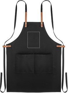 Küchenschürze mit verstellbarem Nackengurt und 2 Fronttaschen aus 340 g/m² Organic Cotton/Leinen. Lieferung in individuellem Karton.