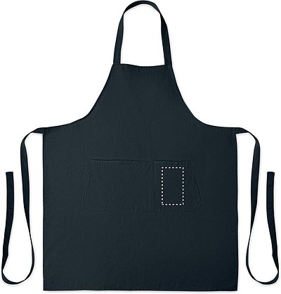 Verstellbare Küchenschürze mit 1 grossen Fronttasche mit 2 Fächern. 240 g/m² Organic Cotton. Per Knopf verstellbares Nackenband. Dieses Produkt ist nach OEKO-TEX® STANDARD 100 zertifiziert.