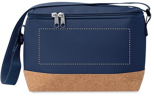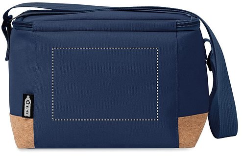 Kühltasche aus RPET 600D. Boden abgesetzt in Kork. Isoliermaterial: PEVA mit 2mm PE-Schaumstoff. Füllmenge: 5L.