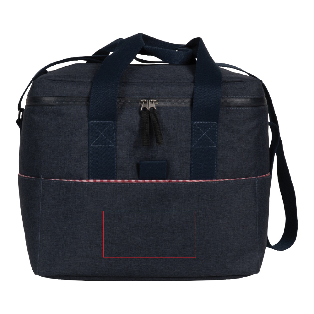 Stylische Kühltasche aus R-PET-Material mit einer melierten Oberfläche. Diese isolierte Kühltasche hält Ihre Speisen und Getränke schön kühl auf dem Weg zum Picknick. Das glatte, karierte Innenfutter verleiht der Tasche ein ansprechendes Aussehen und ist leicht zu reinigen. Der weiche und verstellbare Schultergurt erhöht den Tragekomfort.