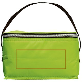 Polyester-Kühltasche mit Griff für den Transport. Kompakt und geeignet für sechs Dosen (330ml), mit einem Reissverschluss zum Verschliessen der Tasche. Eine perfekte Kühltasche für einen Sommertag.