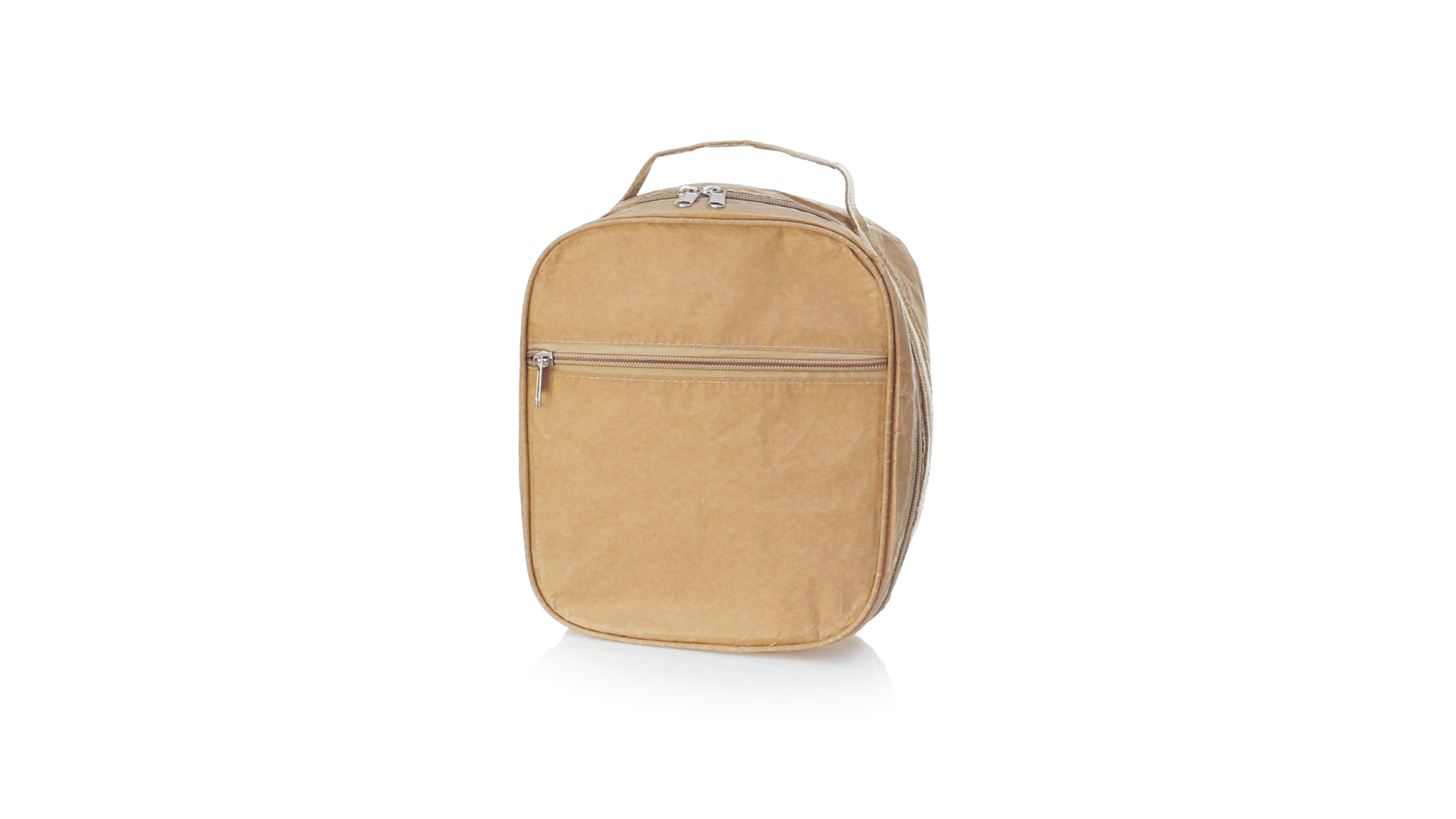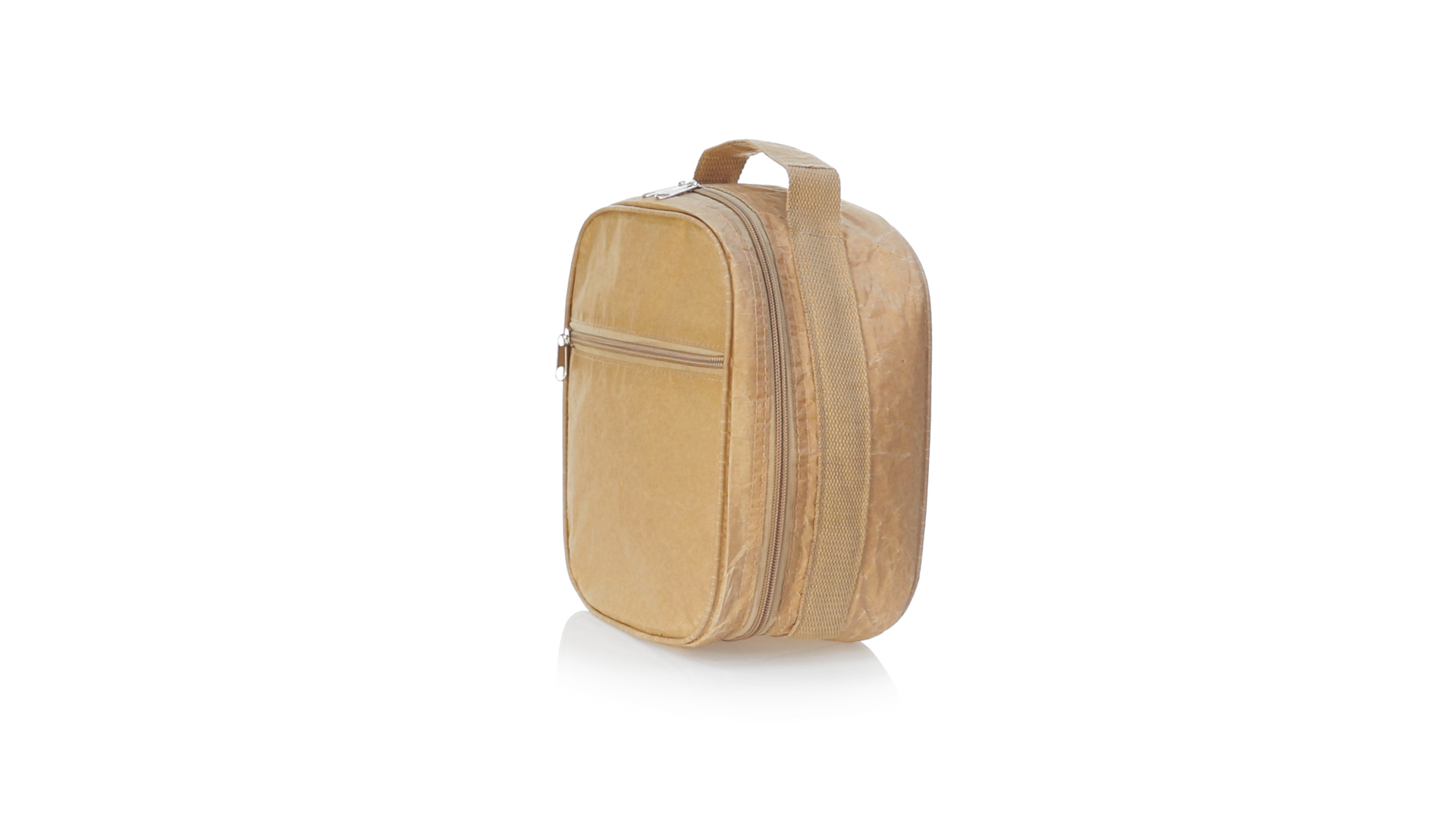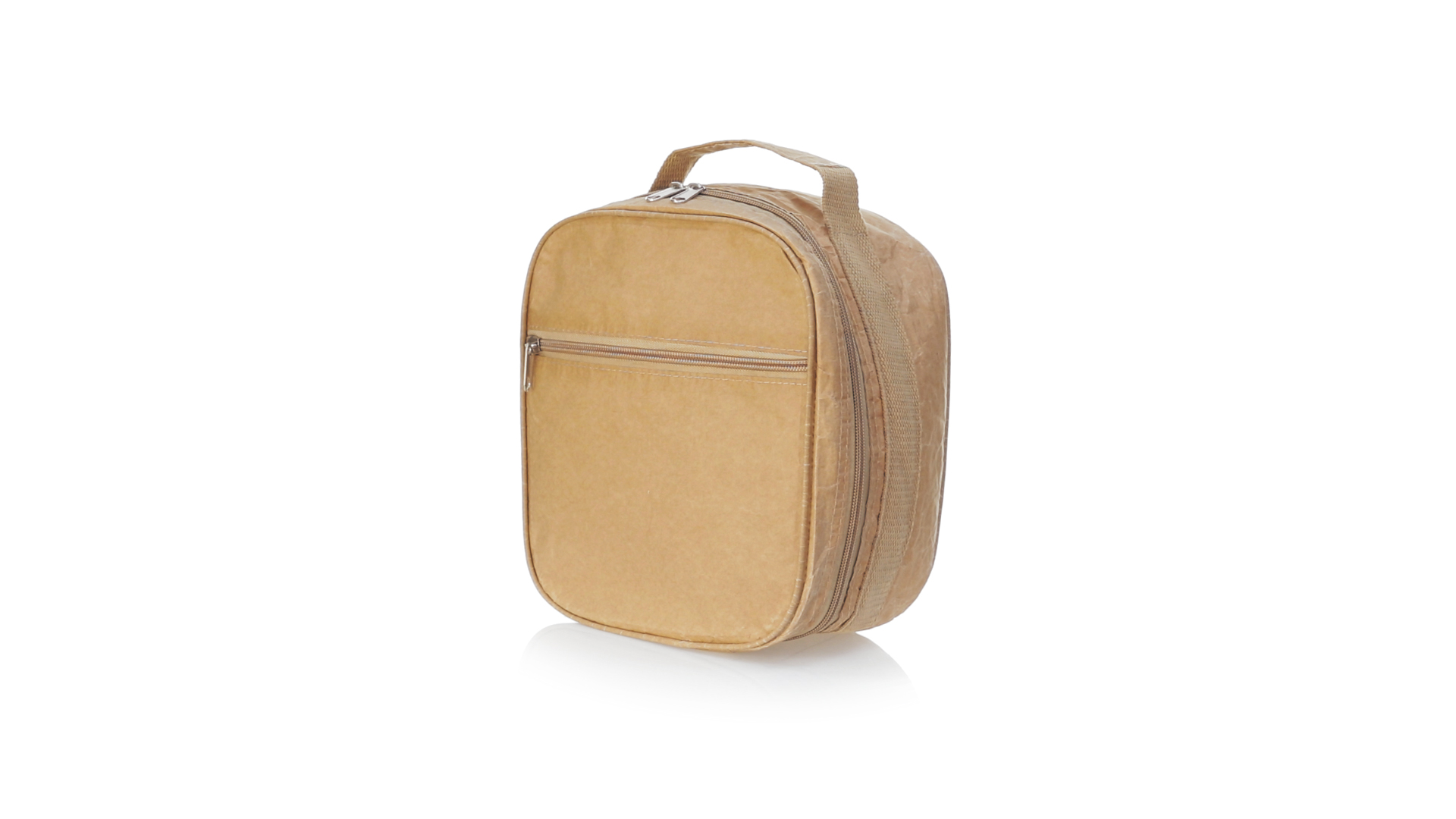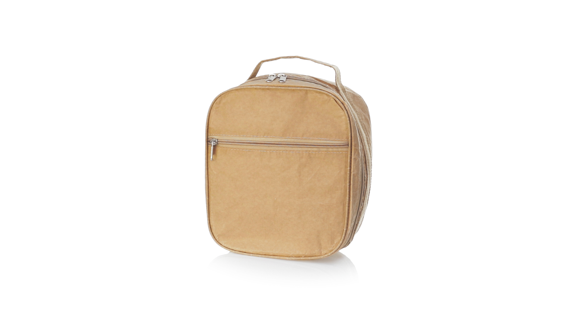 Kühltasche der Liene "Natur" aus Recyclingpapier. Mit zwei unabhängigen Reissverschlussfächern mit Metallgriffen. Verstärkter Tragegriff und isotherme Aluminium-Innenausstattung.