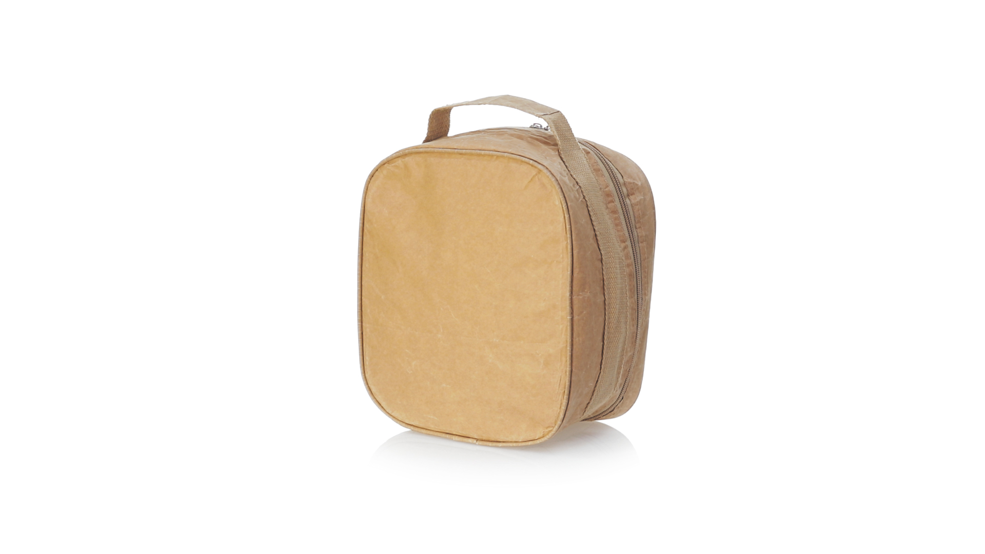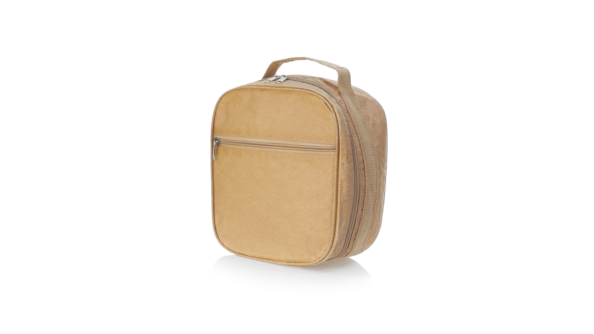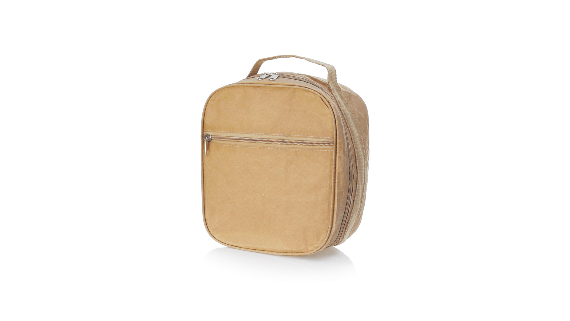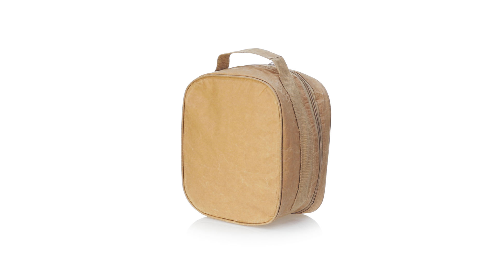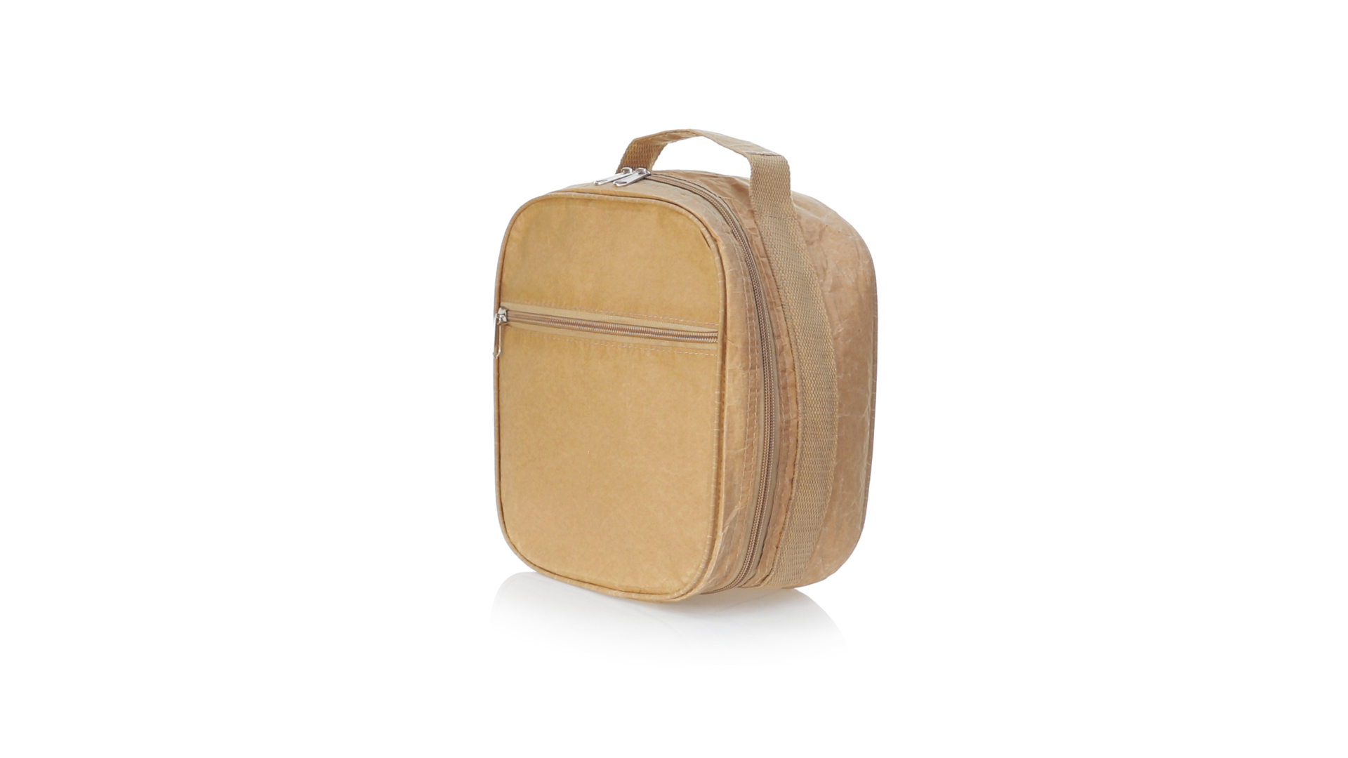 Kühltasche der Liene "Natur" aus Recyclingpapier. Mit zwei unabhängigen Reissverschlussfächern mit Metallgriffen. Verstärkter Tragegriff und isotherme Aluminium-Innenausstattung.