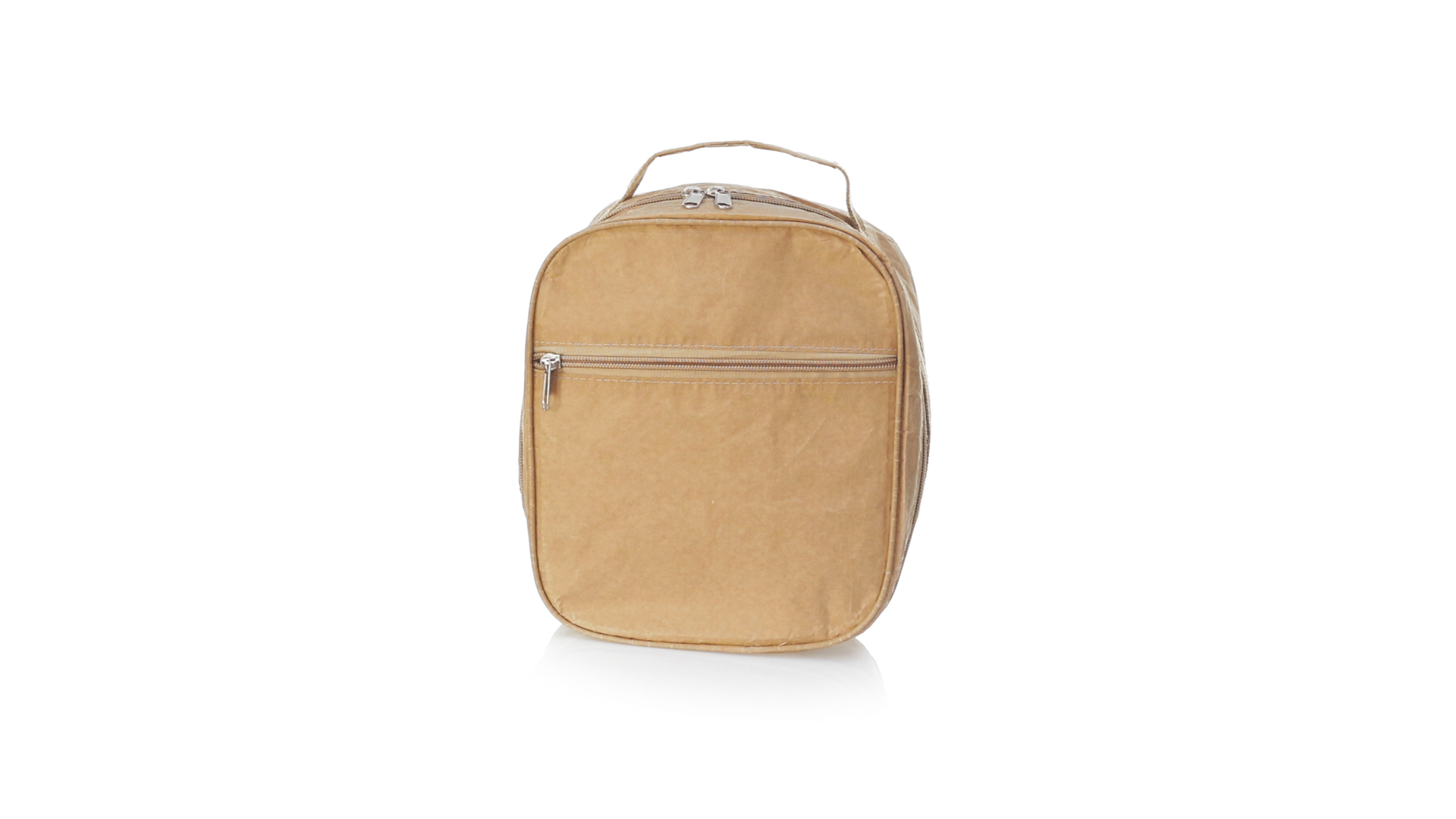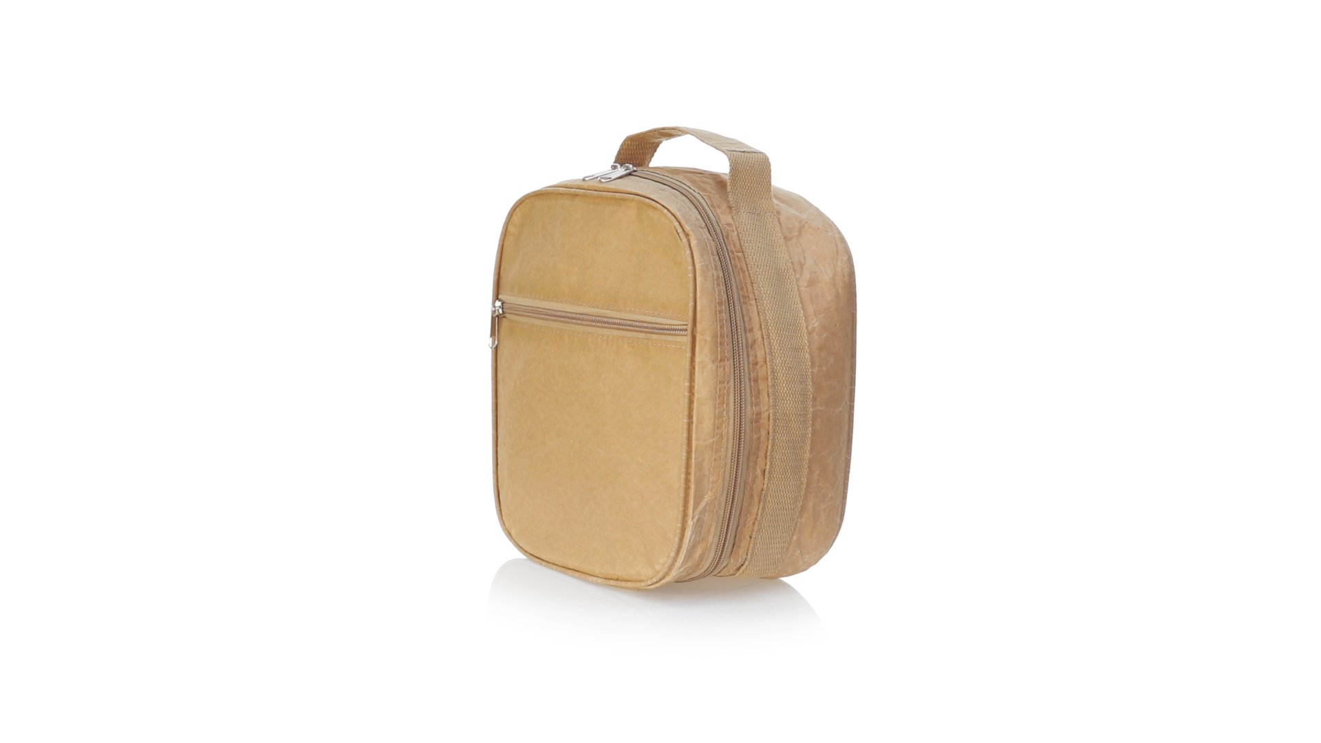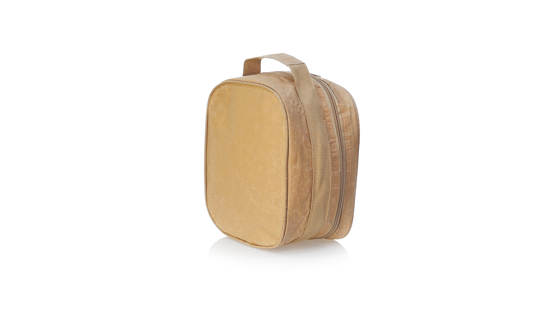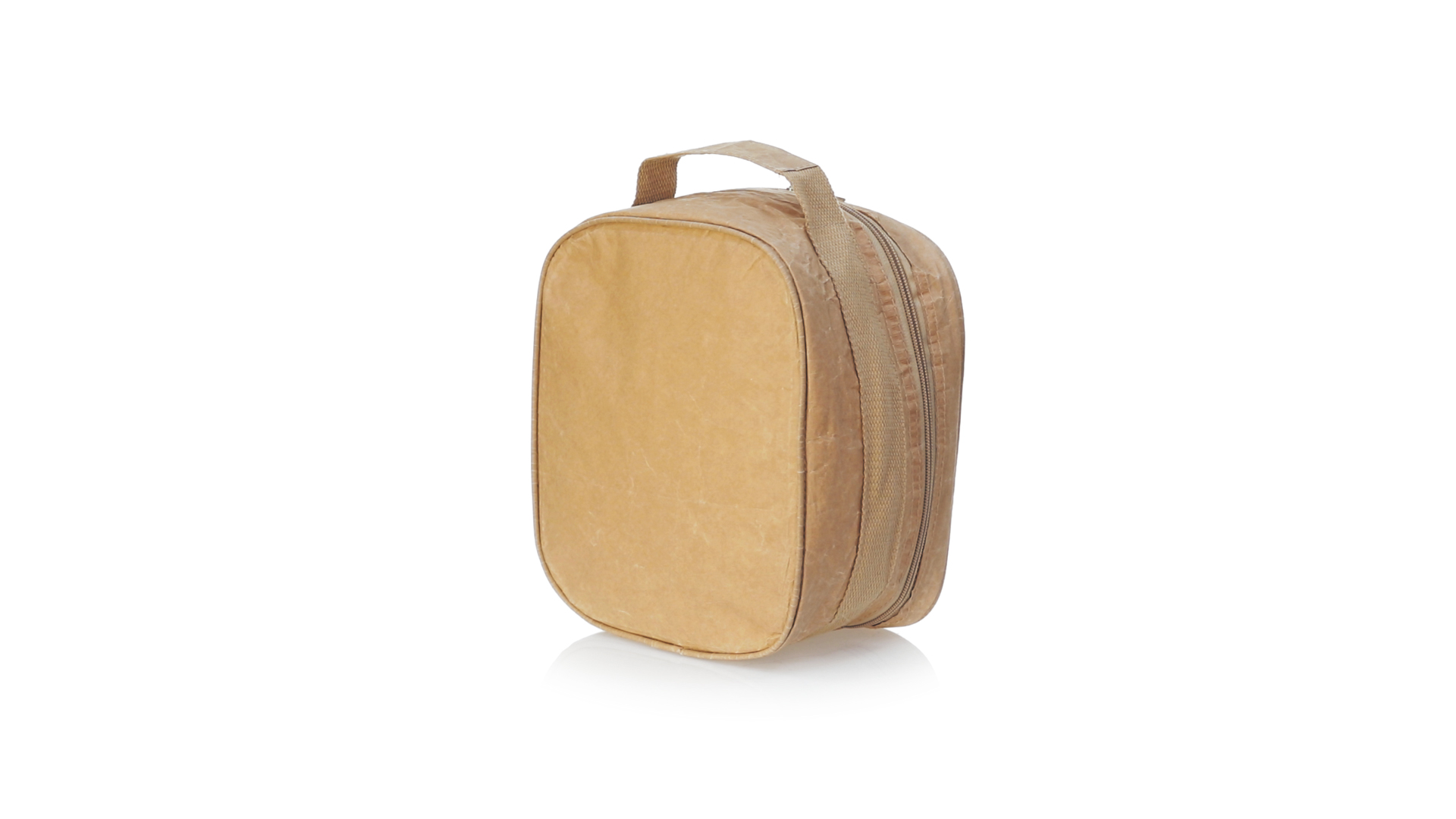 Kühltasche der Liene "Natur" aus Recyclingpapier. Mit zwei unabhängigen Reissverschlussfächern mit Metallgriffen. Verstärkter Tragegriff und isotherme Aluminium-Innenausstattung.