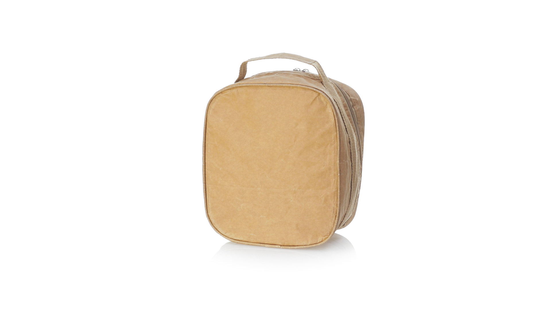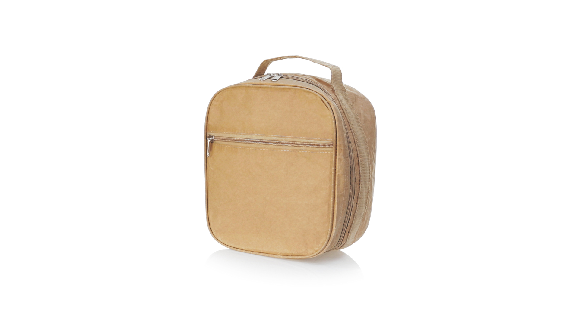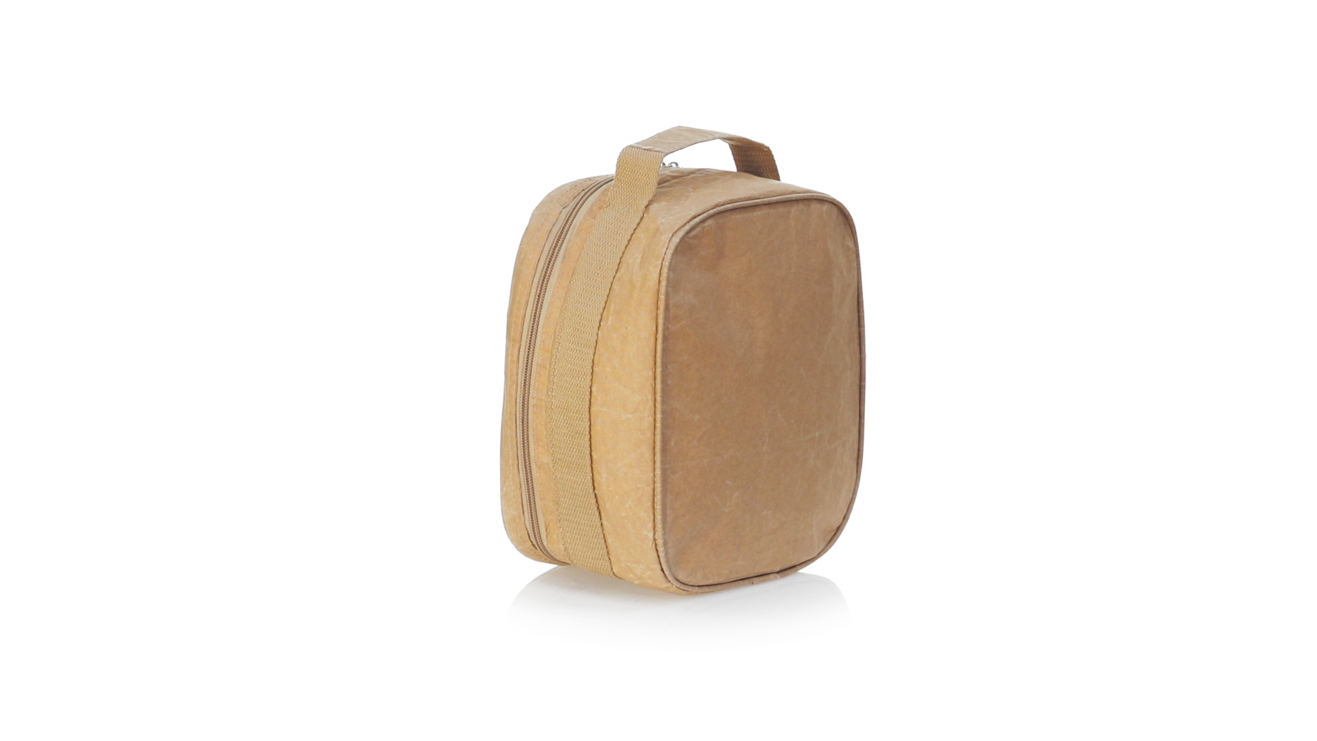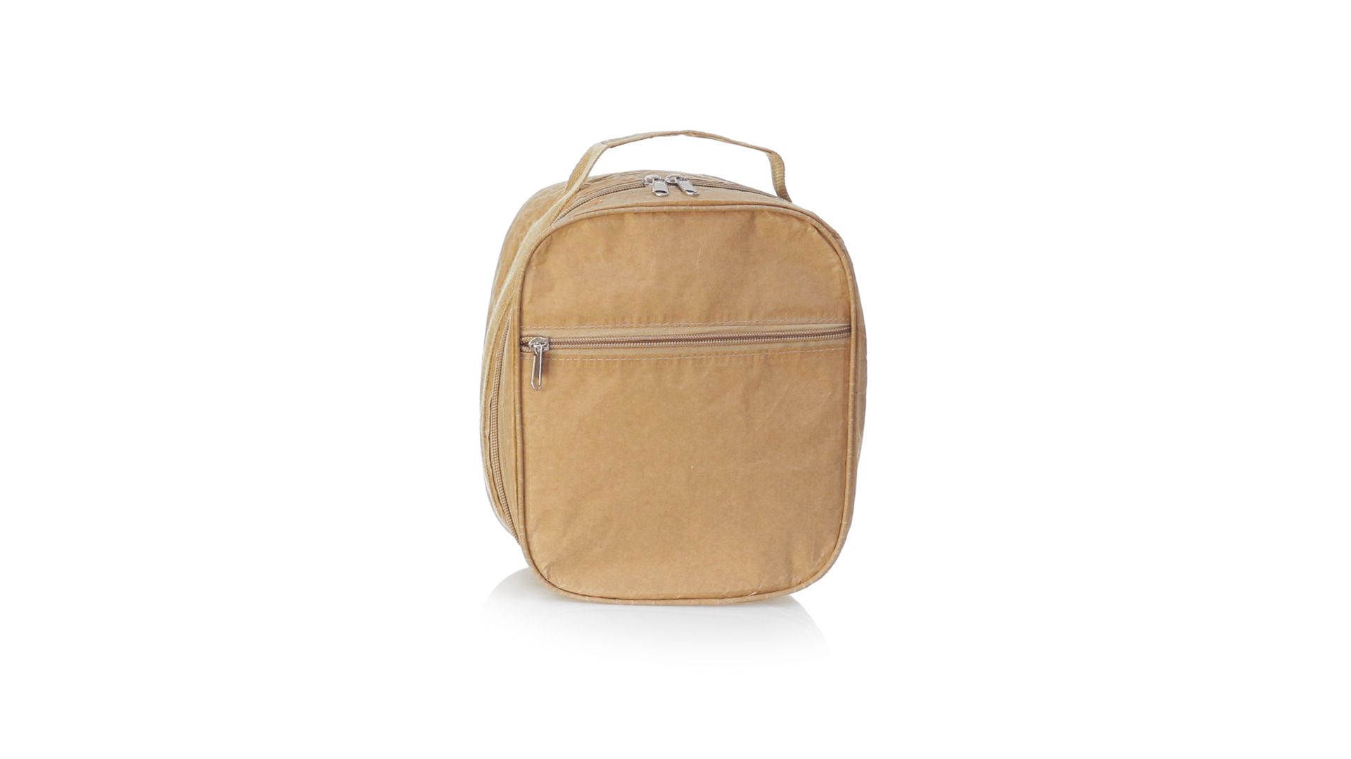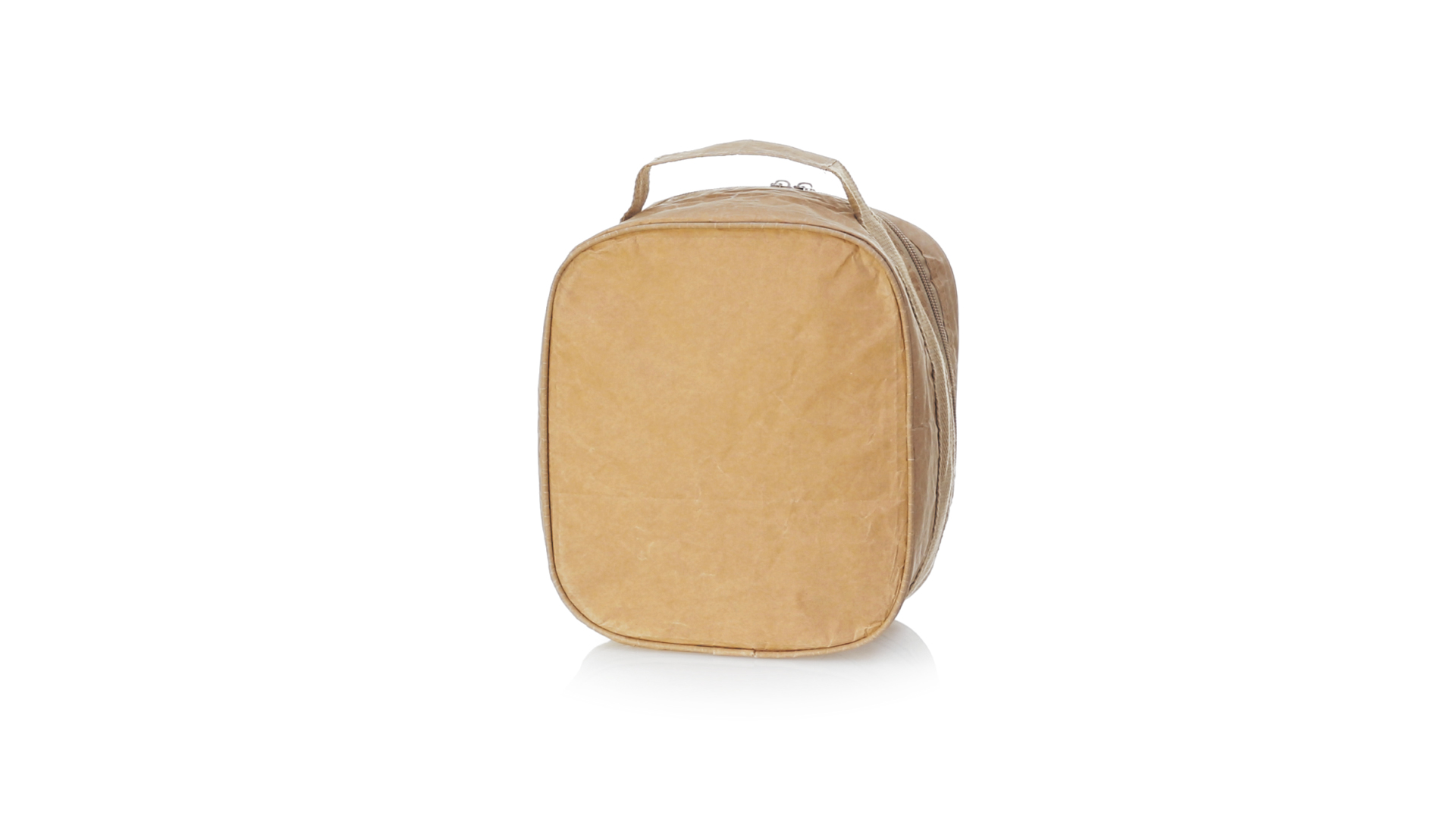 Kühltasche der Liene "Natur" aus Recyclingpapier. Mit zwei unabhängigen Reissverschlussfächern mit Metallgriffen. Verstärkter Tragegriff und isotherme Aluminium-Innenausstattung.