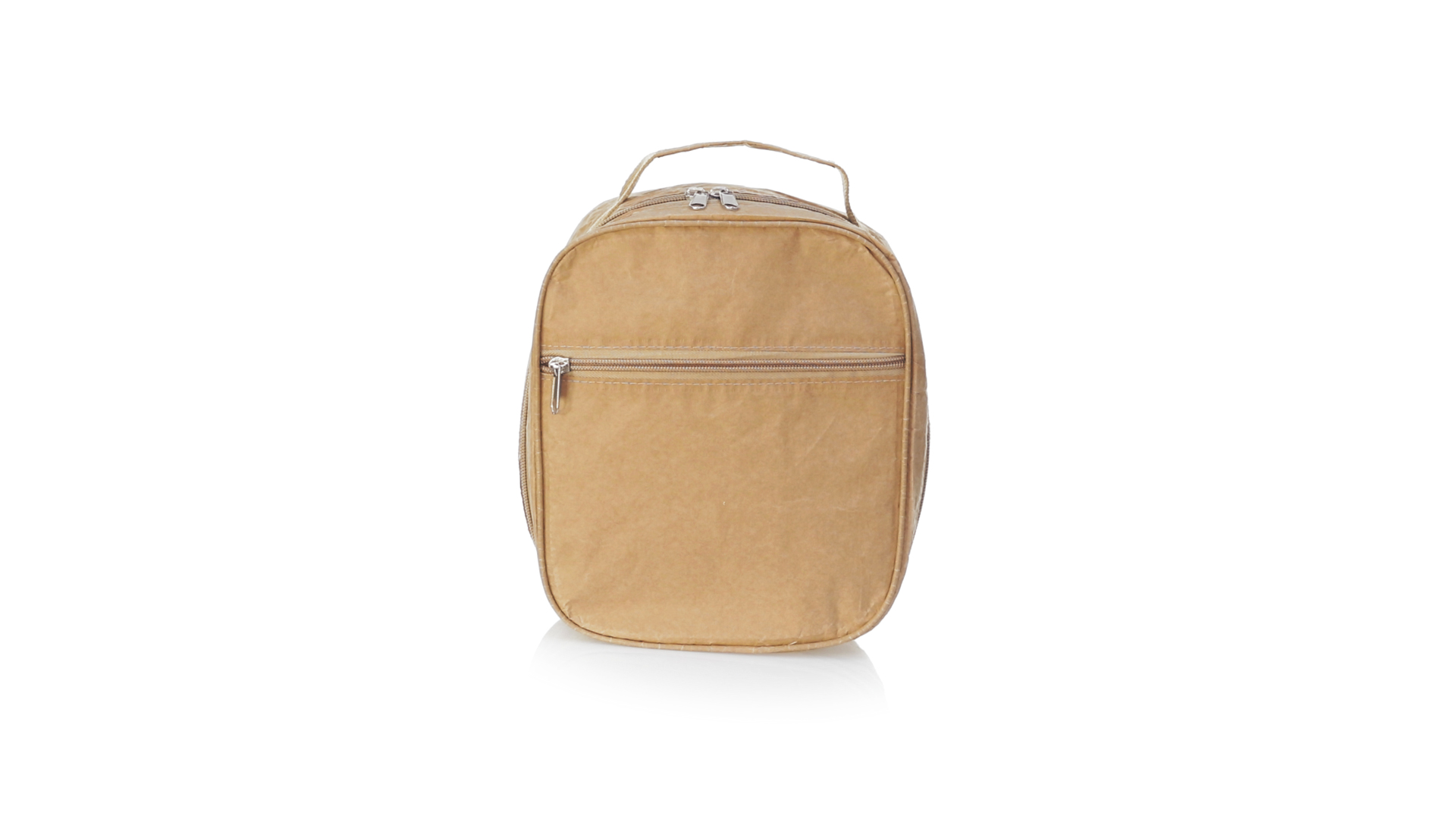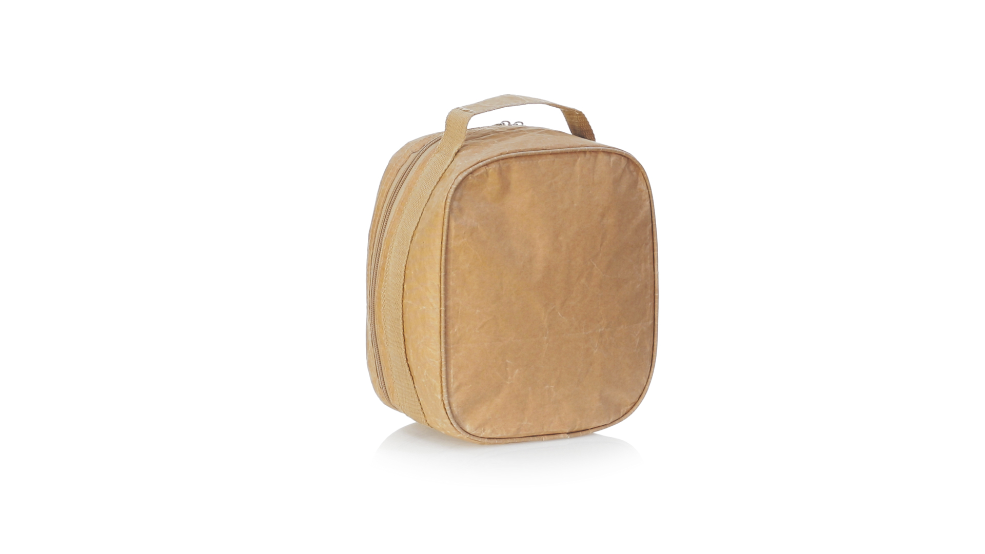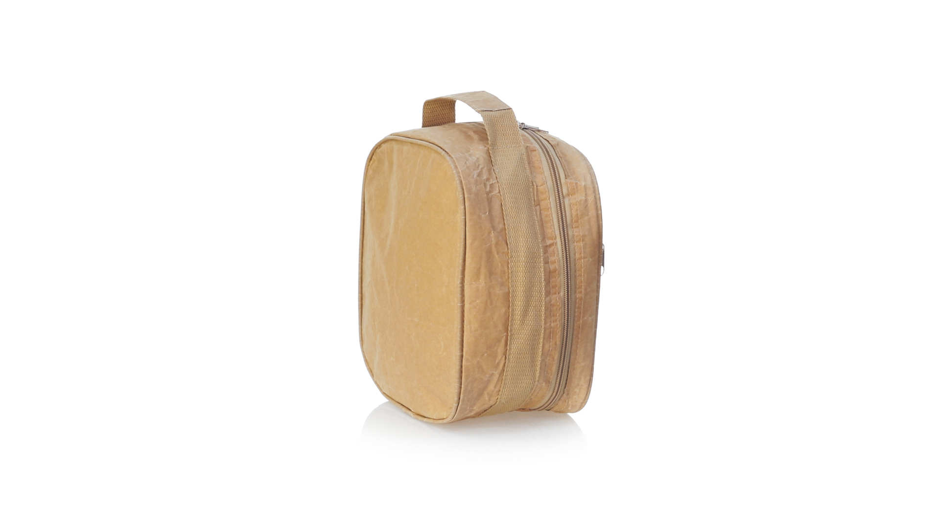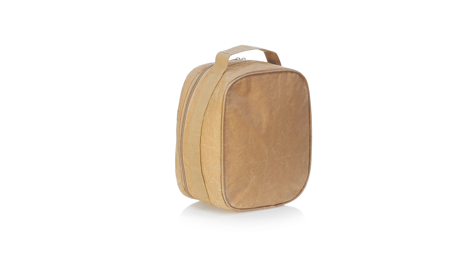 Kühltasche der Liene "Natur" aus Recyclingpapier. Mit zwei unabhängigen Reissverschlussfächern mit Metallgriffen. Verstärkter Tragegriff und isotherme Aluminium-Innenausstattung.