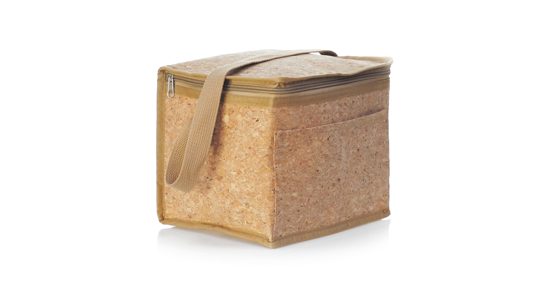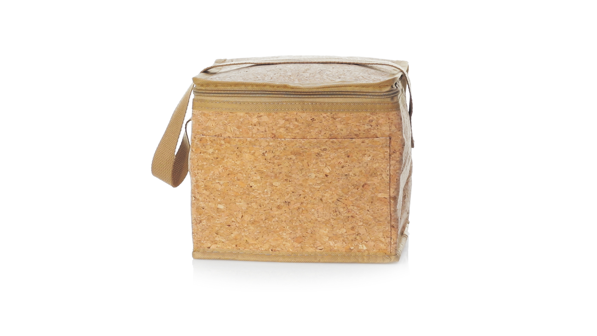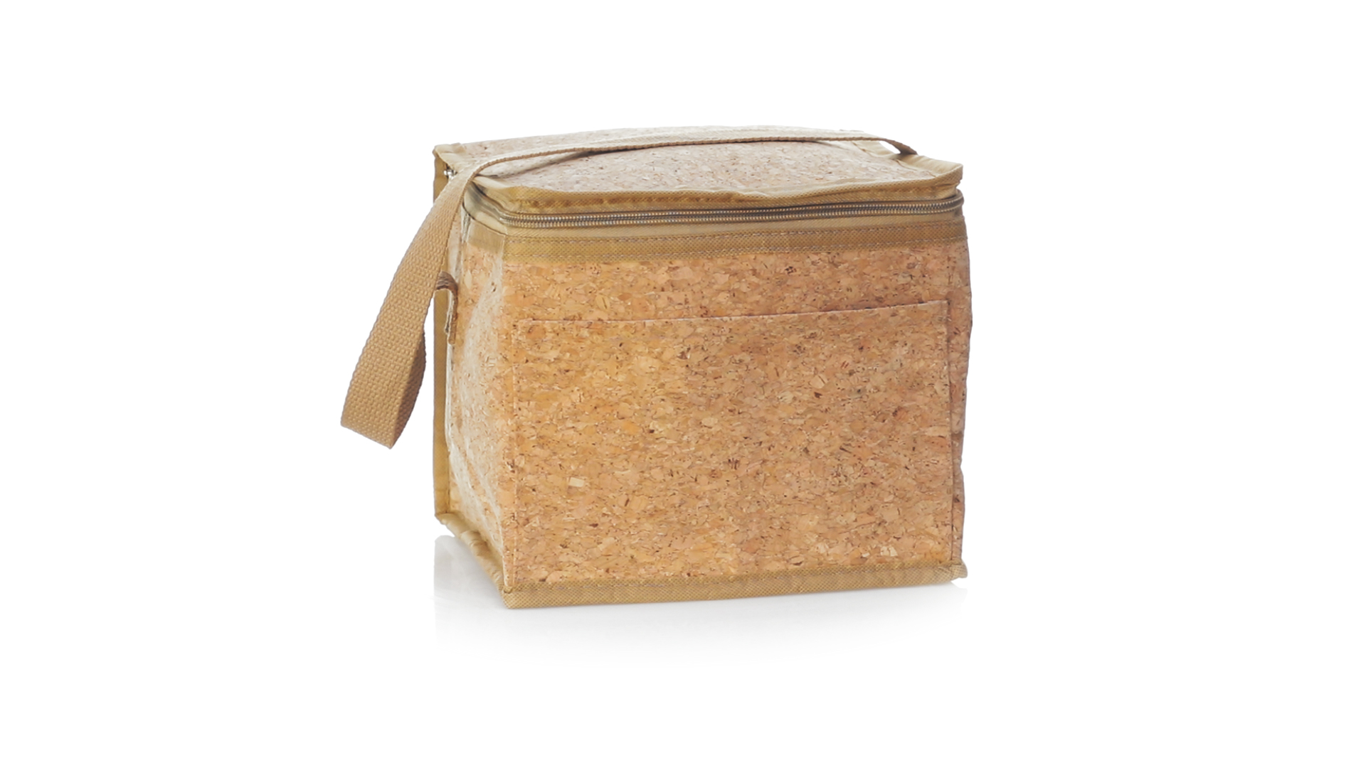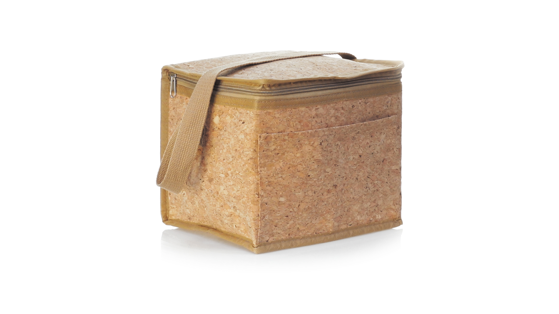 Nature Line Kühltasche mit Kapazität für 6 Dosen. Aus Naturkork mit isothermer Innenseite aus Aluminium. Passender Reissverschluss und Tragegriff. Inklusive Aussentasche mit grosser Beschriftungsfläche.