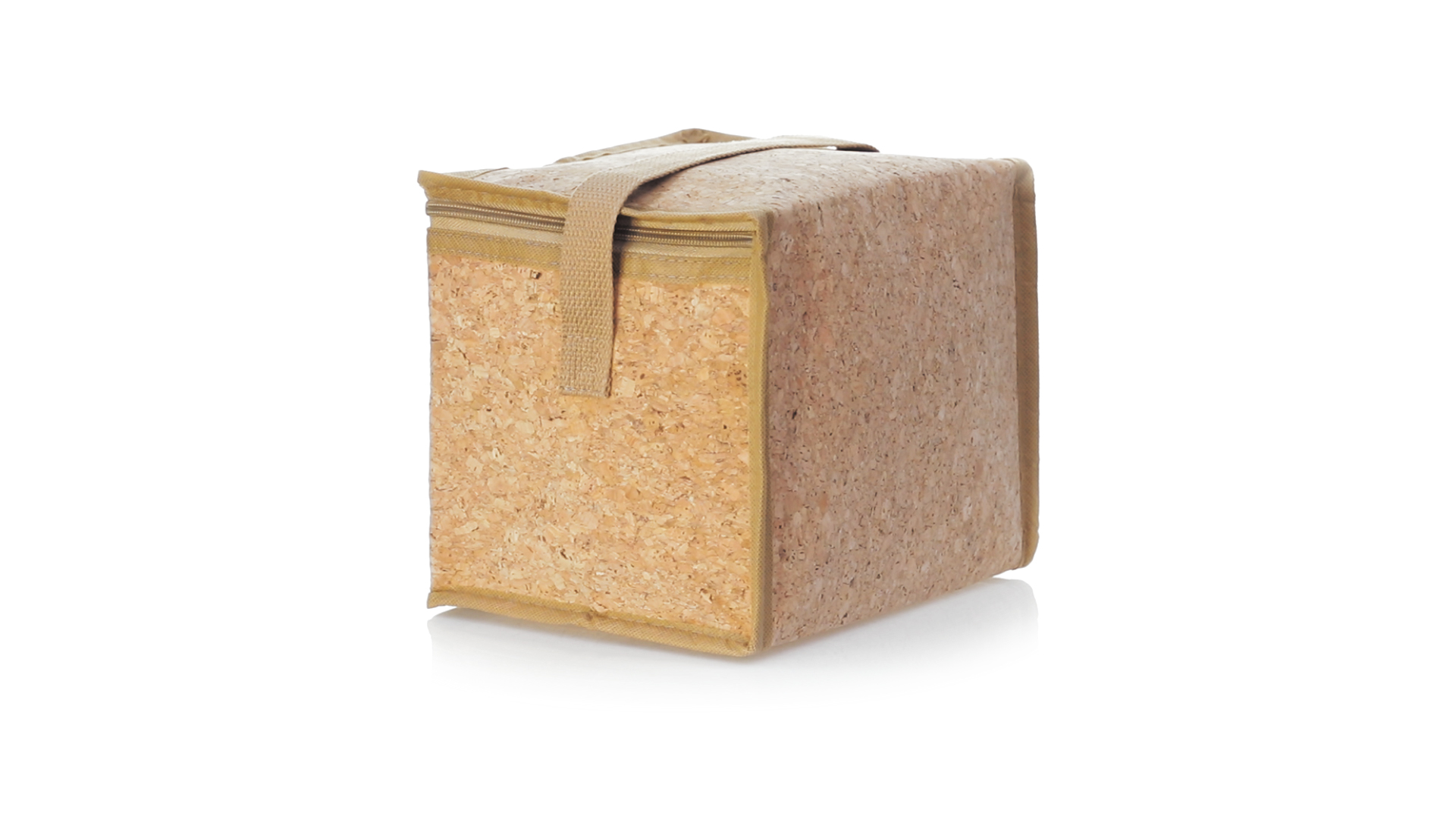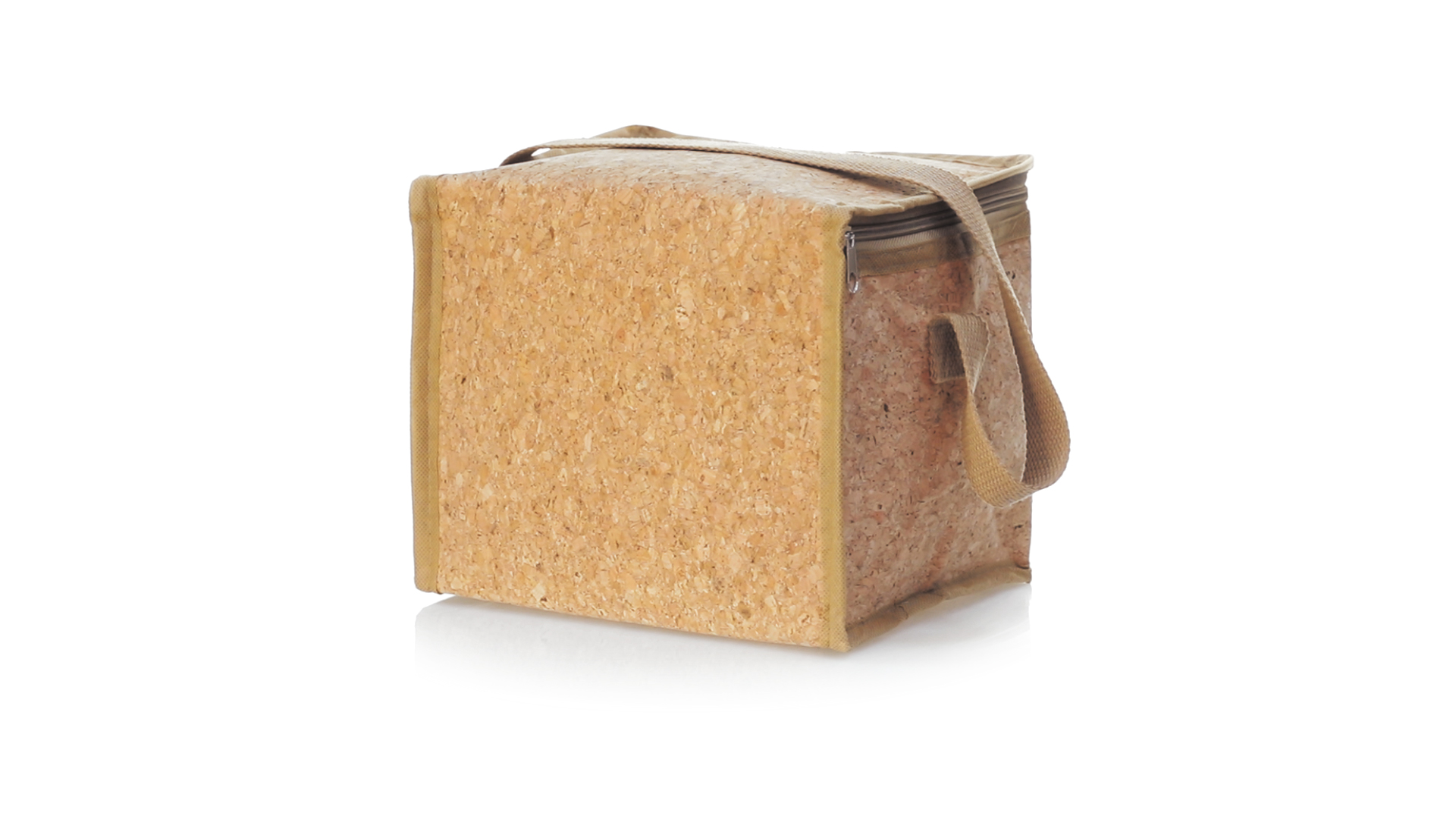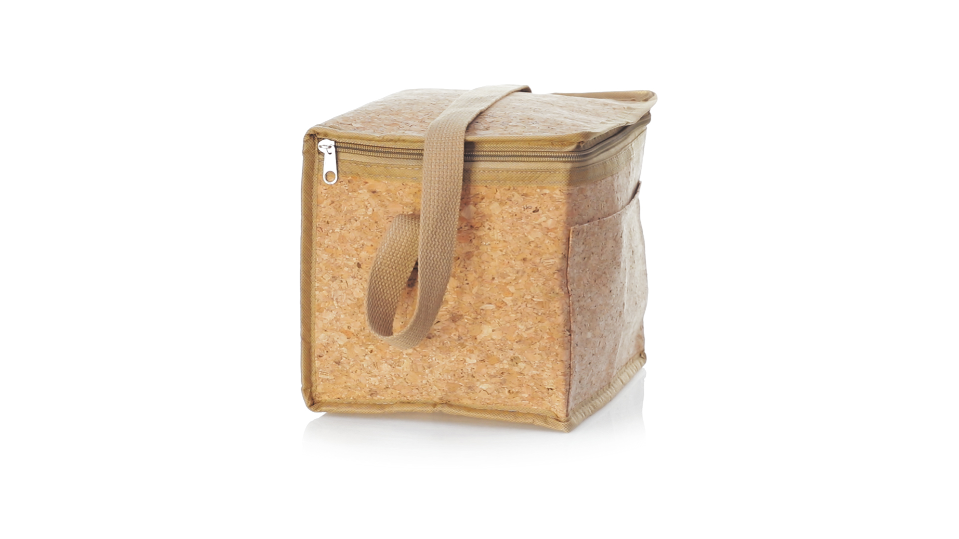 Nature Line Kühltasche mit Kapazität für 6 Dosen. Aus Naturkork mit isothermer Innenseite aus Aluminium. Passender Reissverschluss und Tragegriff. Inklusive Aussentasche mit grosser Beschriftungsfläche.