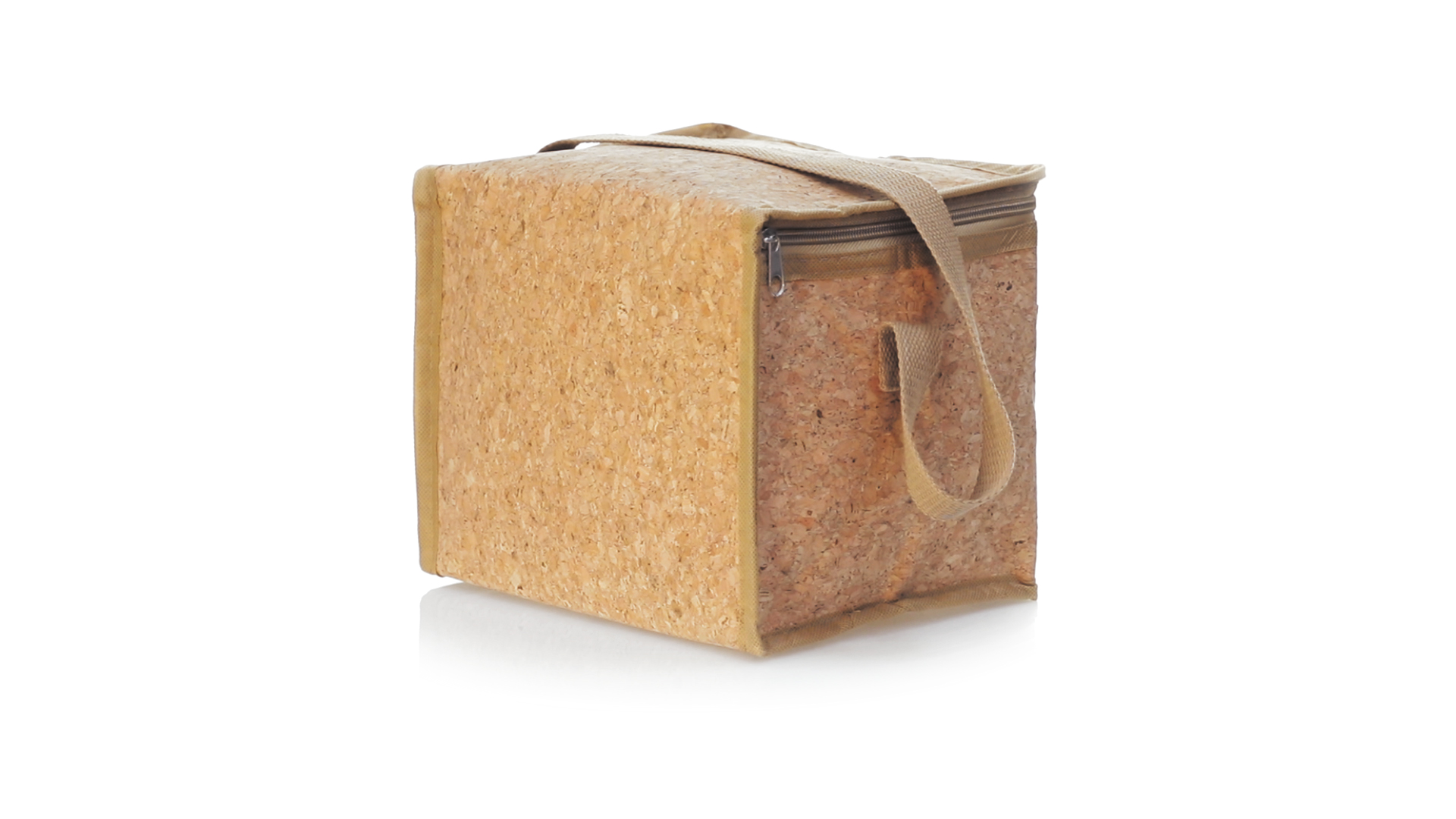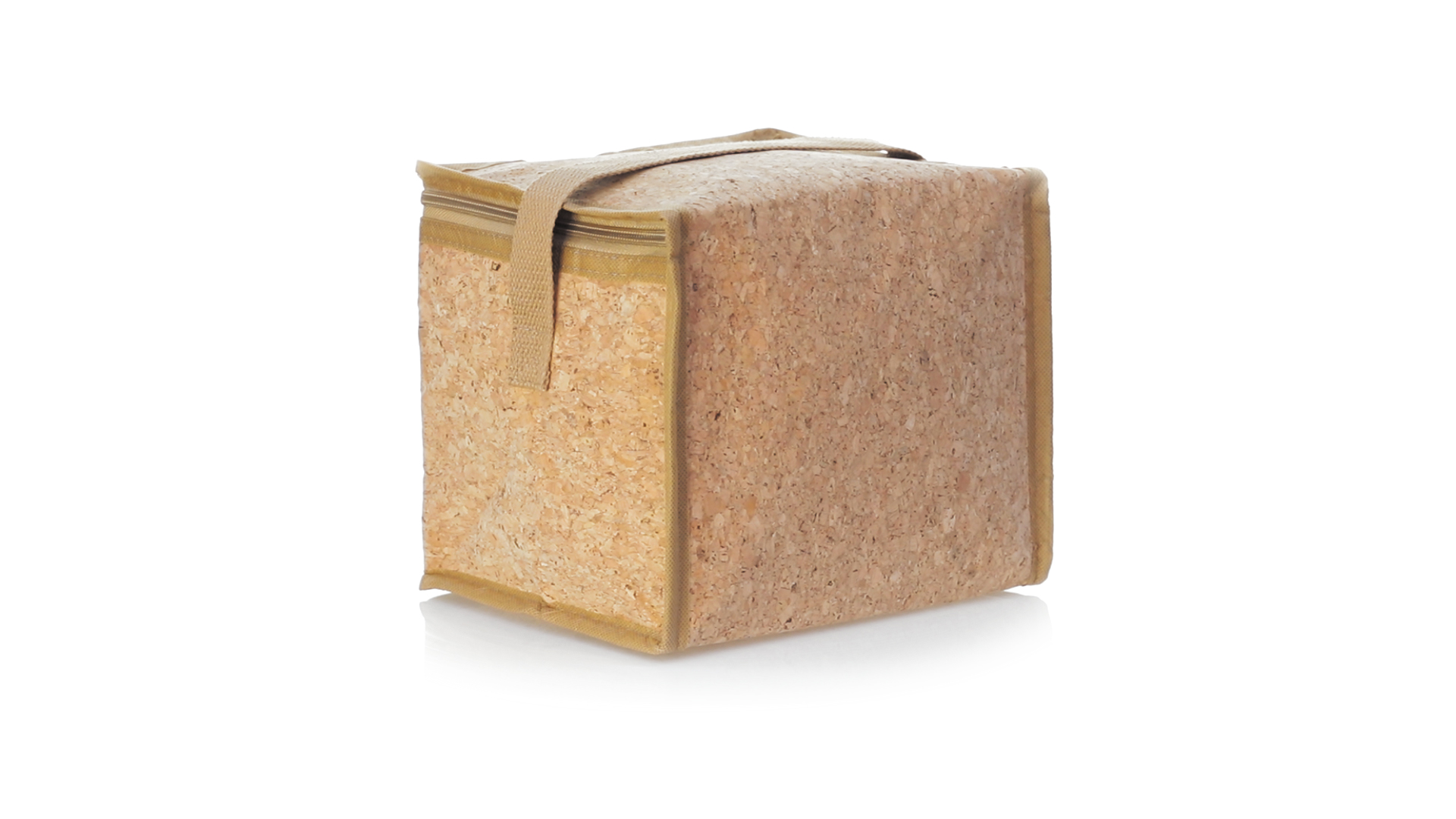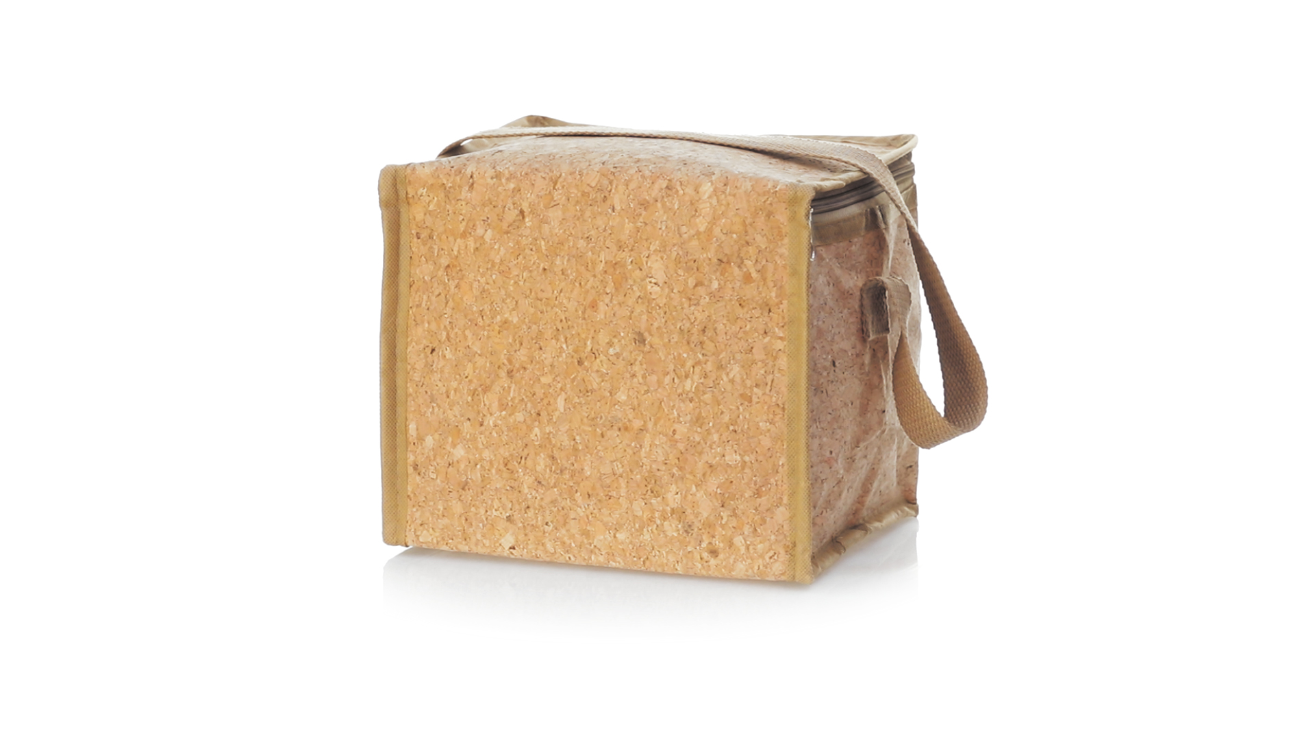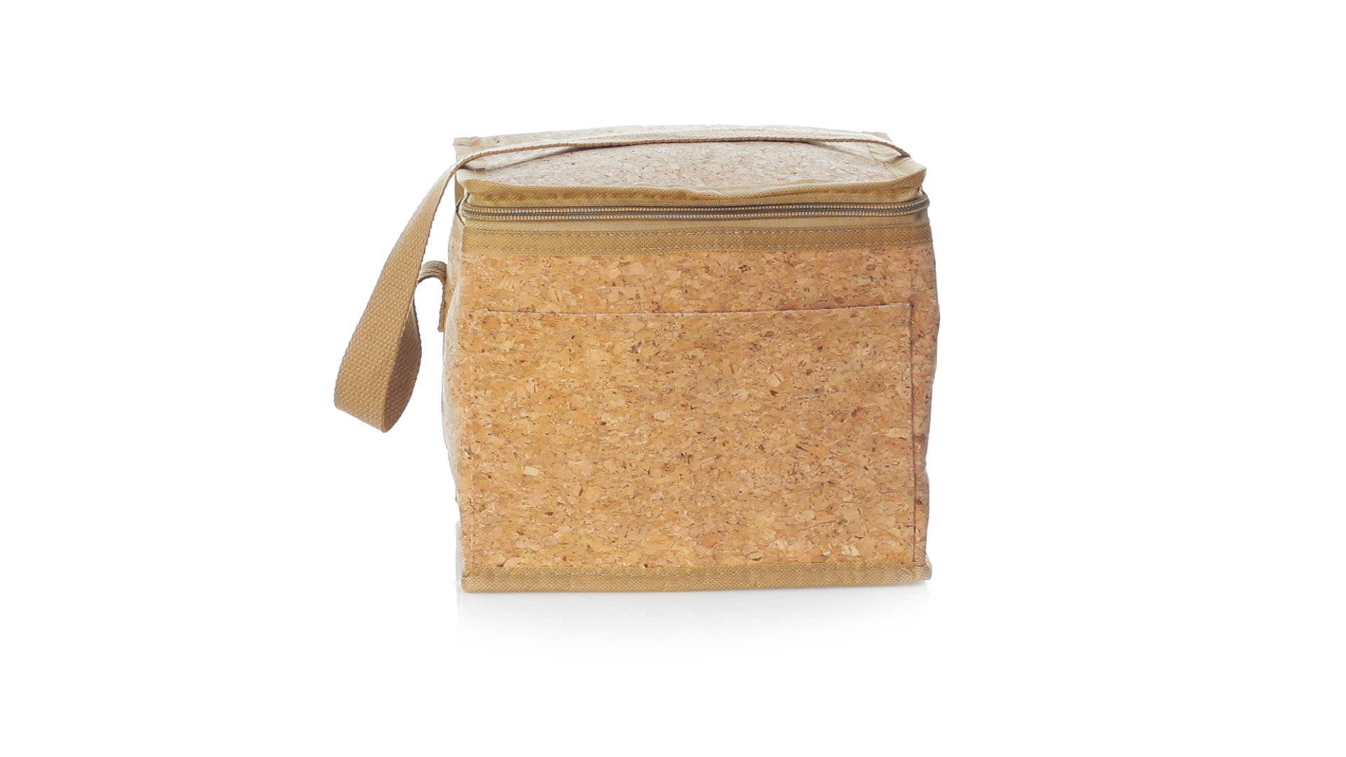 Nature Line Kühltasche mit Kapazität für 6 Dosen. Aus Naturkork mit isothermer Innenseite aus Aluminium. Passender Reissverschluss und Tragegriff. Inklusive Aussentasche mit grosser Beschriftungsfläche.