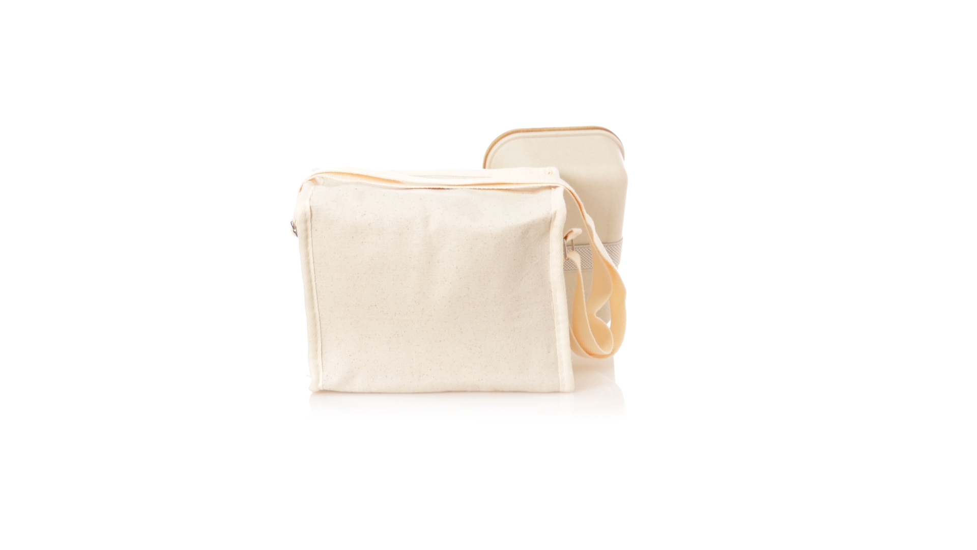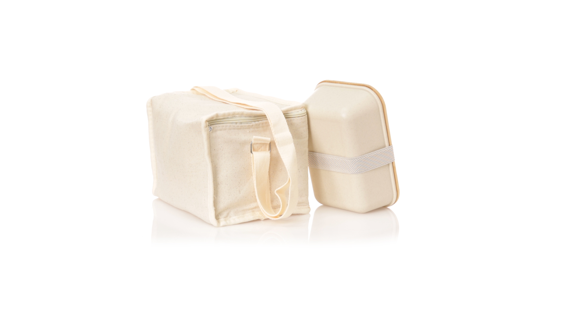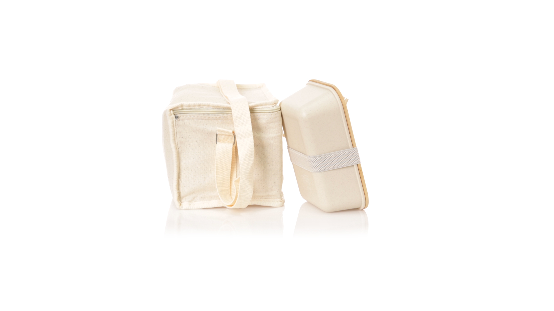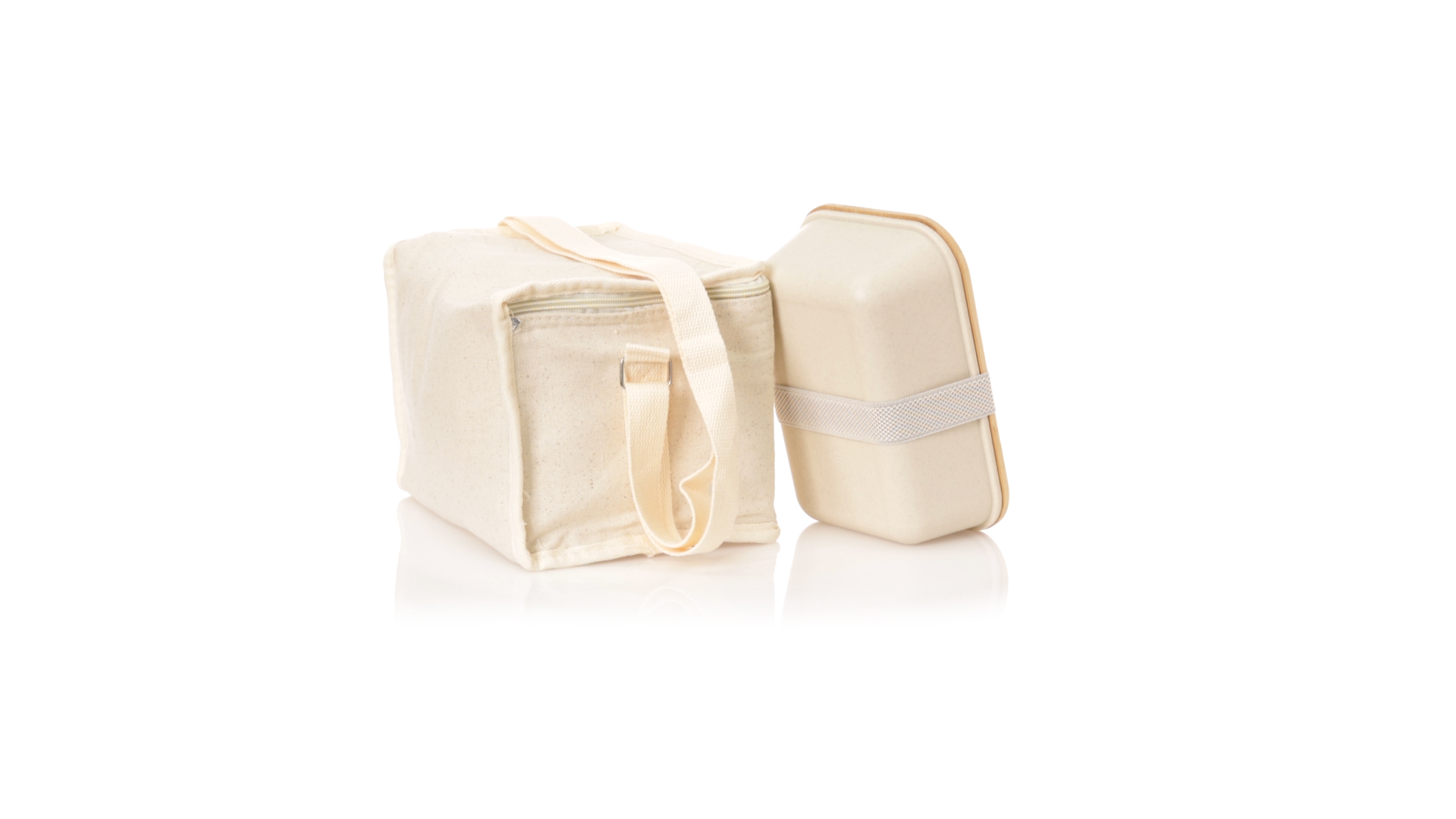 Set aus Lunchbox und Kühler der Linie Natur mit Lebensmittelzertifizierung, die die Sicherheit gewährleistet, wenn Lebensmittel mit dem zur Herstellung des Produkts verwendeten Material in Kontakt kommen. Einschliesslich:Kühlbox aus Baumwolle, mit isothermischer Innenseite aus Aluminium. Reissverschluss mit doppeltem Kordelzug und passendem Tragegriff.Lunchbox aus BPA-freiem, geädertem PP, mit Bambusdeckel und 1 l Fassungsvermögen. Gummiband-Sicherheitsverschluss, mit Fächern für Gabel, Löffel und Messer (im Lieferumfang enthalten).