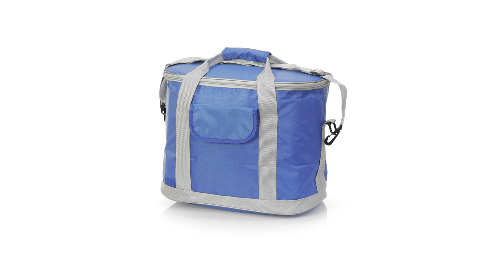 All-Terrain-Kühlbox aus strapazierfähigem 420D-Polyester, mit Hauptfach mit Reissverschluss und Fronttasche mit Klettverschluss. PEVA isothermischer Innenraum, mit verstellbarem Schultergurt und Karabinerhaken. Widerstandsfähigkeit bis zu 8 kg Gewicht.