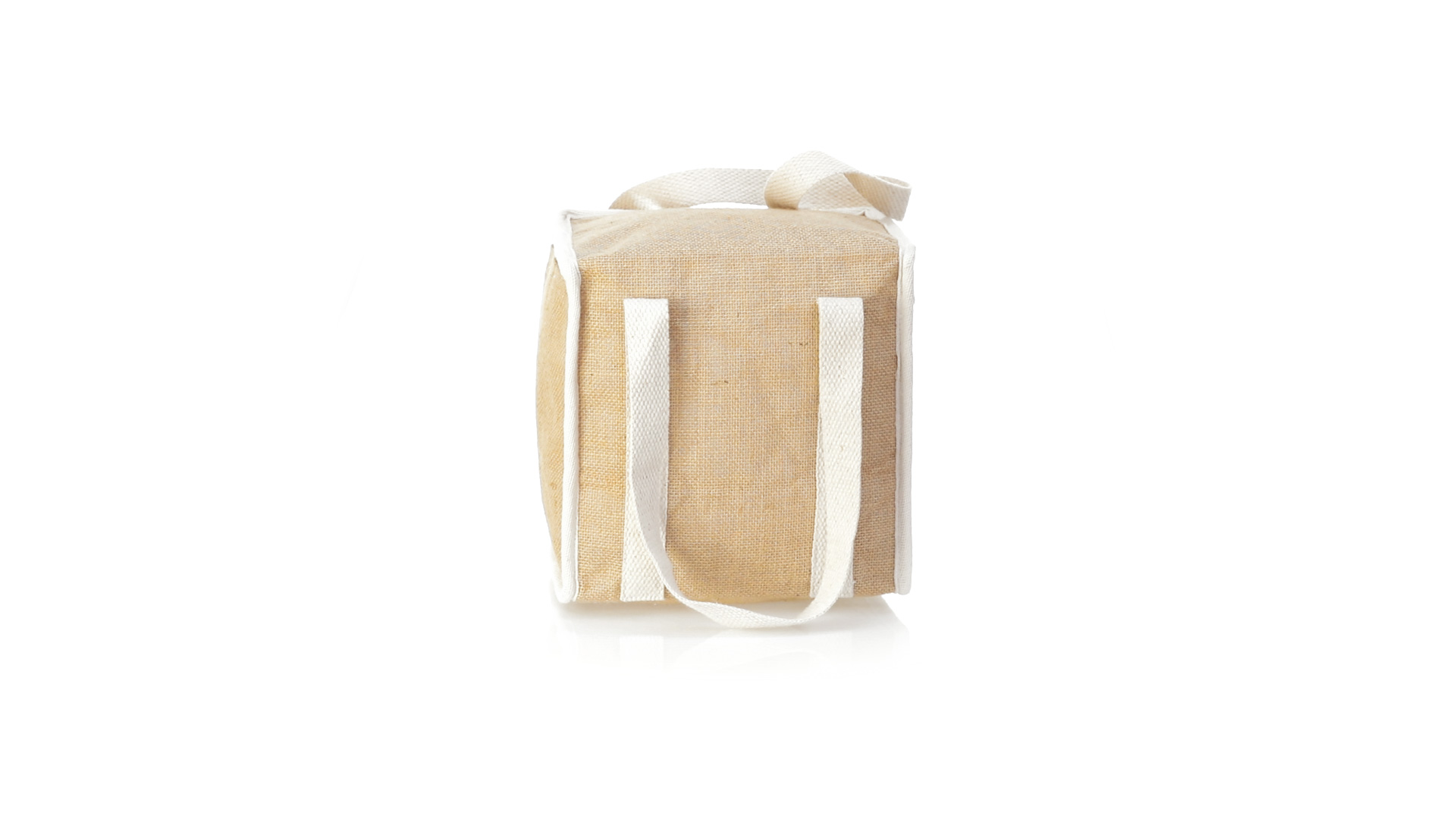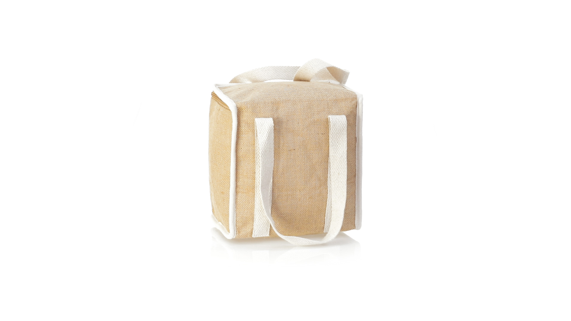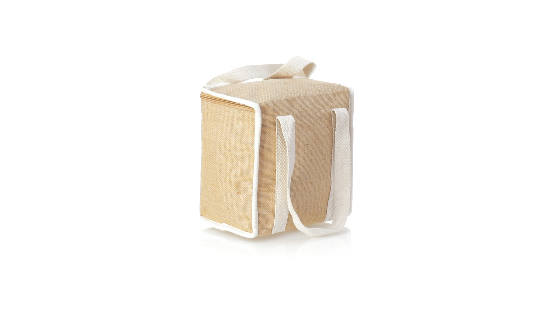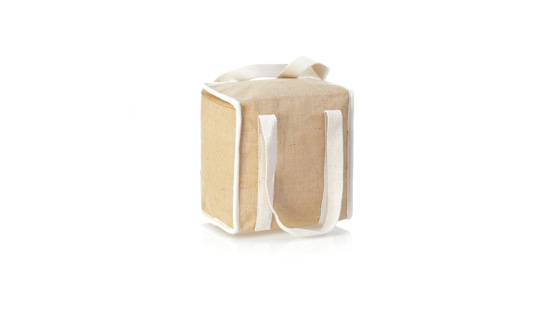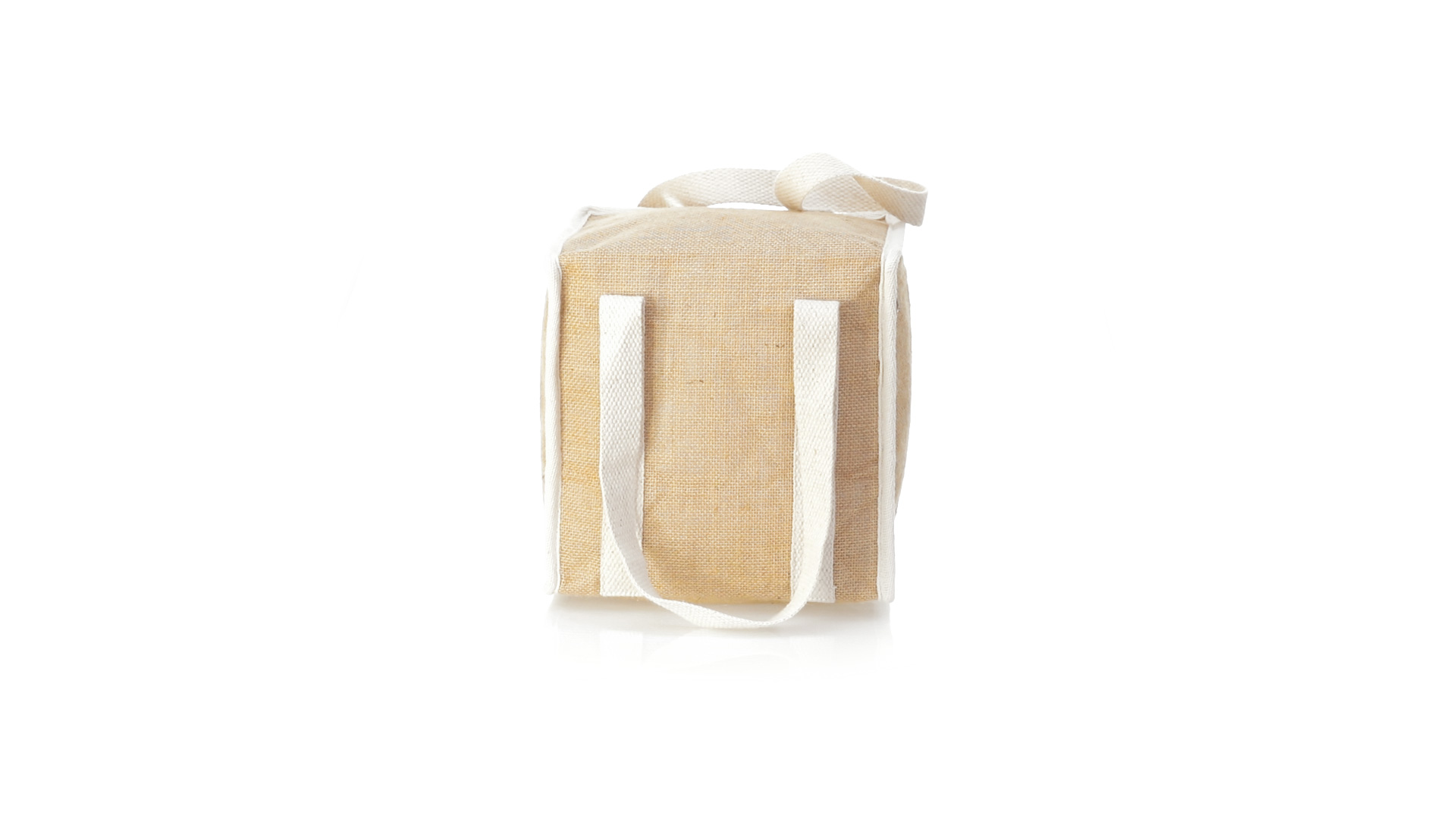 Nature Line Kühltasche mit extra Höhe. Hergestellt aus laminierter, feuchtigkeitsbeständiger Jute, mit isothermischer Innenausstattung aus Aluminium und passendem Reissverschluss. Griffe und Aussentasche für Baumwollmarkierung.