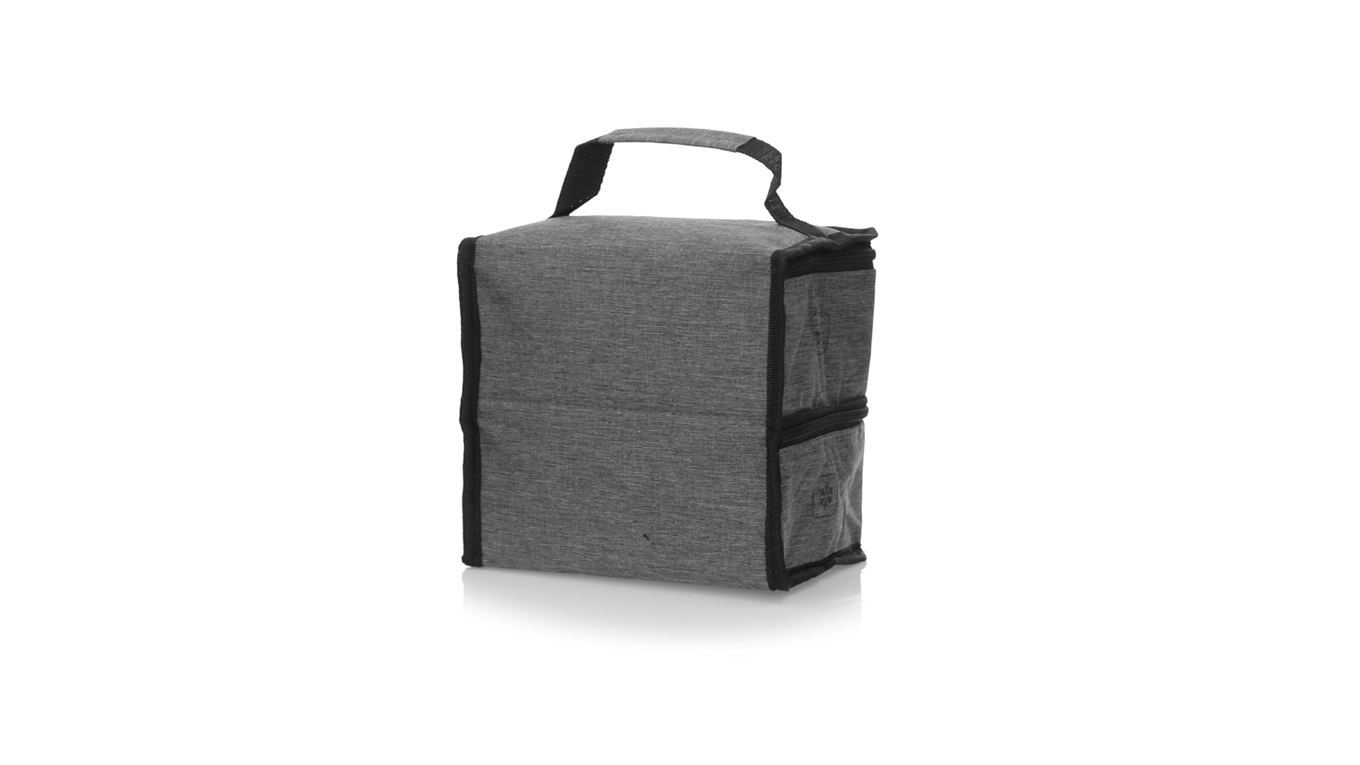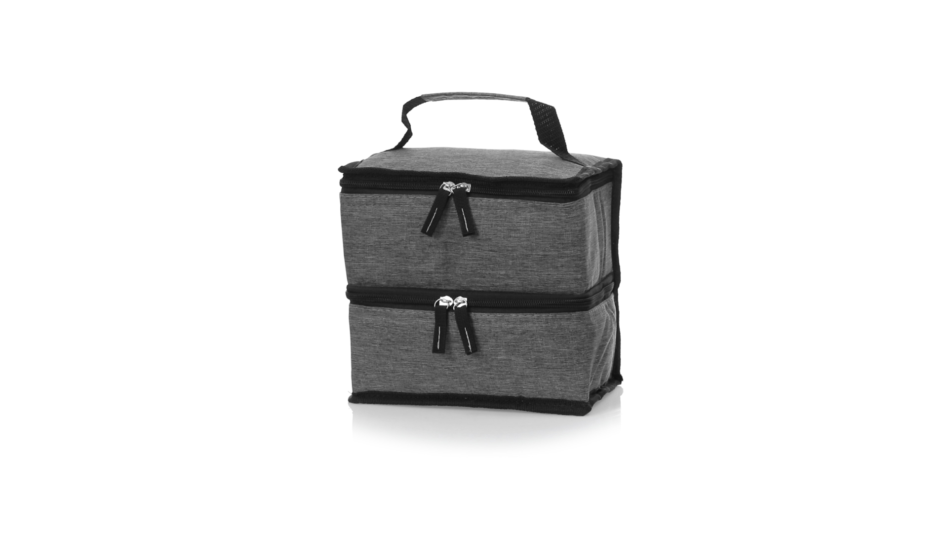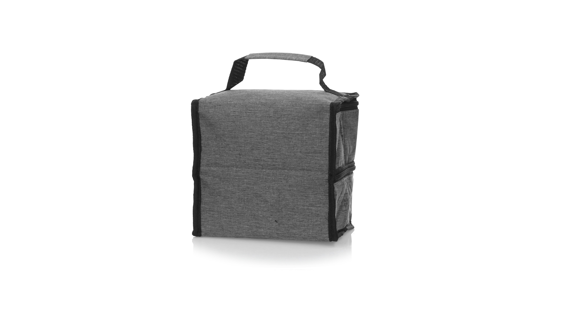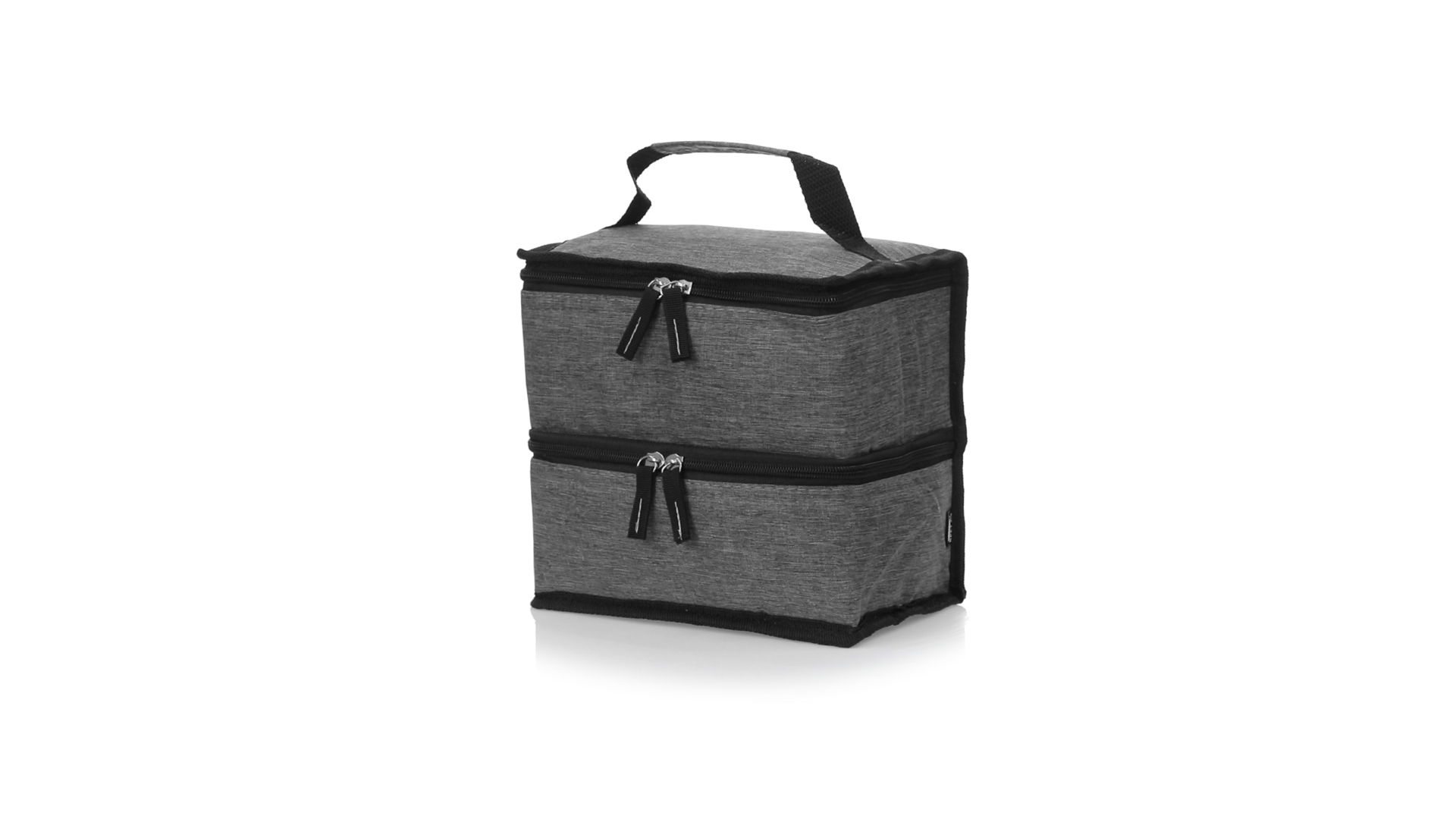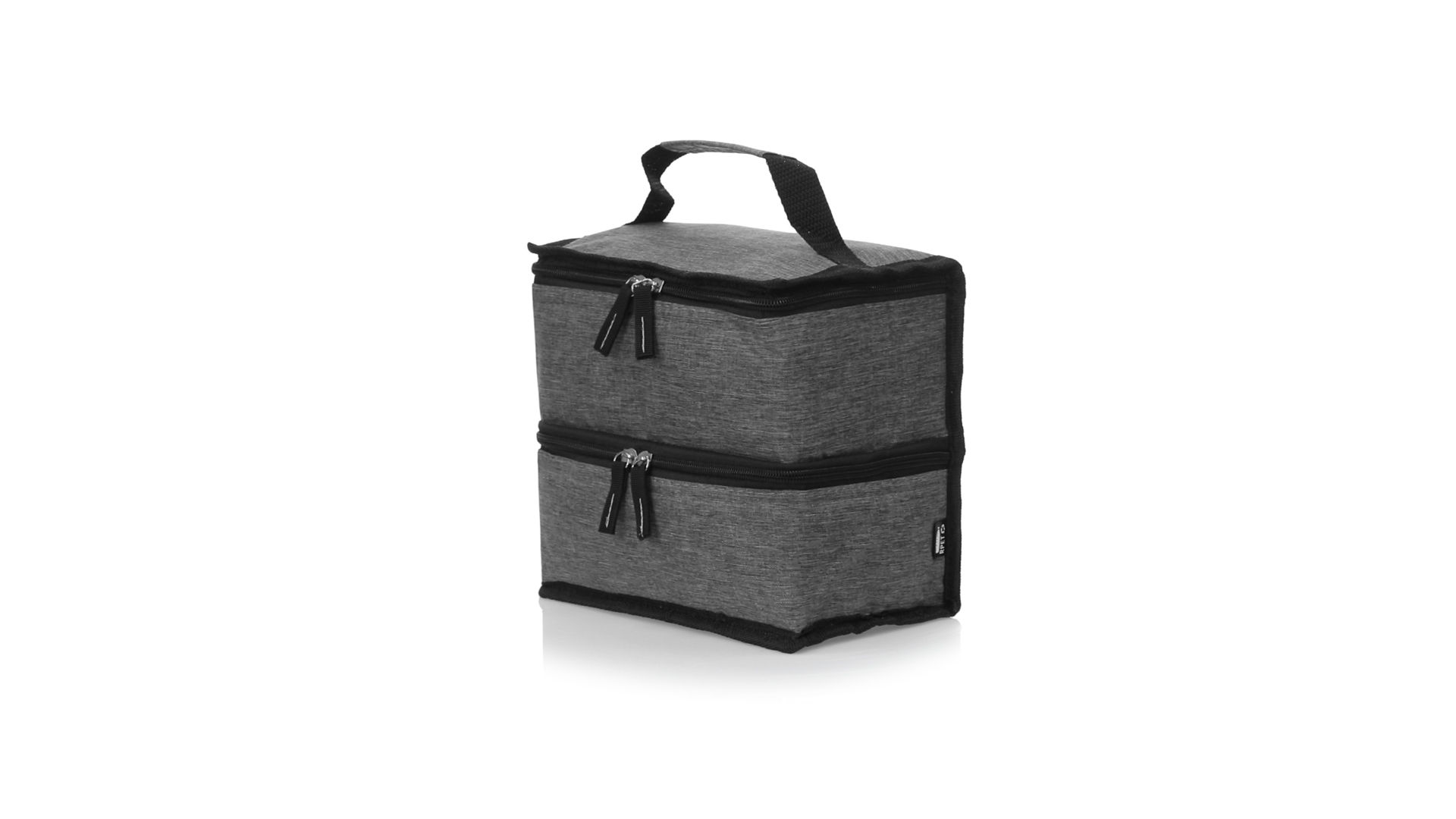 Linie "Natur" Praktische, Kühltasche mit zwei Fächern. Hergestellt aus hochwertigem 600D RPET-Polyester, das aus recyceltem Kunststoff hergestellt wird, um die Wiederverwendung von Kunststoffabfällen zu fördern und zur Nachhaltigkeit unseres Planeten beizutragen. Verstärkter Tragegriff, 2 Fächer mit Reissverschluss und doppeltem Stoffabzieher, mit RPET-Emblem auf dem Aussenetikett: Oberes Fach zum Halten der Wärme, mit isothermischer Innenseite aus Aluminium. Unteres Fach für die Kälte, mit isothermischer Innenseite aus PEVA