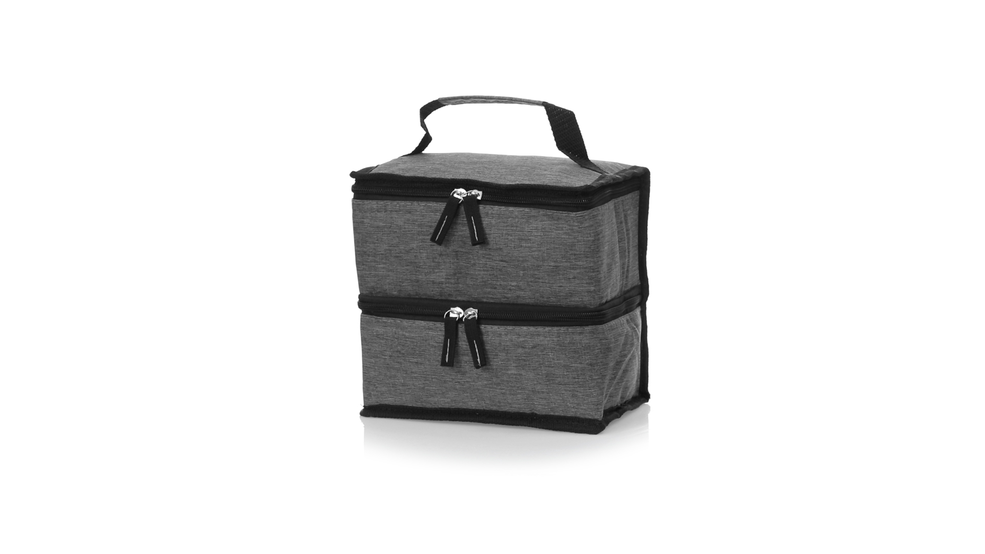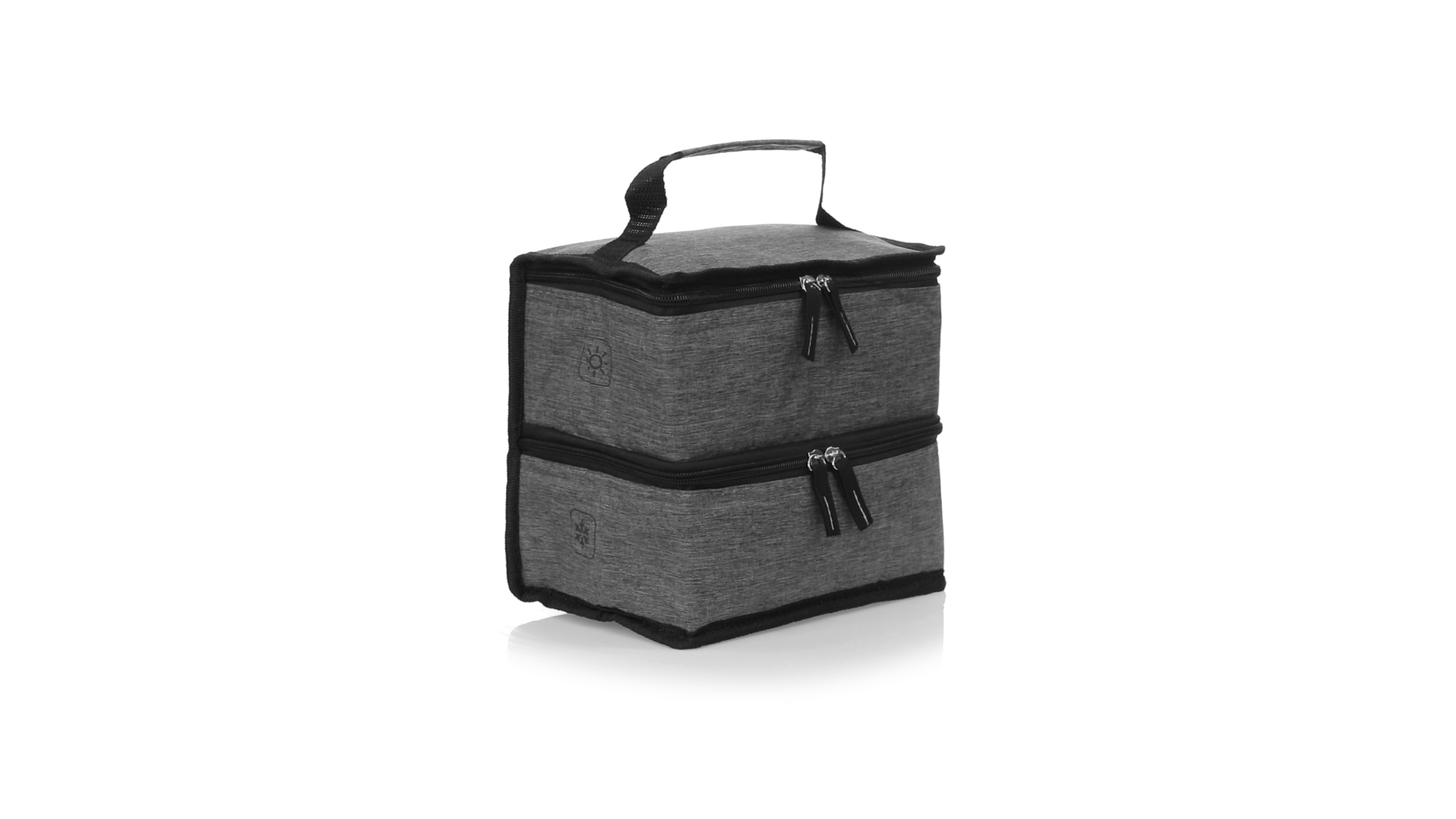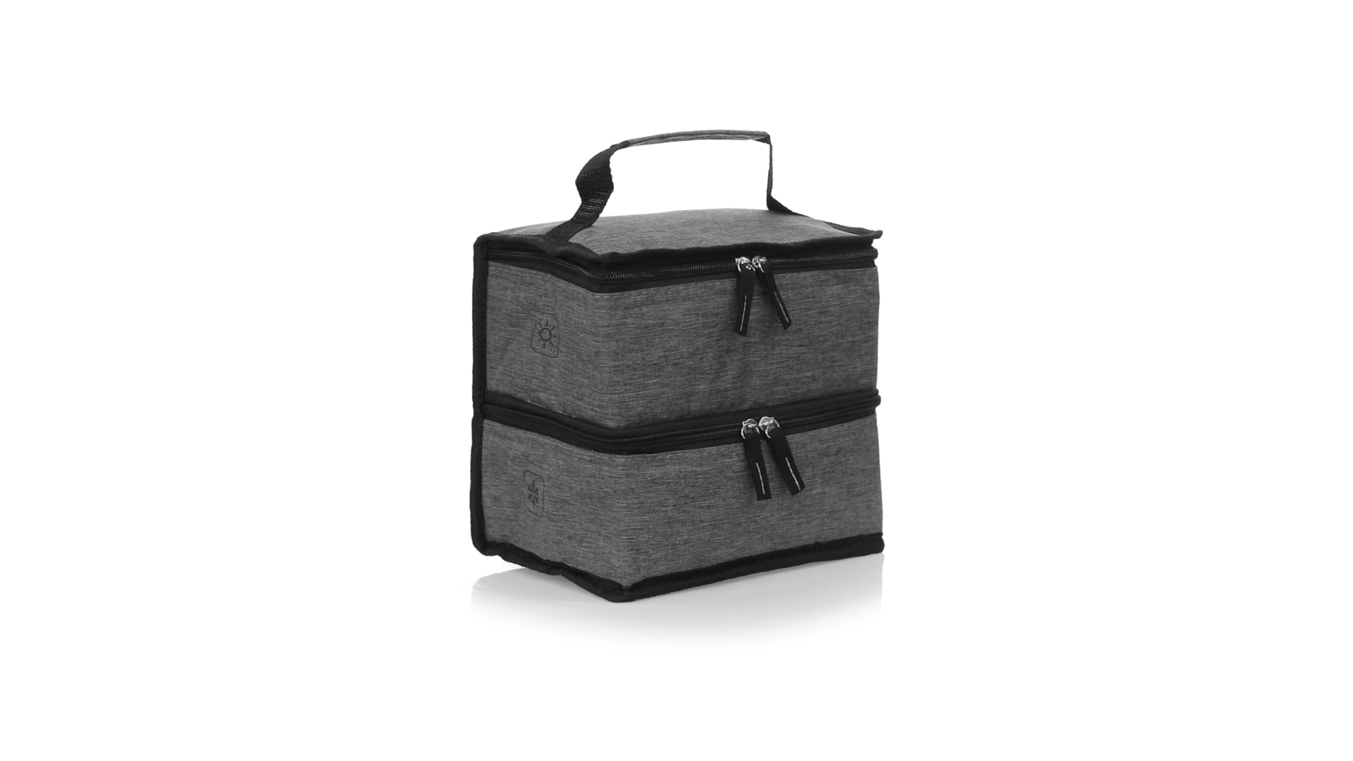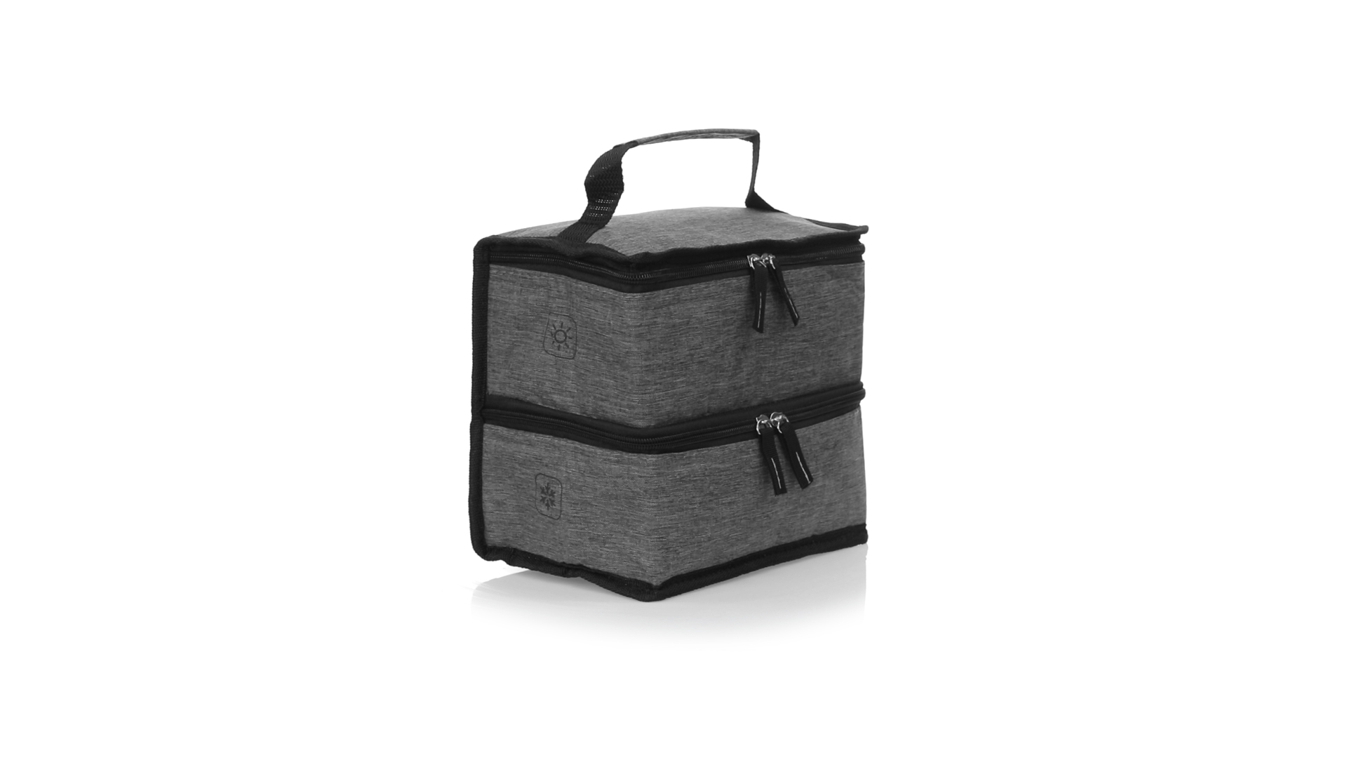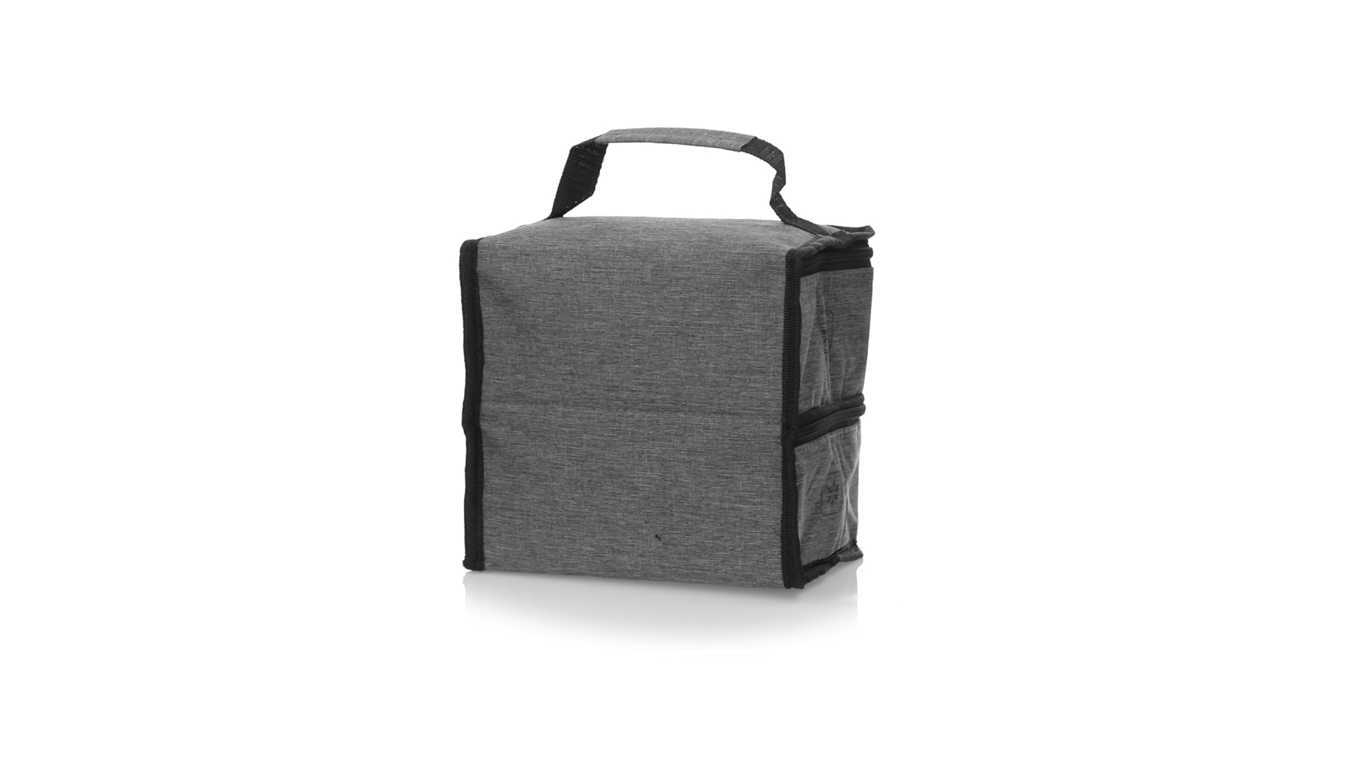 Linie "Natur" Praktische, Kühltasche mit zwei Fächern. Hergestellt aus hochwertigem 600D RPET-Polyester, das aus recyceltem Kunststoff hergestellt wird, um die Wiederverwendung von Kunststoffabfällen zu fördern und zur Nachhaltigkeit unseres Planeten beizutragen. Verstärkter Tragegriff, 2 Fächer mit Reissverschluss und doppeltem Stoffabzieher, mit RPET-Emblem auf dem Aussenetikett: Oberes Fach zum Halten der Wärme, mit isothermischer Innenseite aus Aluminium. Unteres Fach für die Kälte, mit isothermischer Innenseite aus PEVA
