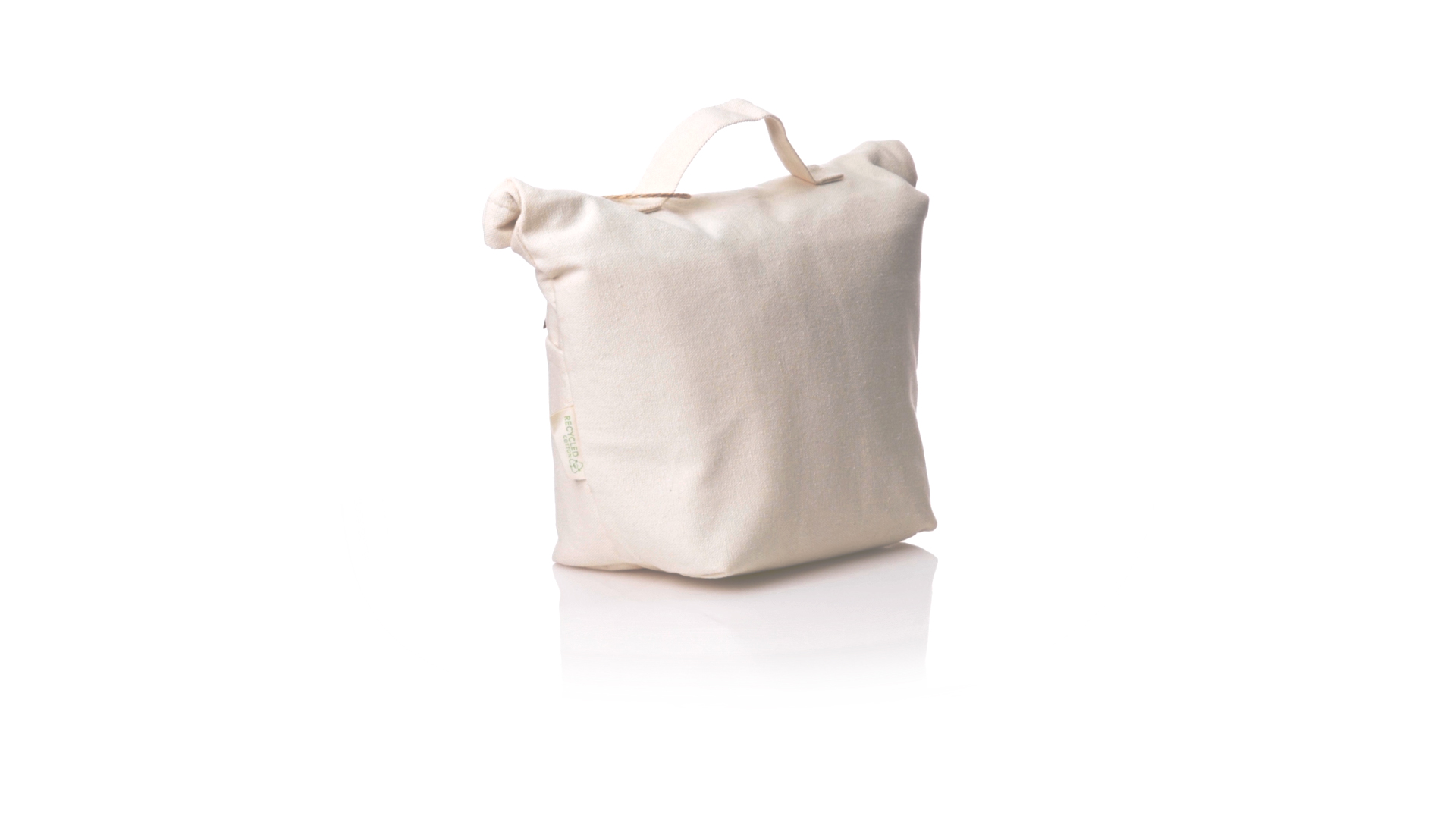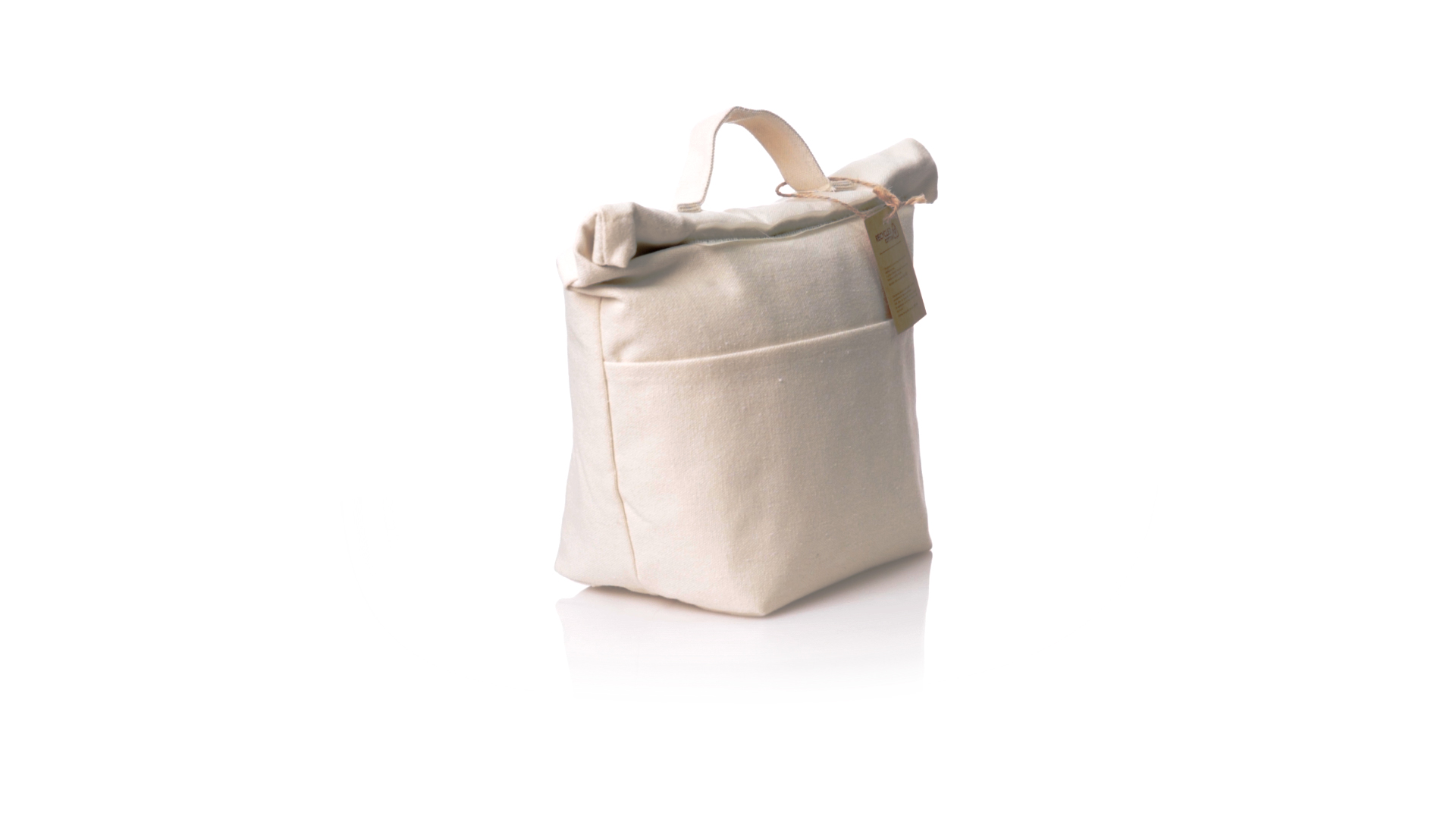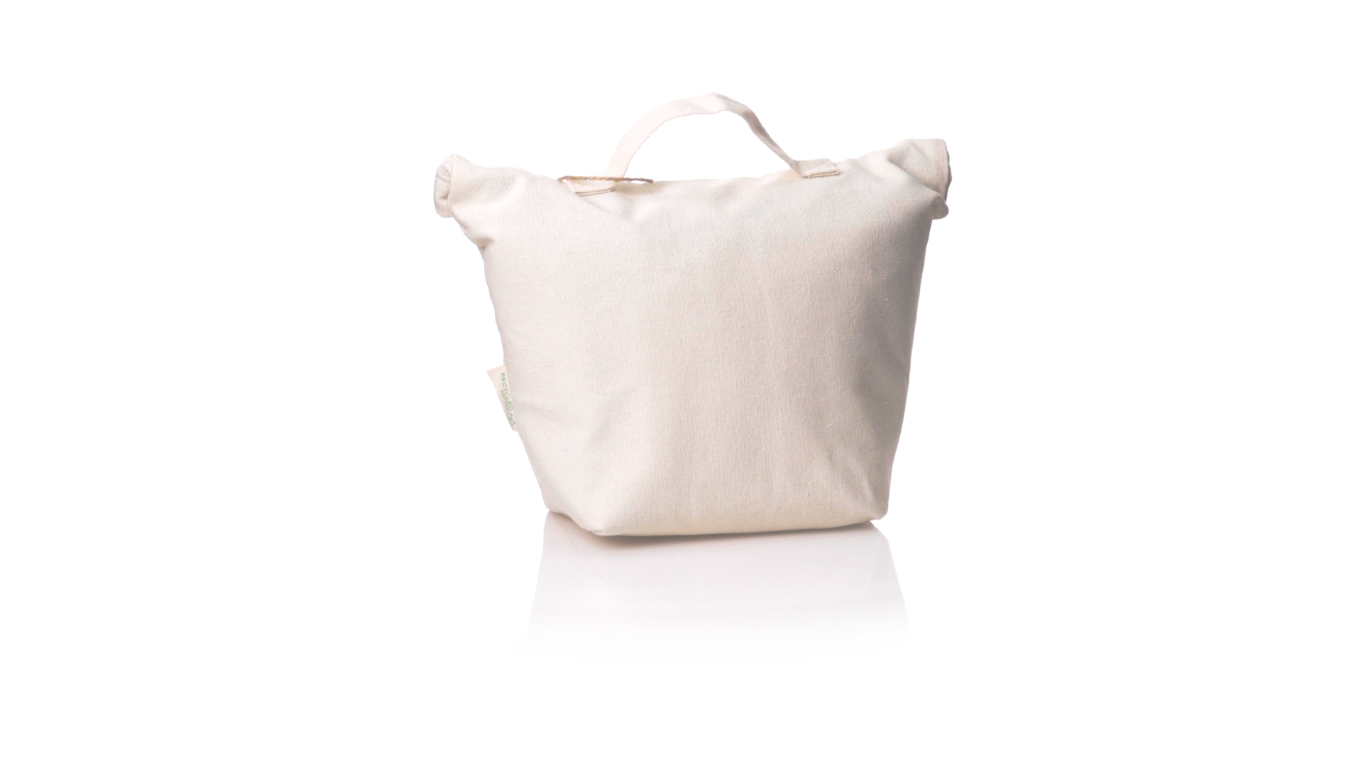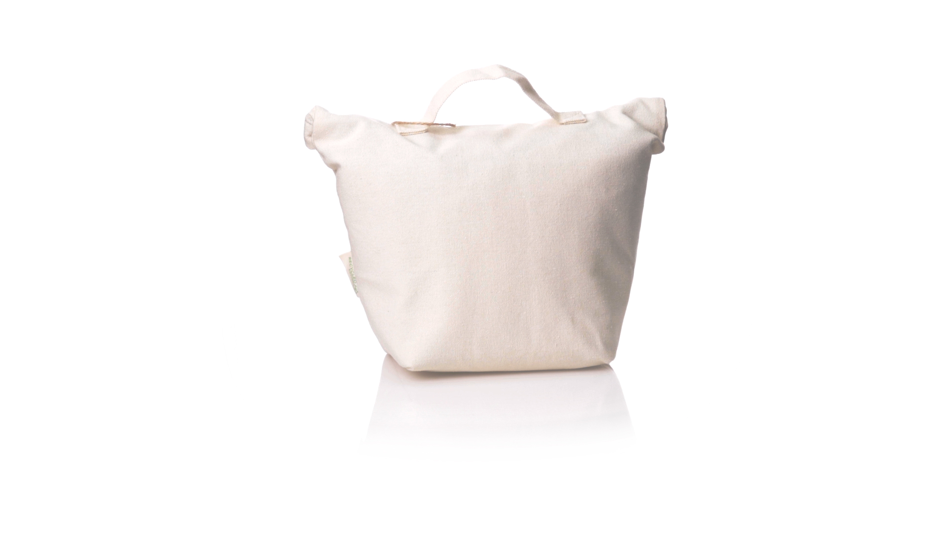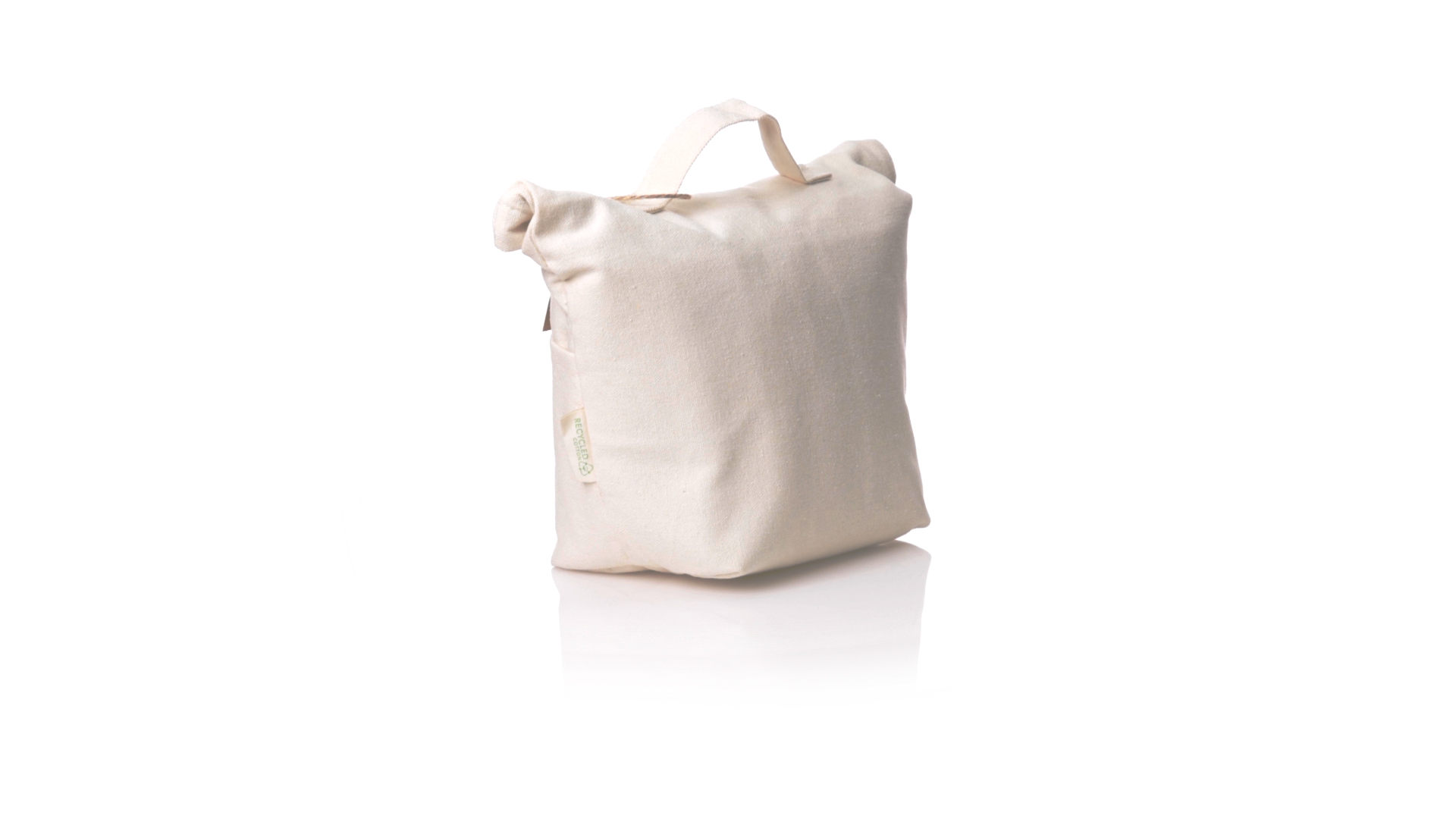 Thermobeutel aus 100 % recyceltem Baumwollmaterial, mit isothermischer Innenseite mit PEVA-Beschichtung zur Aufrechterhaltung der Temperatur. Sie wird mit einem praktischen Klettverschluss verschlossen und verfügt über eine Aussentasche. Mit Griff zum einfachen Tragen. Mit Recycling-Baumwoll-Etikett und präsentiert in einer individuellen Recycling-Tasche.