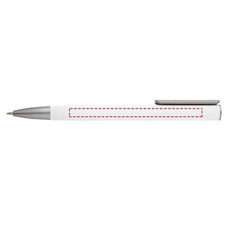 Kugelschreiber mit Schaft aus recyceltem Aluminium und silberfarbenem Clip aus ABS Kunststoff. Tintenfarbe: Blau. Schreiblänge: 800 Meter. Schreibspitze: 1 mm.