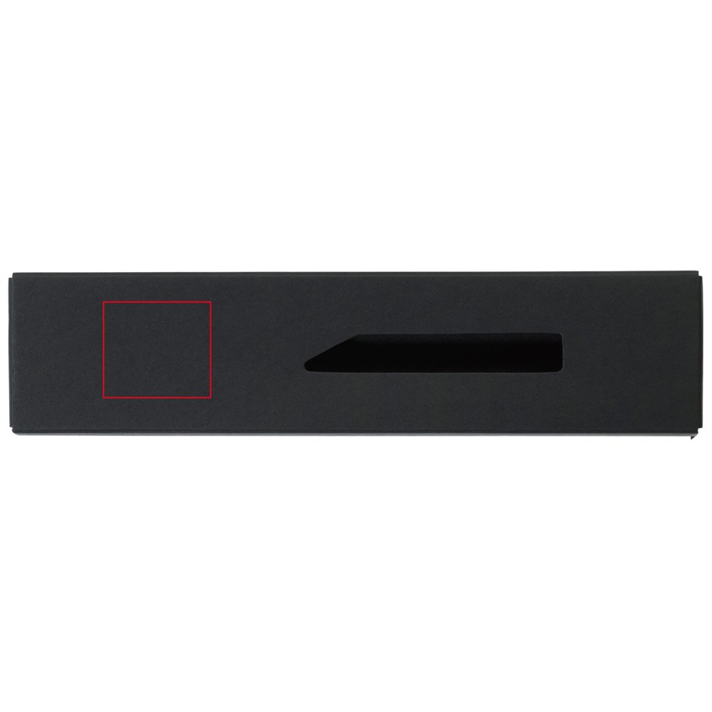 Schlichte schwarze Karton-Geschenkverpackung mit Fenster für 1 Kugelschreiber. Werbeanbringung auf dem Deckel möglich.