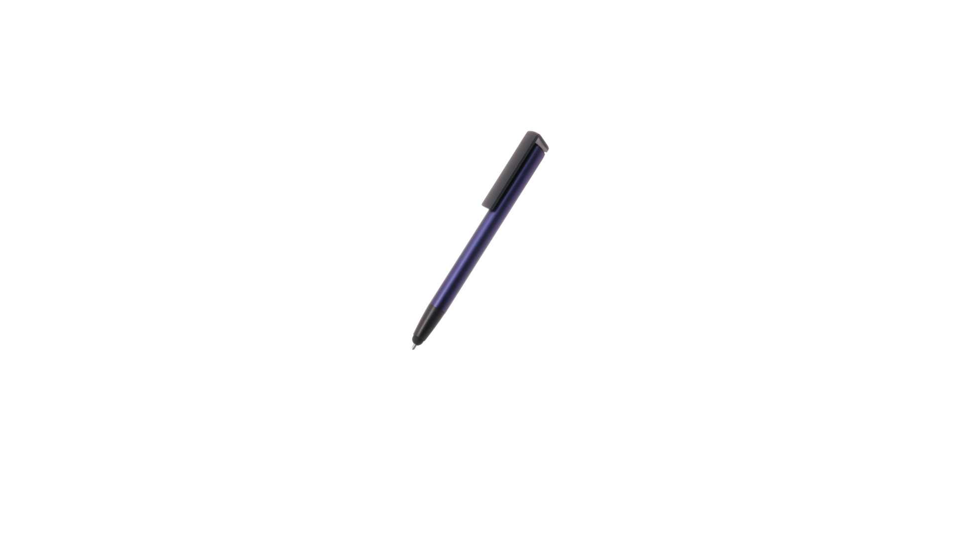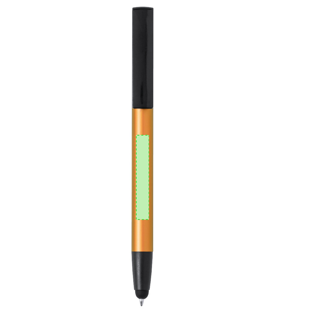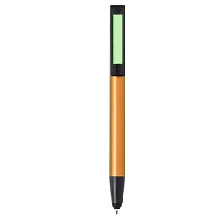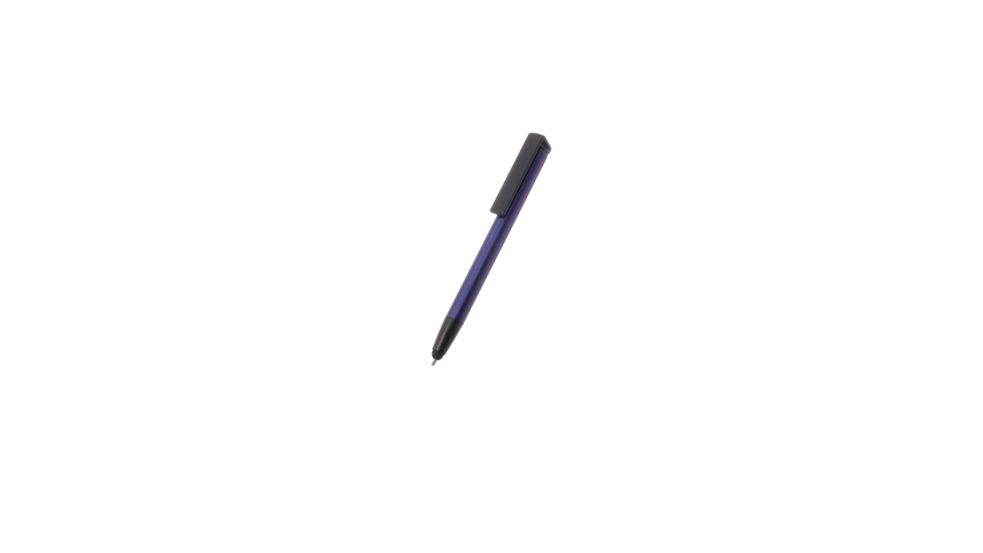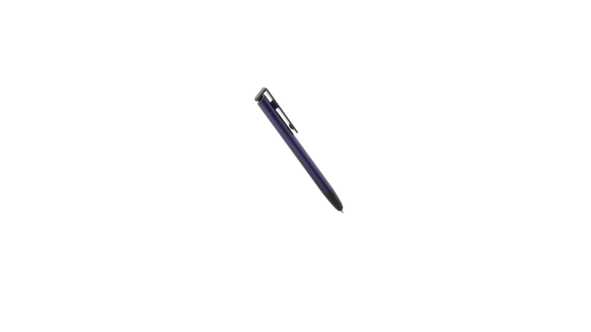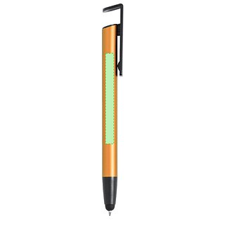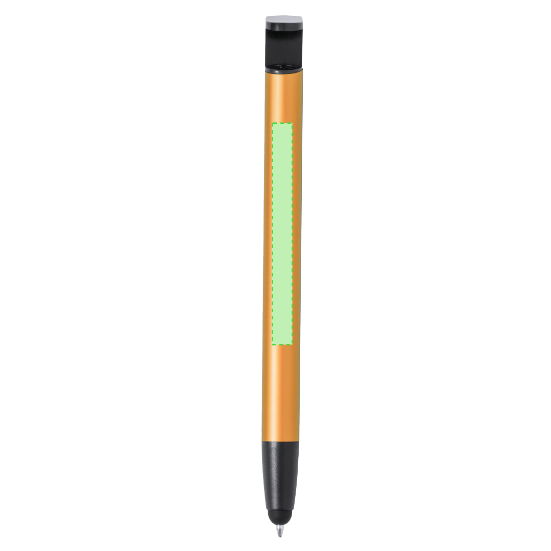 Kugelschreiber mit Druckknopfmechanik, hergestellt aus langlebigem Aluminium. Mit integriertem Handyhalter im Clip und glattem Schaft in verschiedenen Metallfarben. Mit blauer Tinte und einzeln verpackt in einer recycelten Tasche.