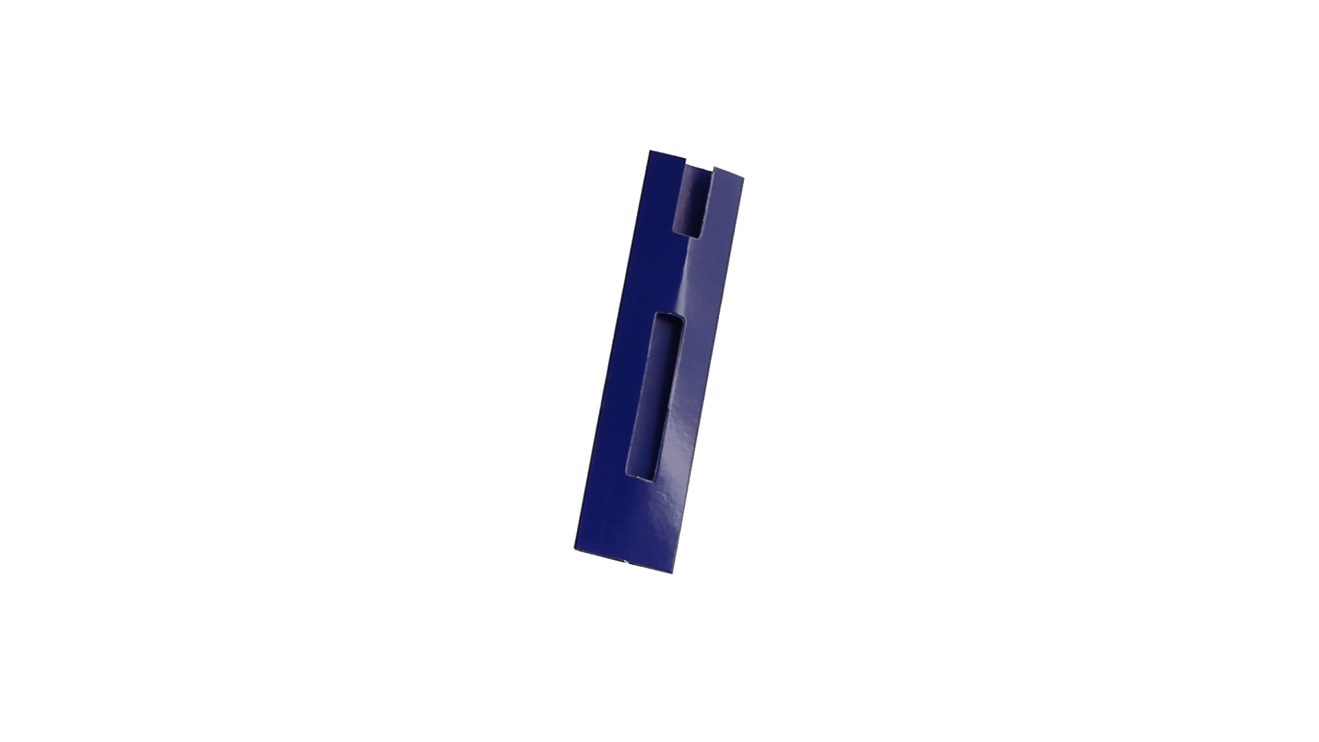 Hülle für Kugelschreiber aus robustem Karton mit Fenster in kräftigen Farben.